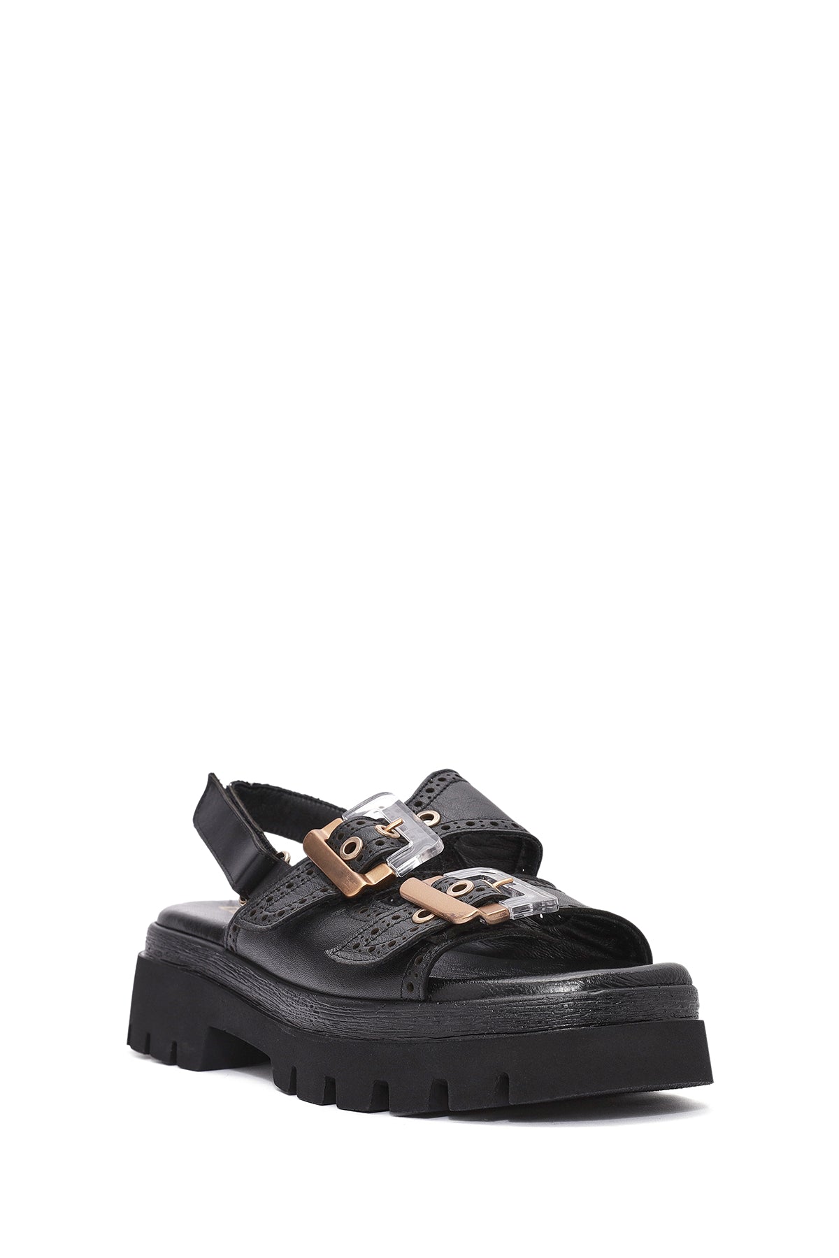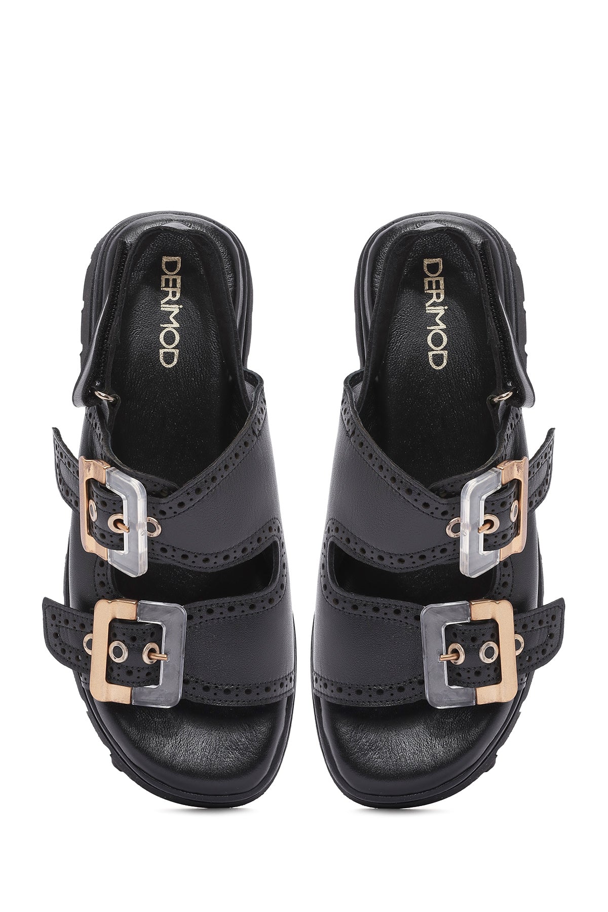 Derimod’un Zarifliği ve Şıklığı bir arada sunan Kadın Siyah Tokalı Bantlı Kalın Tabanlı Deri Sandalet ile tarzınızı konuşturun. Ürünün kodu: 25SFD202318 11