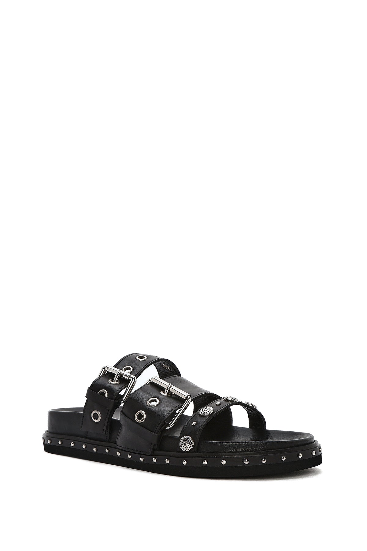 Derimod’un Zarifliği ve Şıklığı bir arada sunan Kadın Siyah Tokalı Bantlı Süet Deri Terlik ile tarzınızı konuşturun. Ürünün kodu: 25SFD270010 11