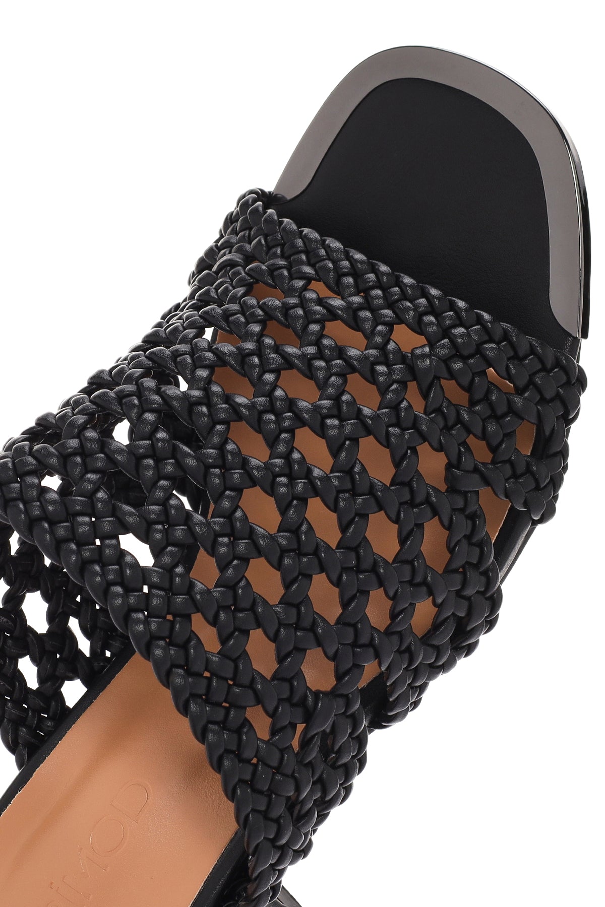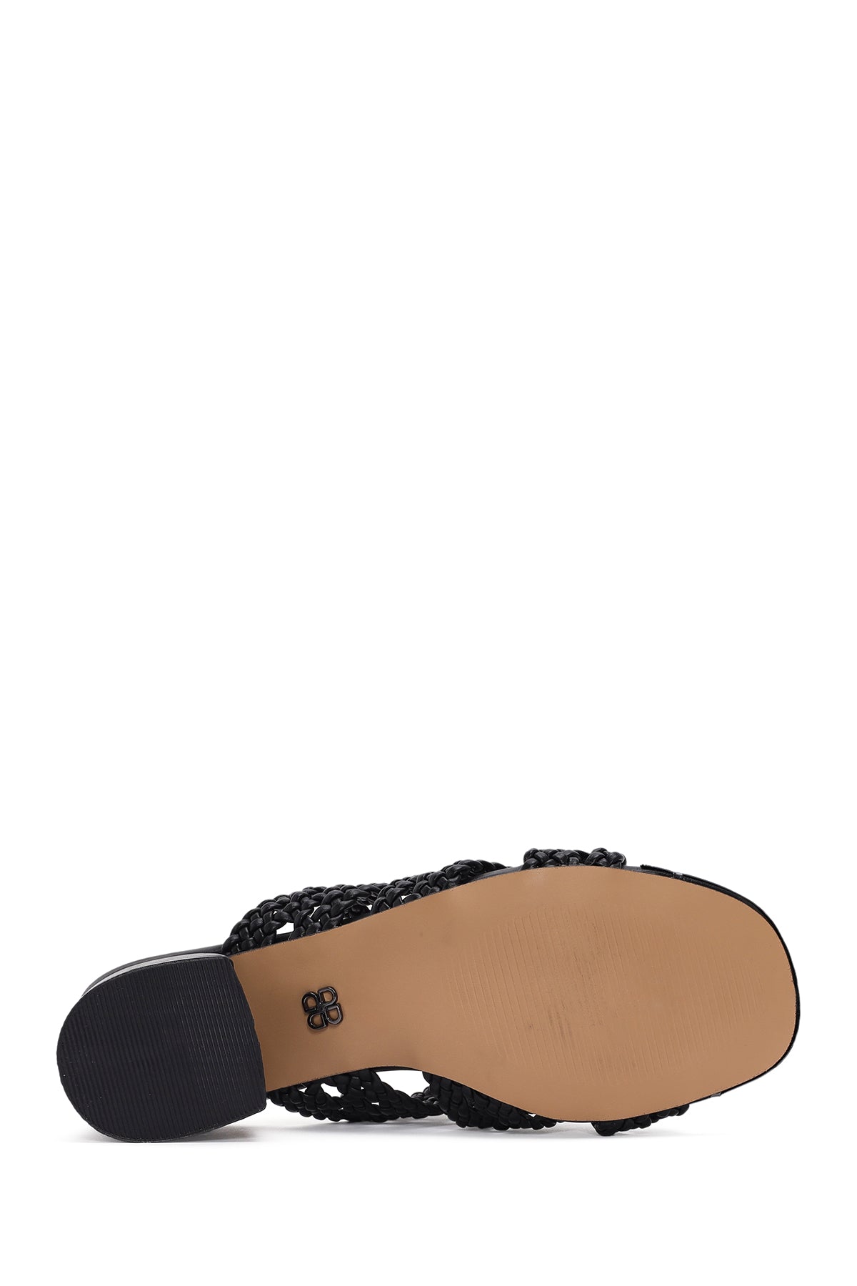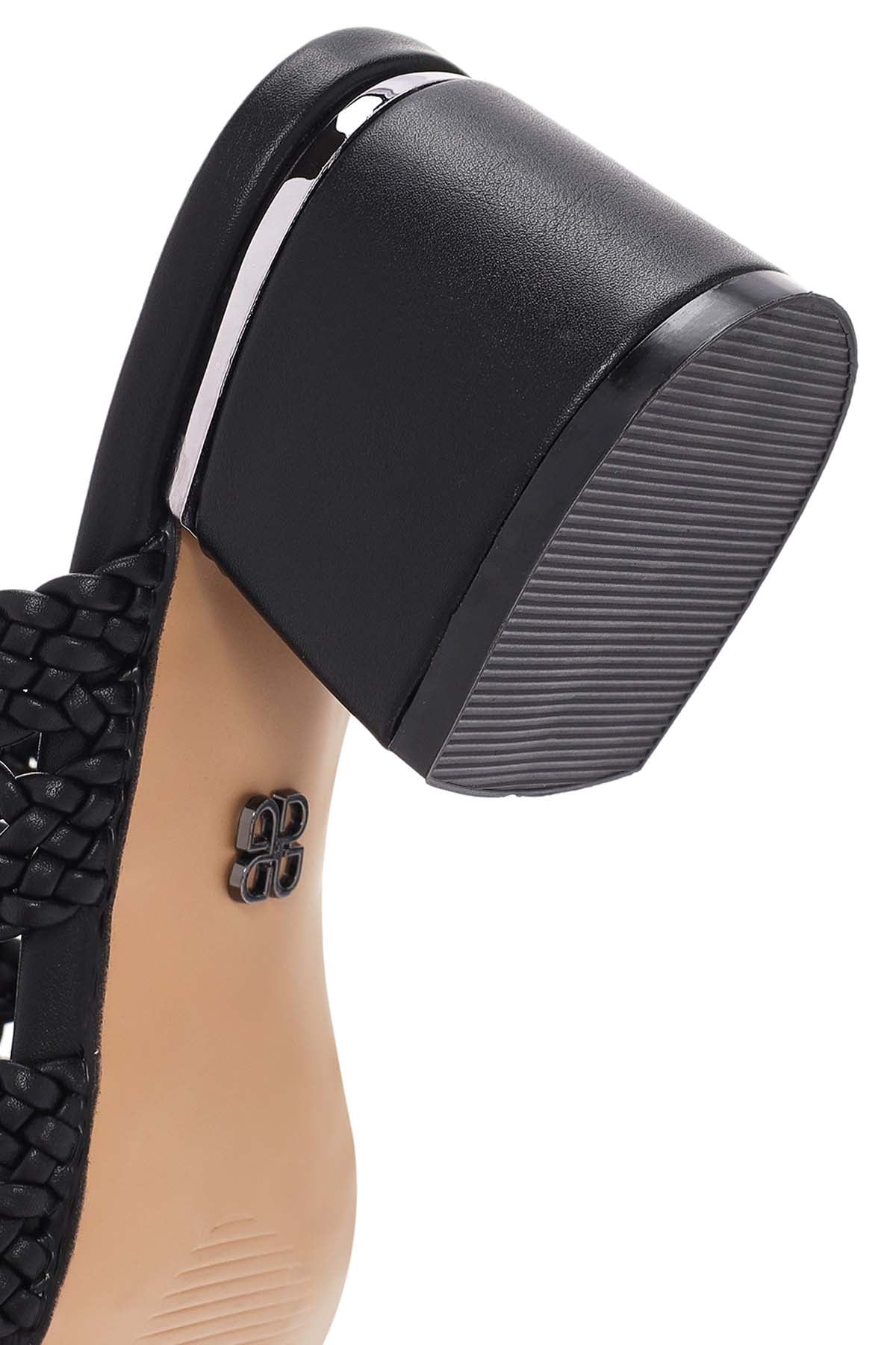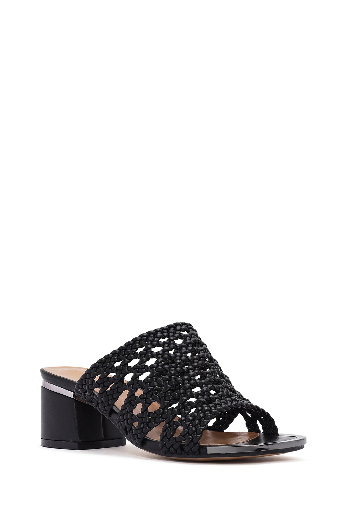 Kadın Siyah Topuklu Örgü Desenli Terlik