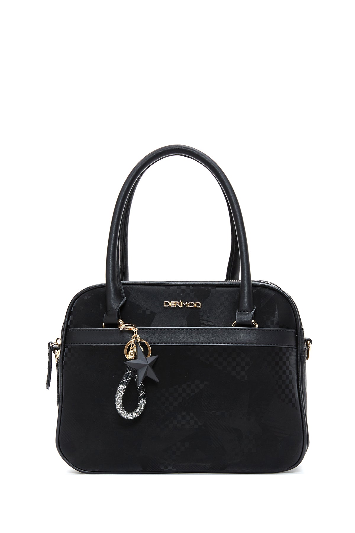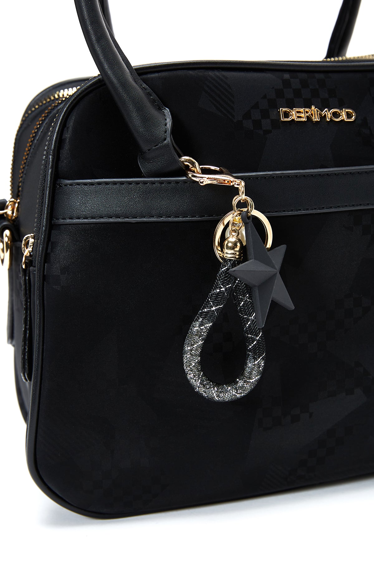 Kadın Siyah Uzun Askılı Aksesuar Detaylı Baskılı Kol Çantası