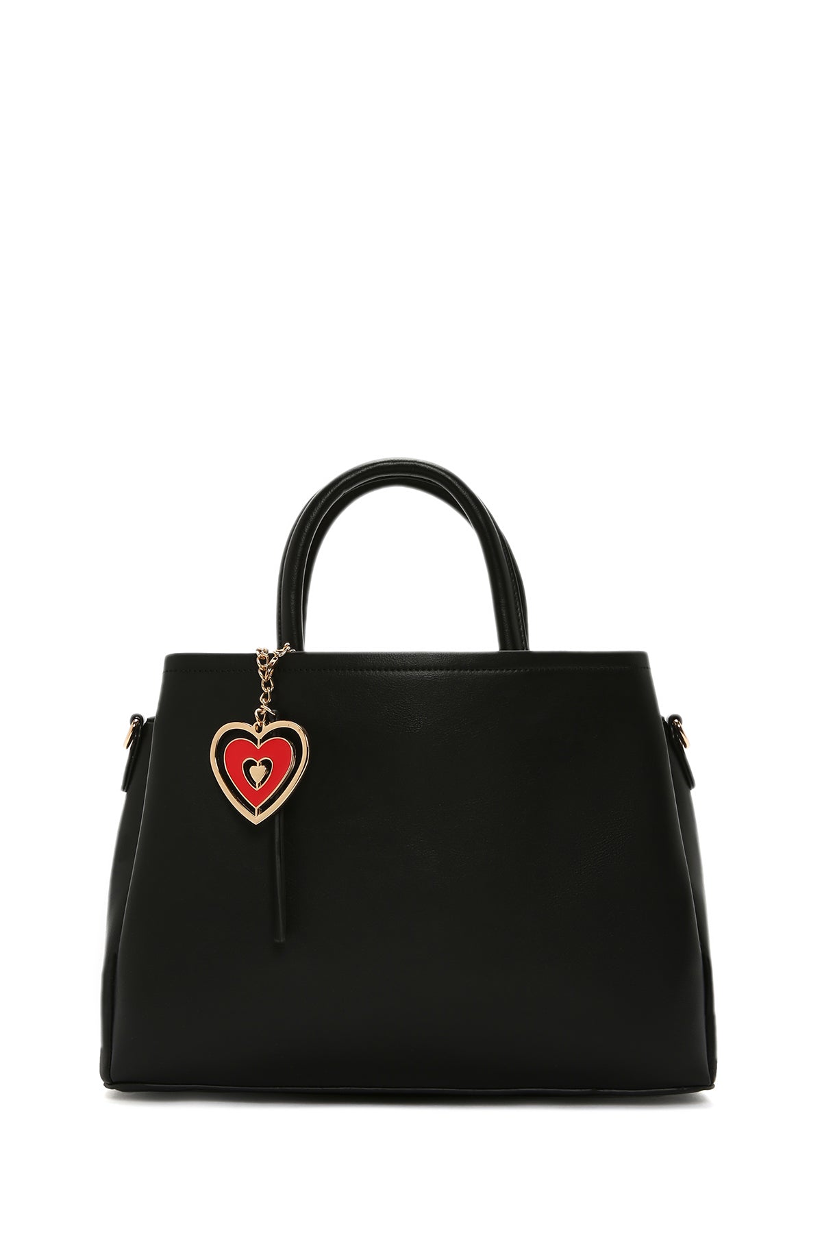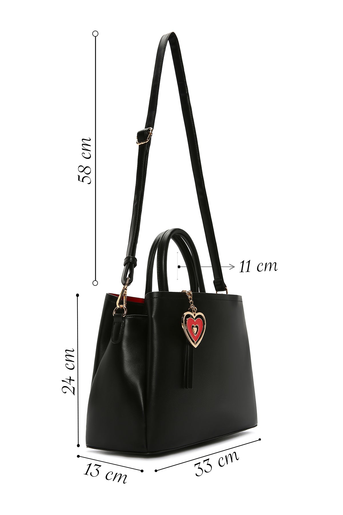 Kadın Siyah Uzun Askılı Aksesuar Detaylı Çapraz Çanta
