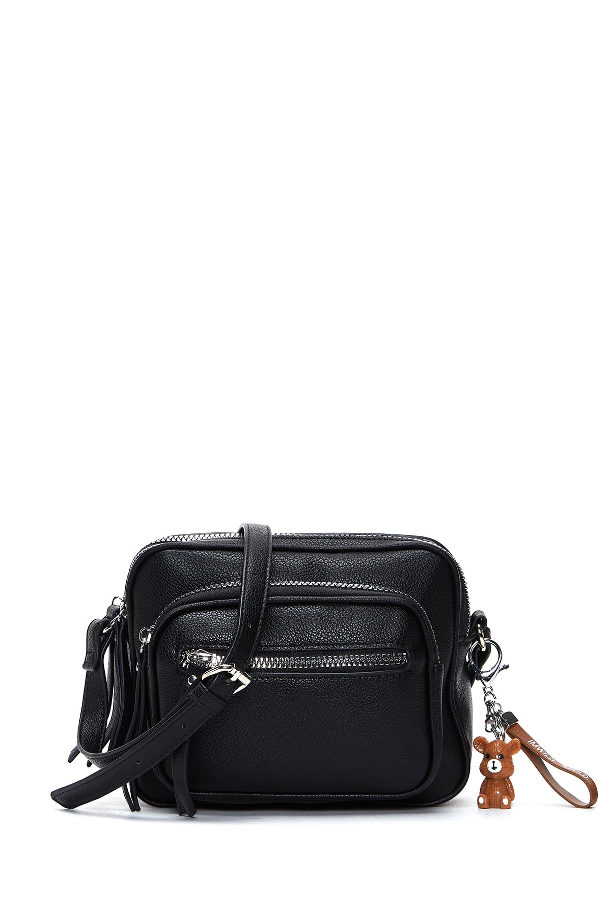 Kadın Siyah Uzun Askılı Aksesuar Detaylı Çapraz Çanta