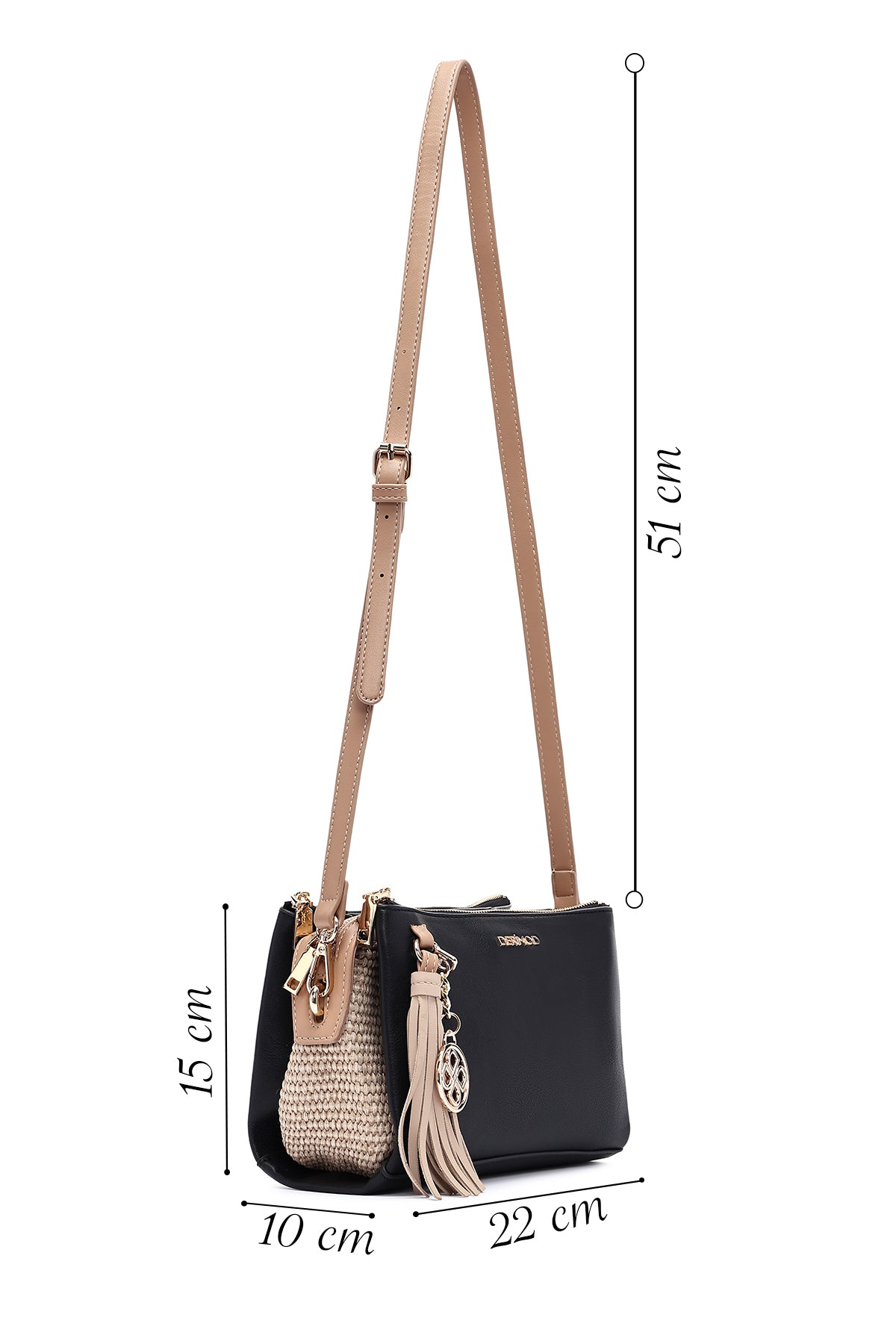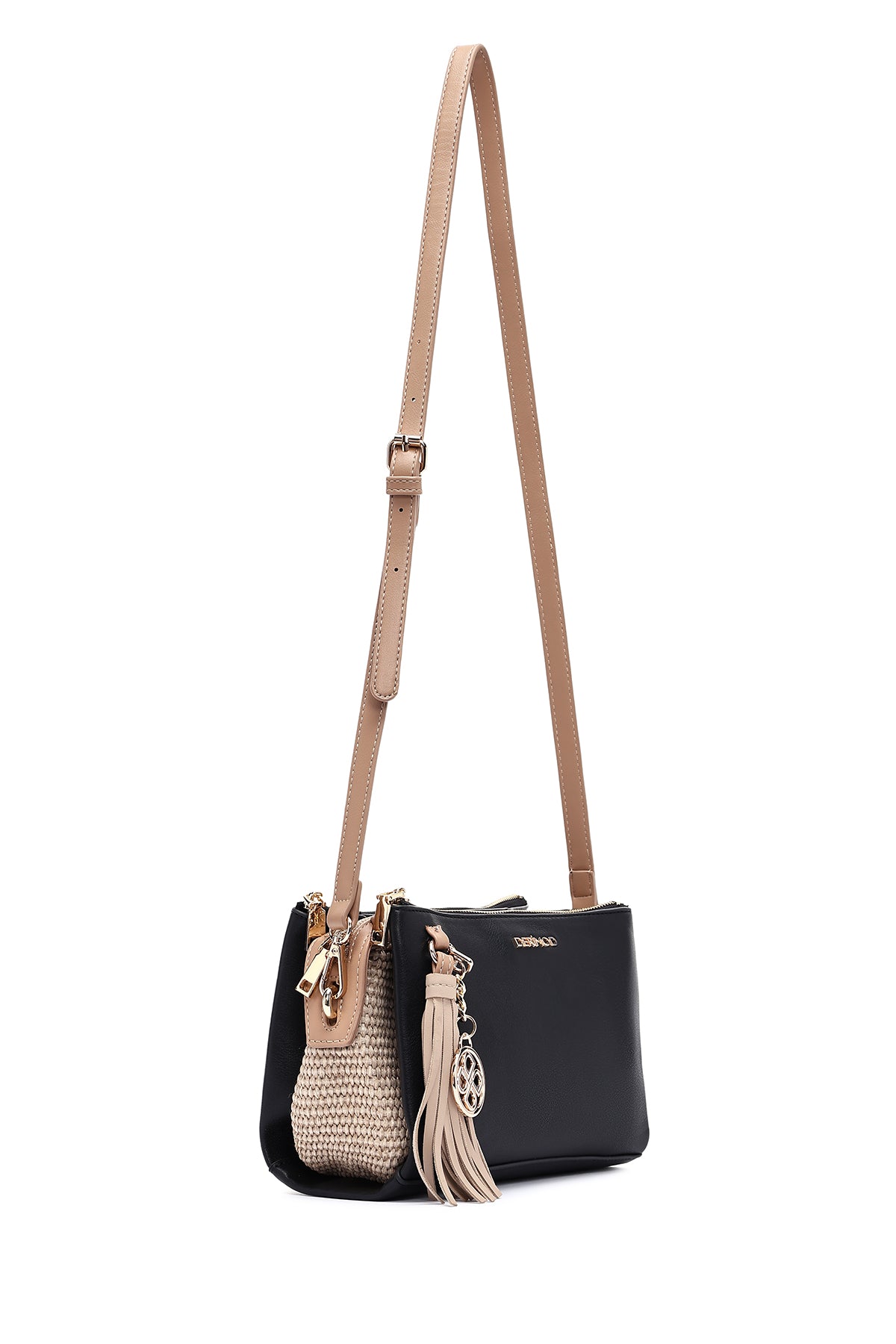 Kadın Siyah Uzun Askılı Aksesuar Detaylı Çapraz Çanta
