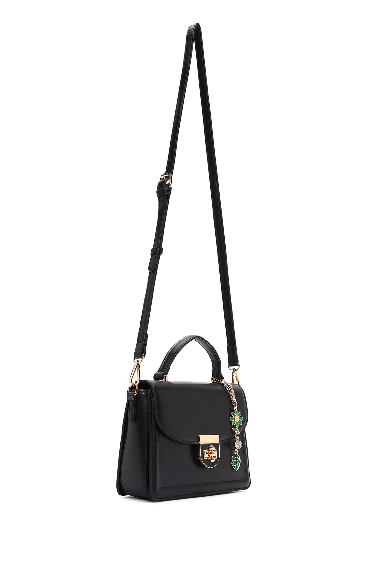 Kadın Siyah Uzun Askılı Aksesuar Detaylı Çapraz Çanta