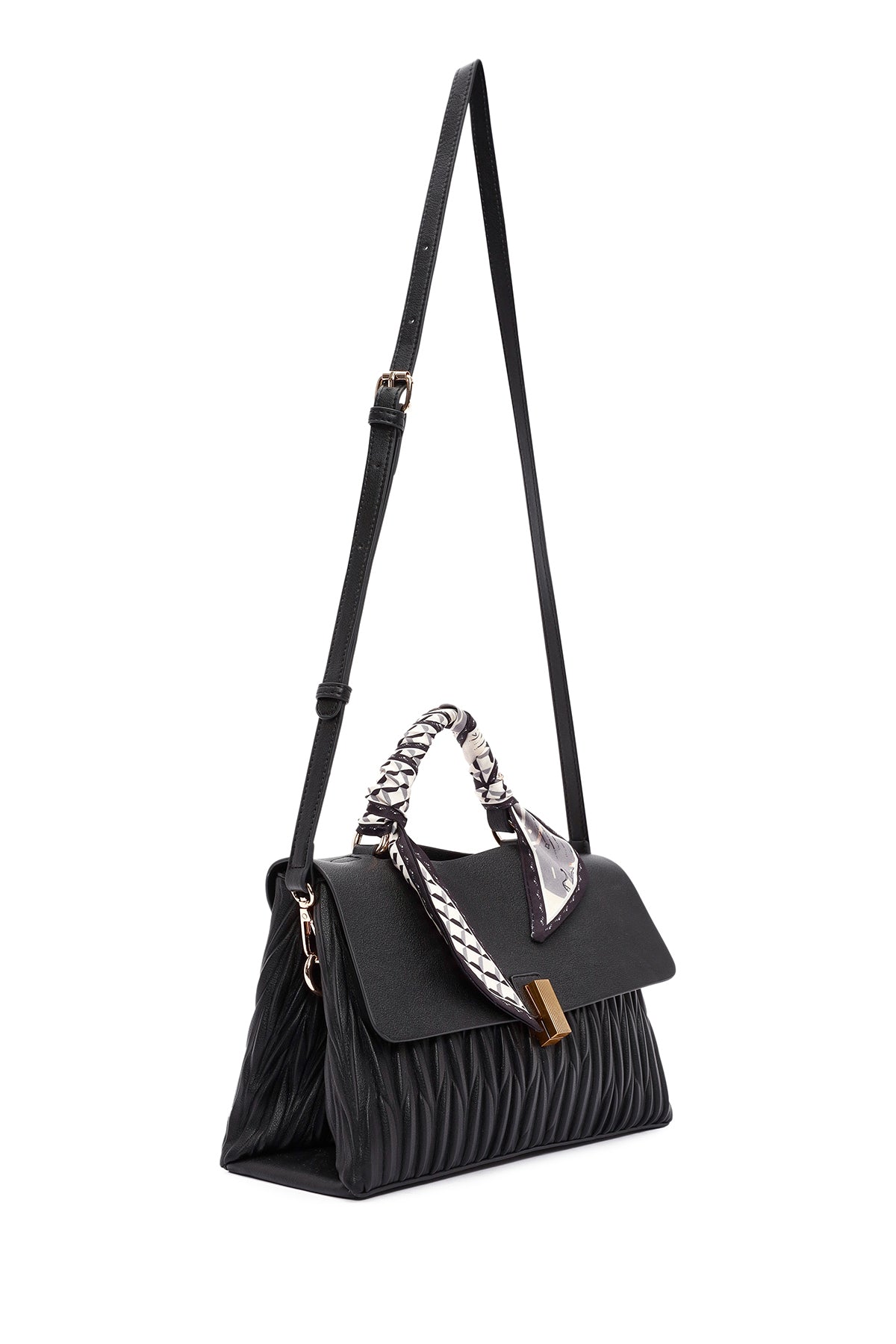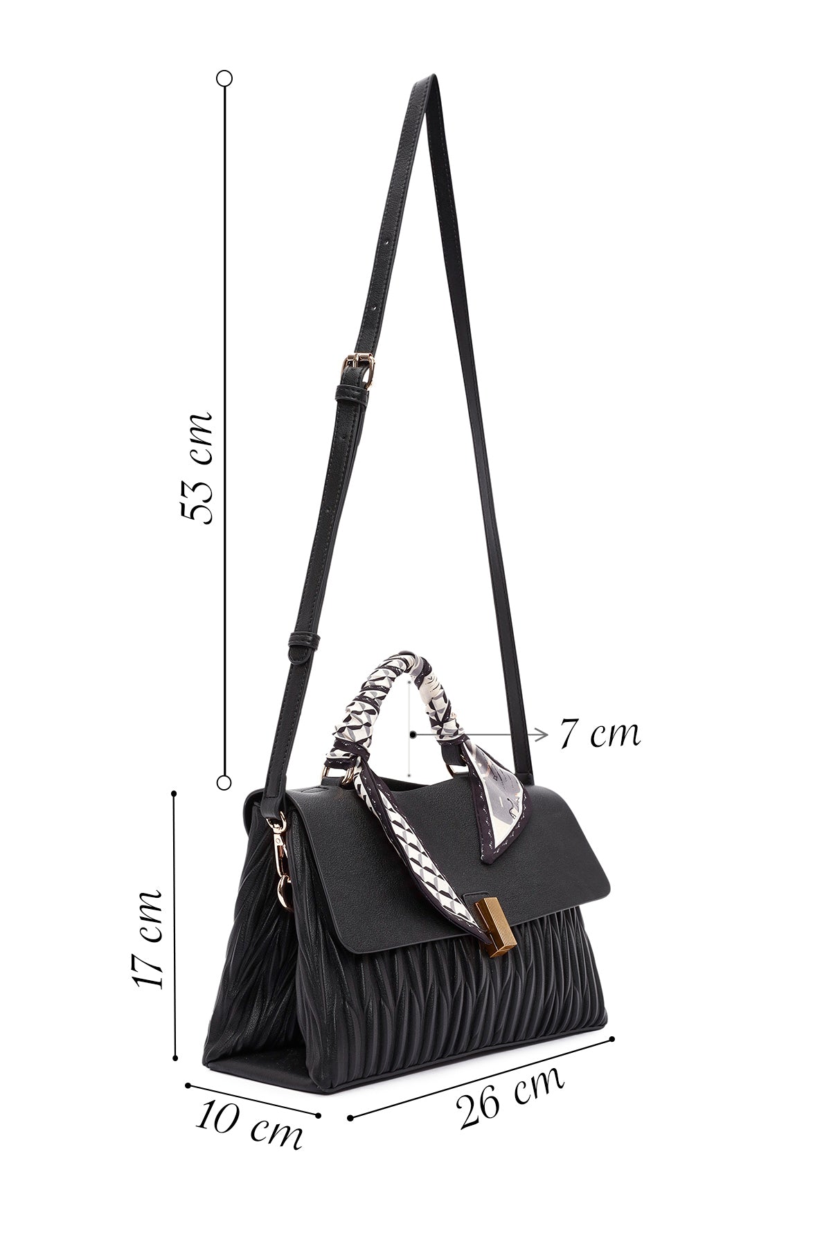 Kadın Siyah Uzun Askılı Aksesuar Detaylı Kol Çantası
