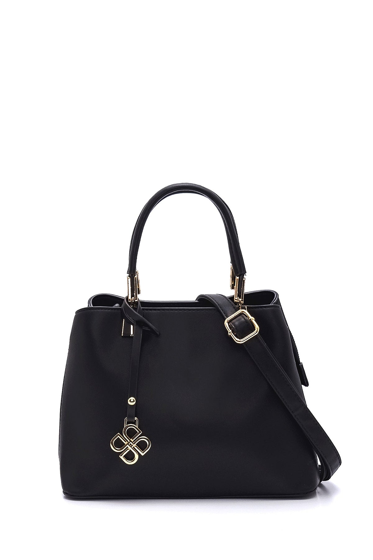Kadın Siyah Uzun Askılı Aksesuar Detaylı Kol Çantası