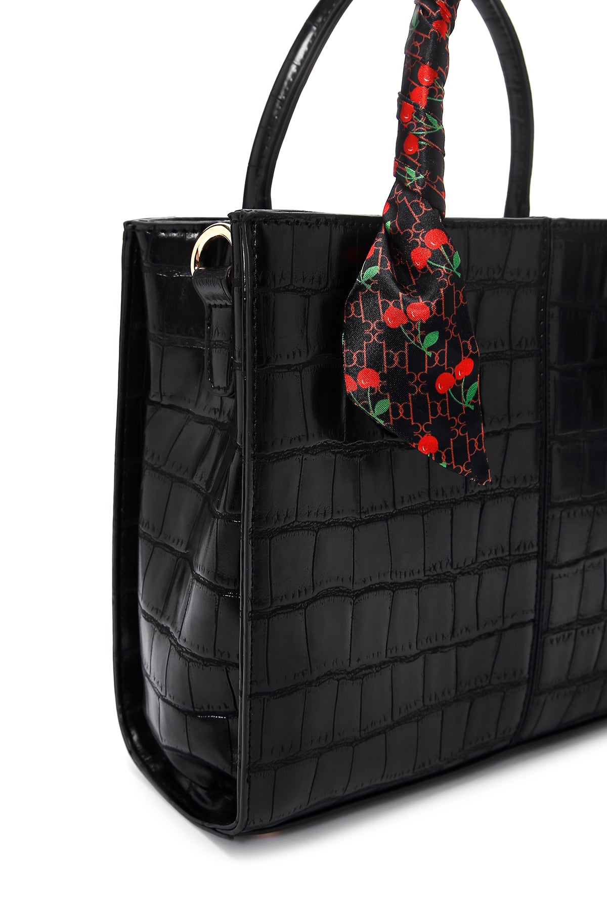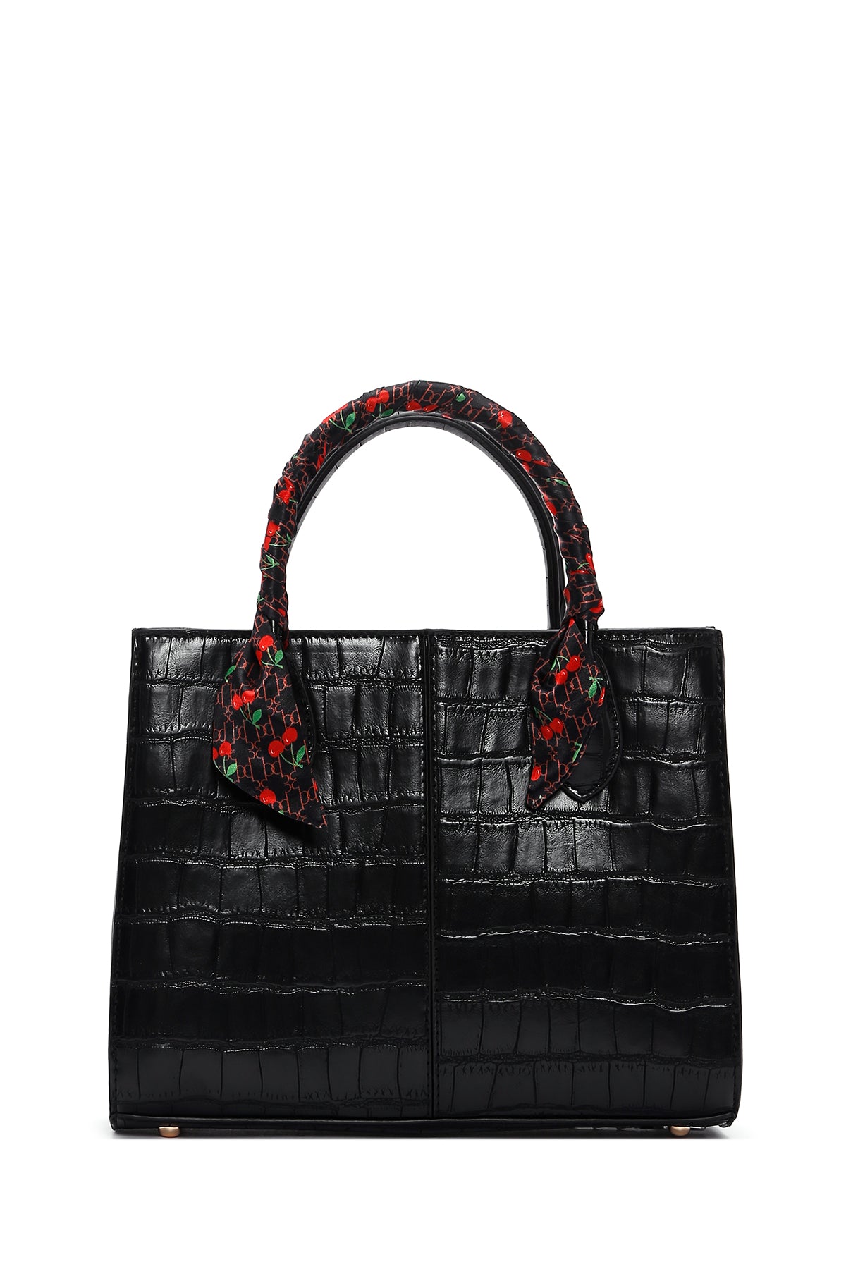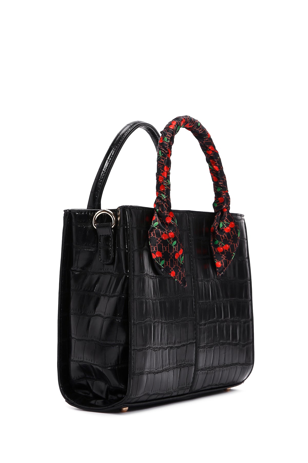 Kadın Siyah Uzun Askılı Aksesuar Detaylı Kroko Desenli Kol Çantası