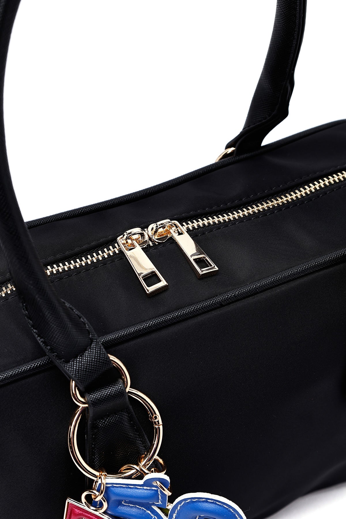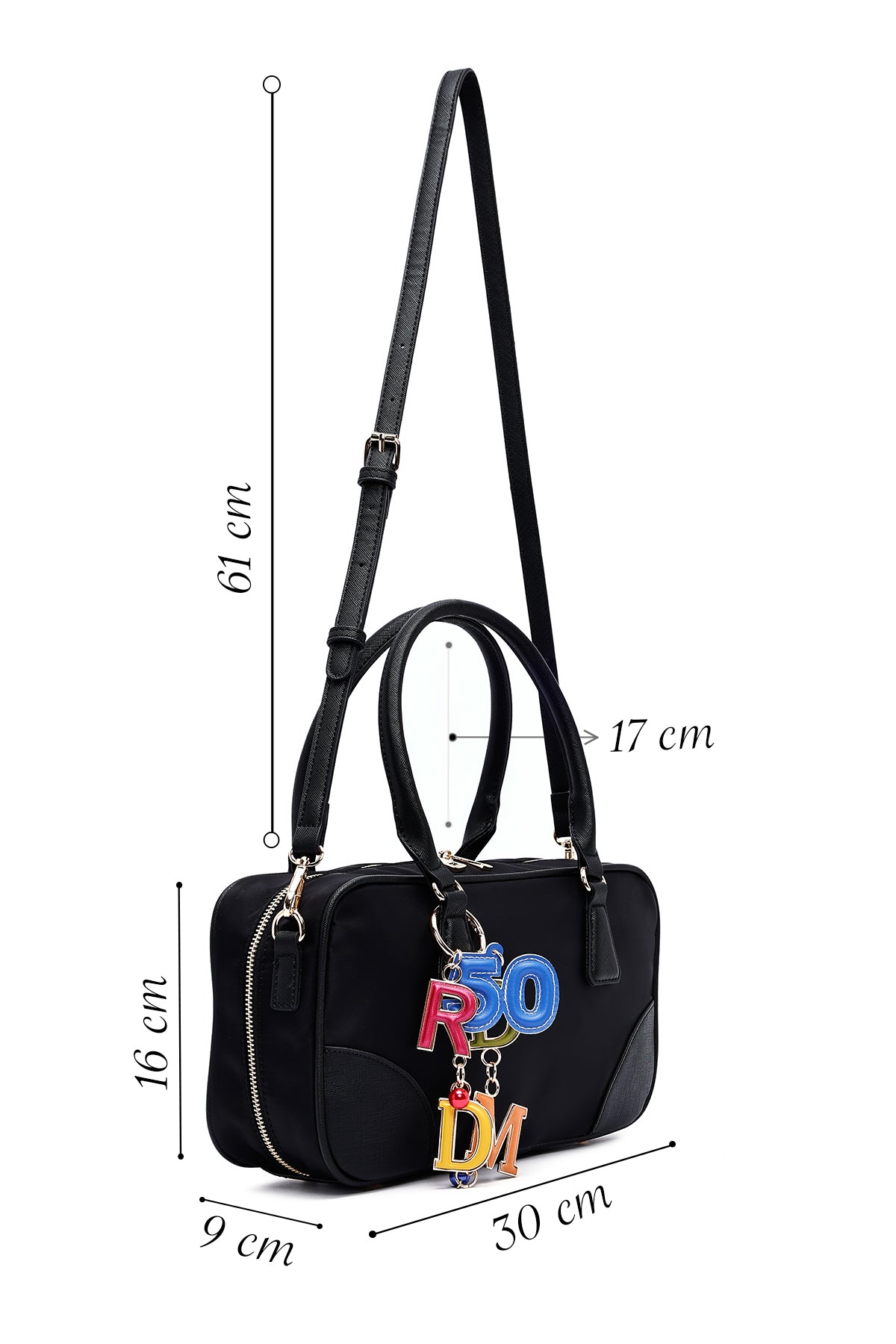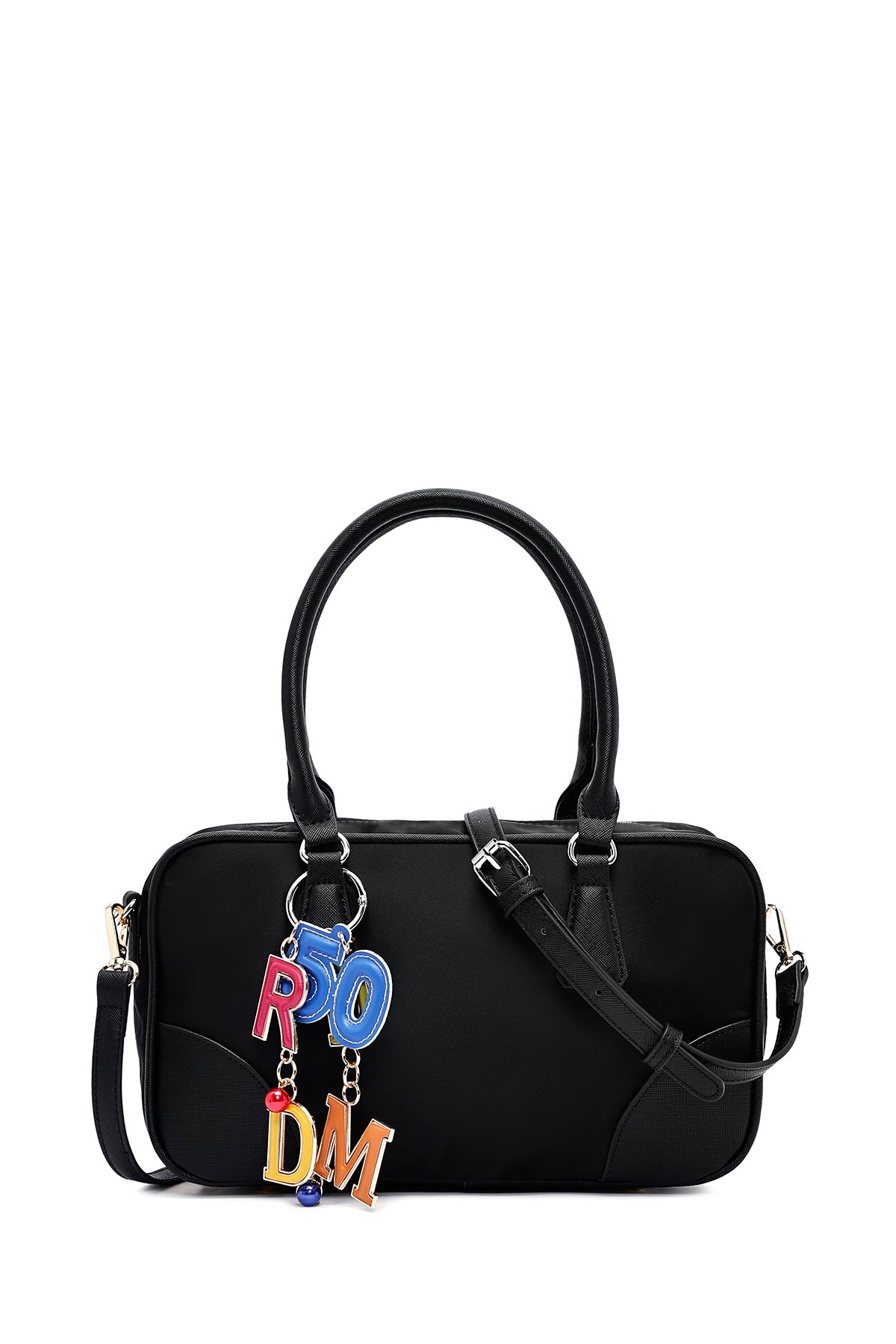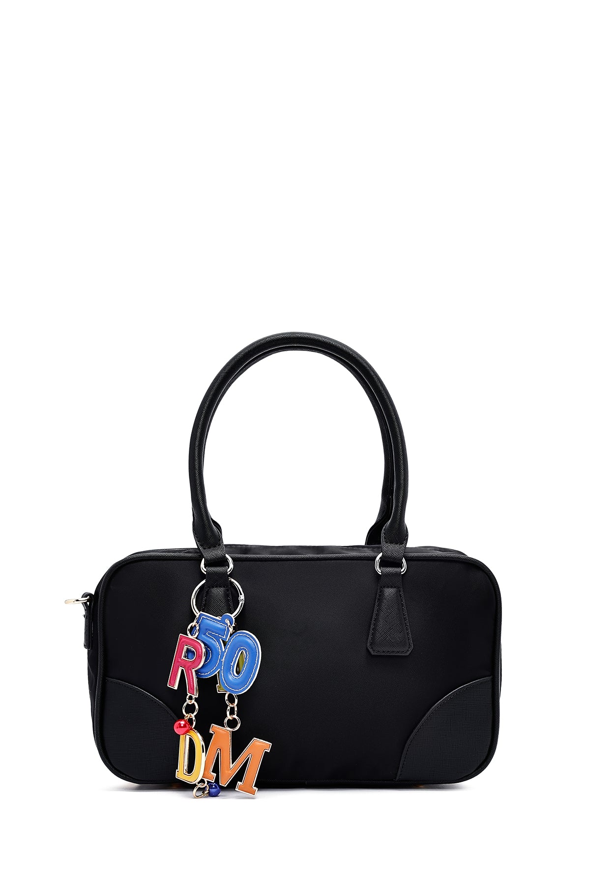 Kadın Siyah Uzun Askılı Aksesuar Detaylı Kumaş Kol Çantası