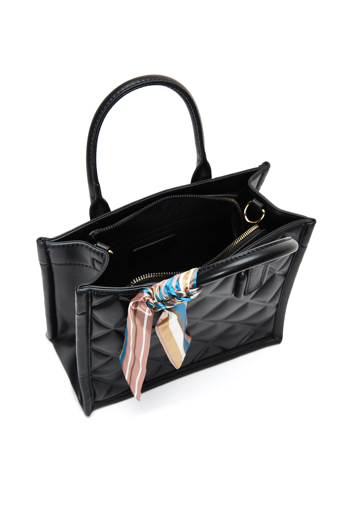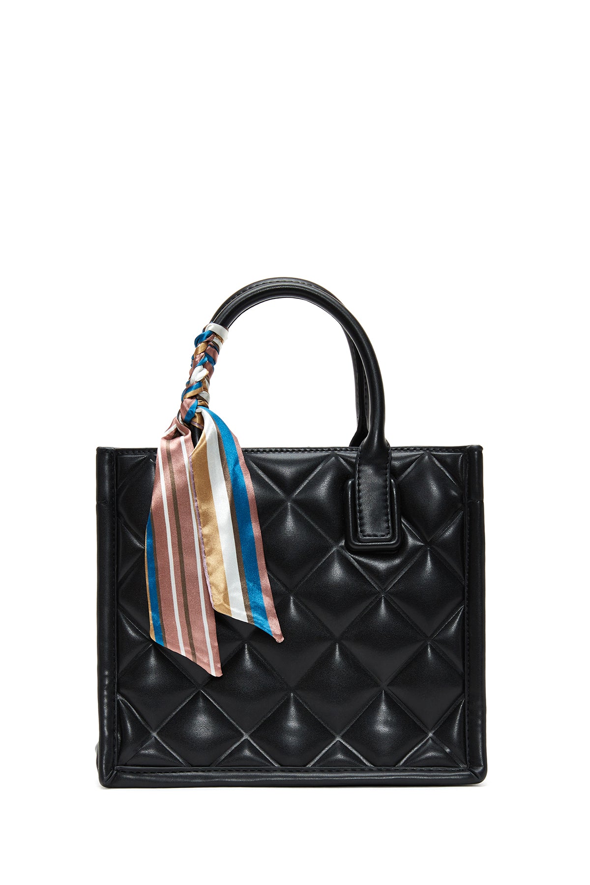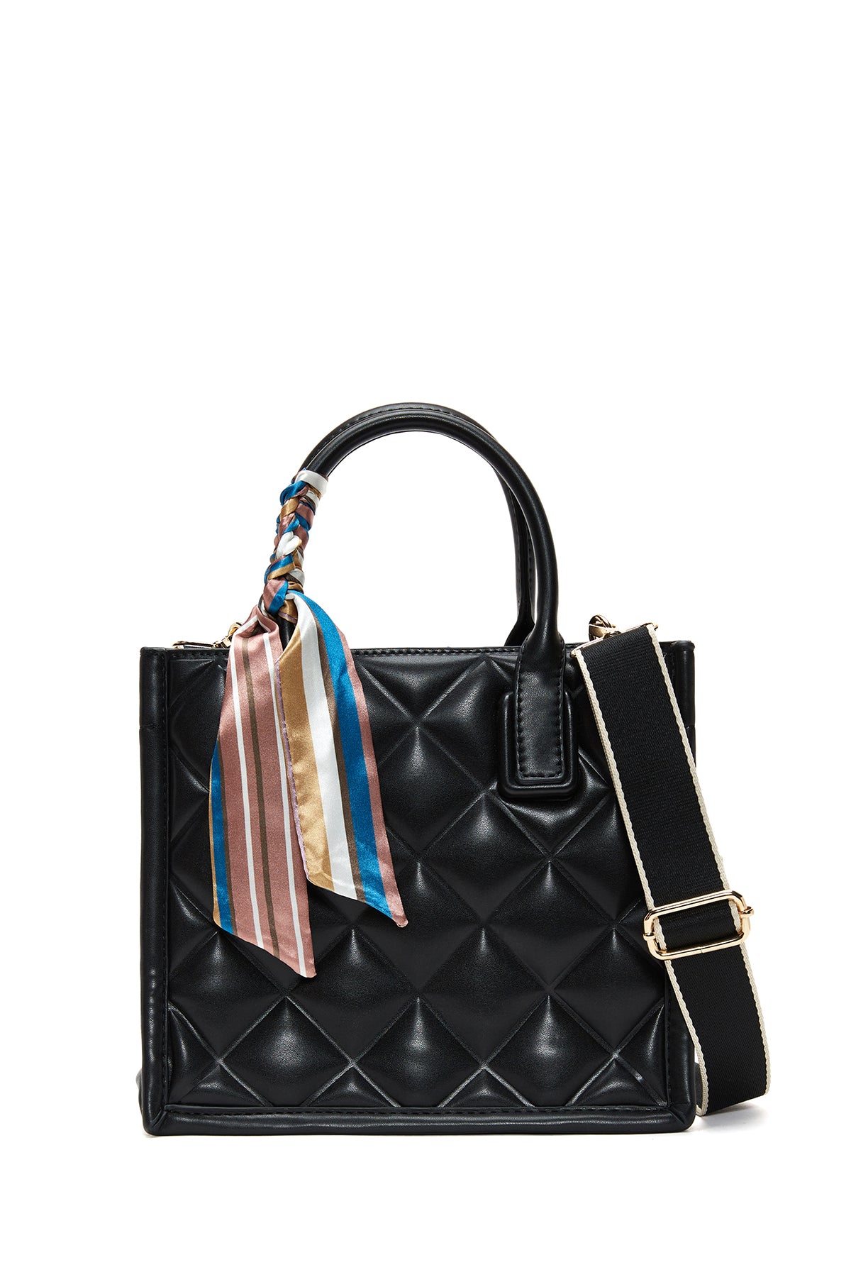 Kadın Siyah Uzun Askılı Aksesuarlı Kapitone Kol Çantası