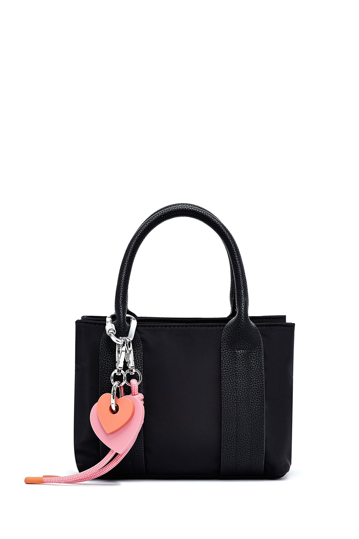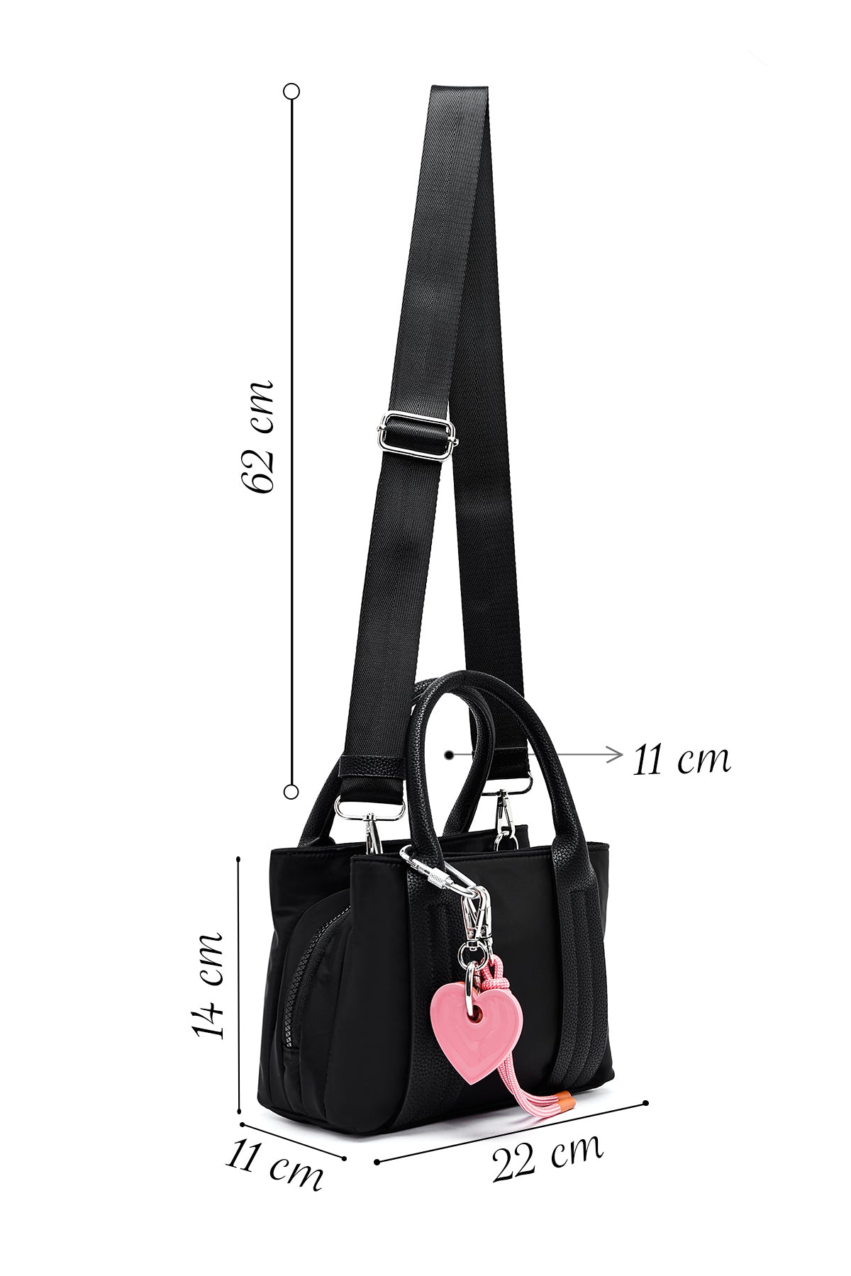 Kadın Siyah Uzun Askılı Aksesuarlı Kumaş Kol Çantası