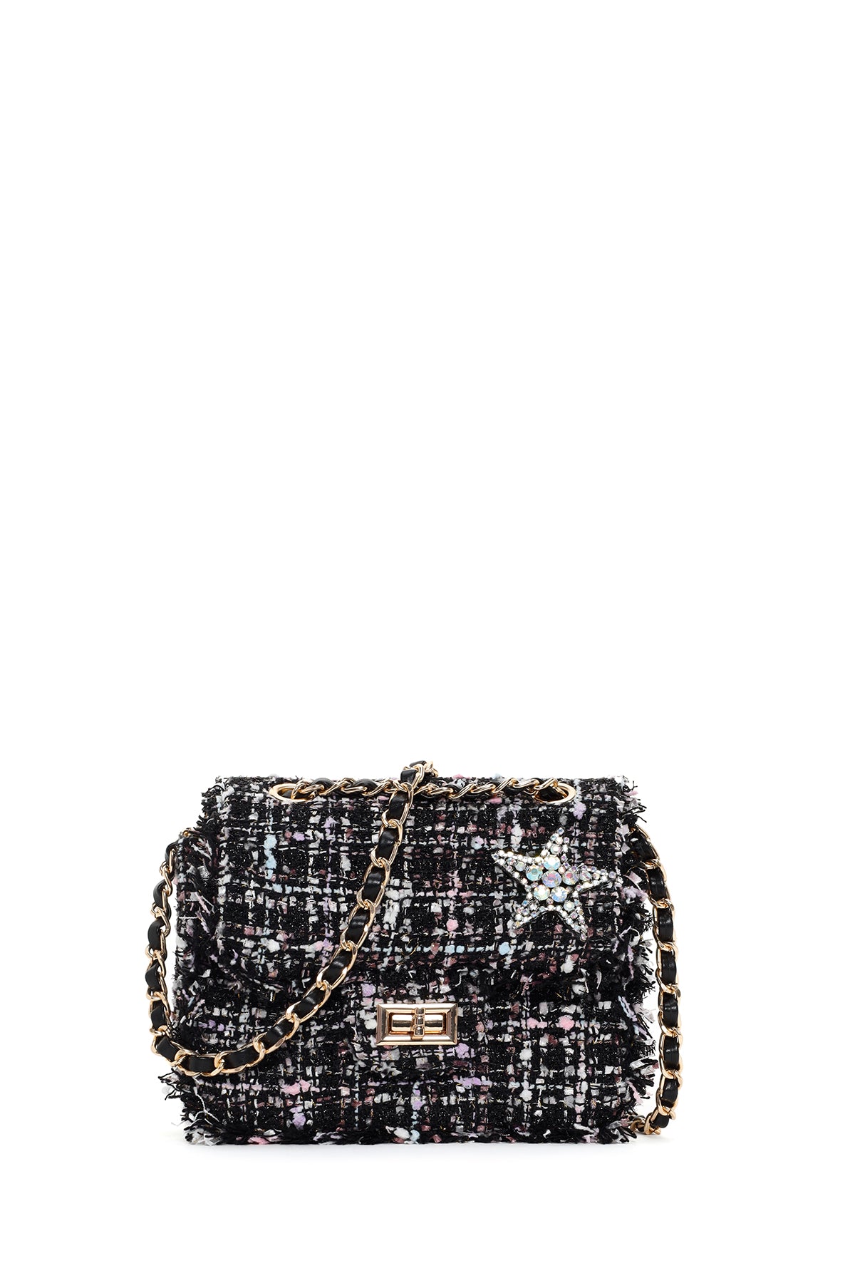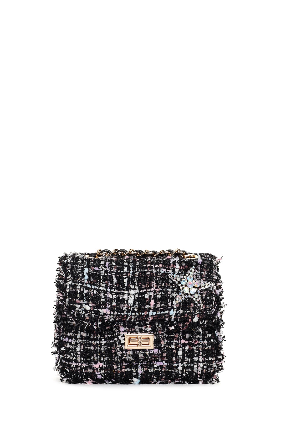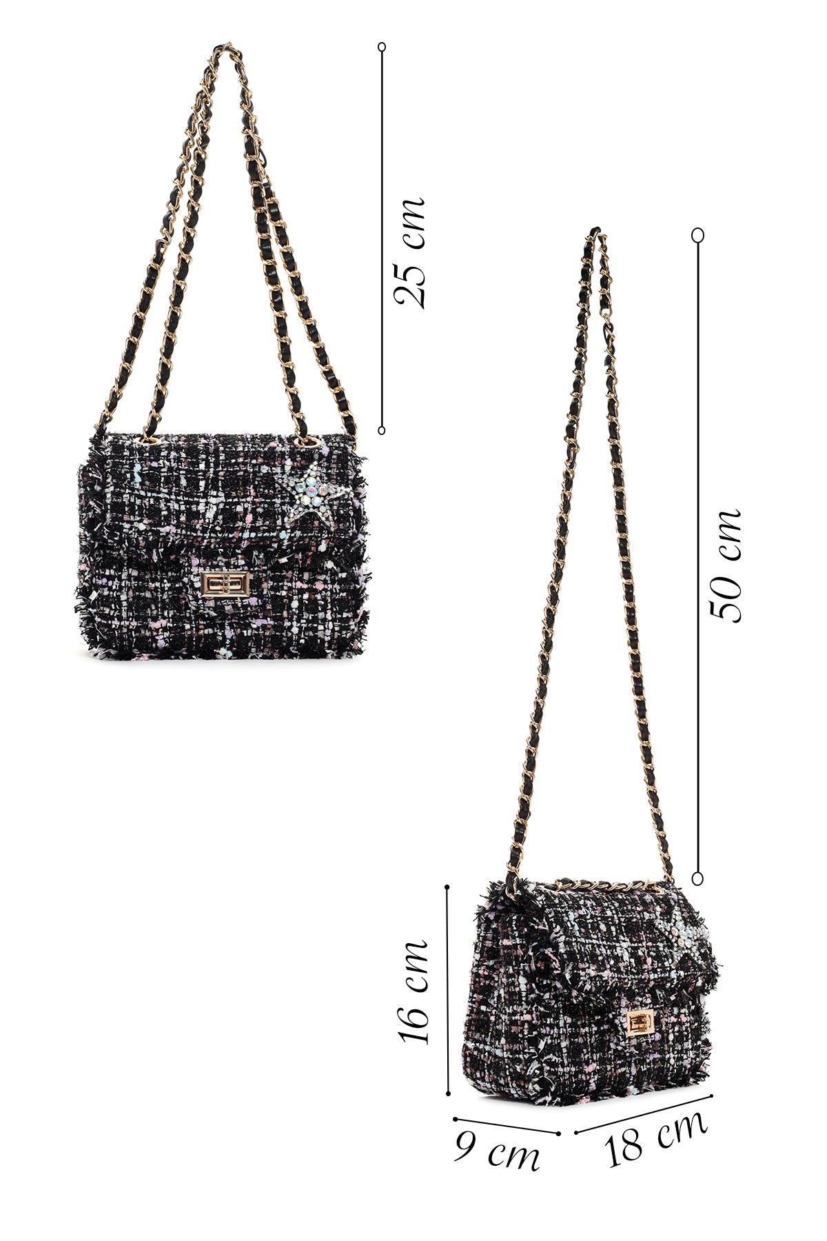Kadın Siyah Uzun Askılı Aksesuarlı Omuz Çantası