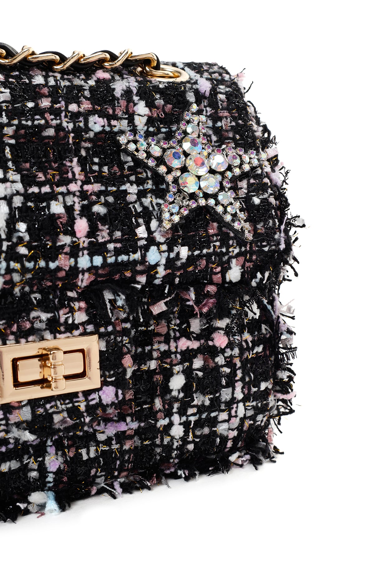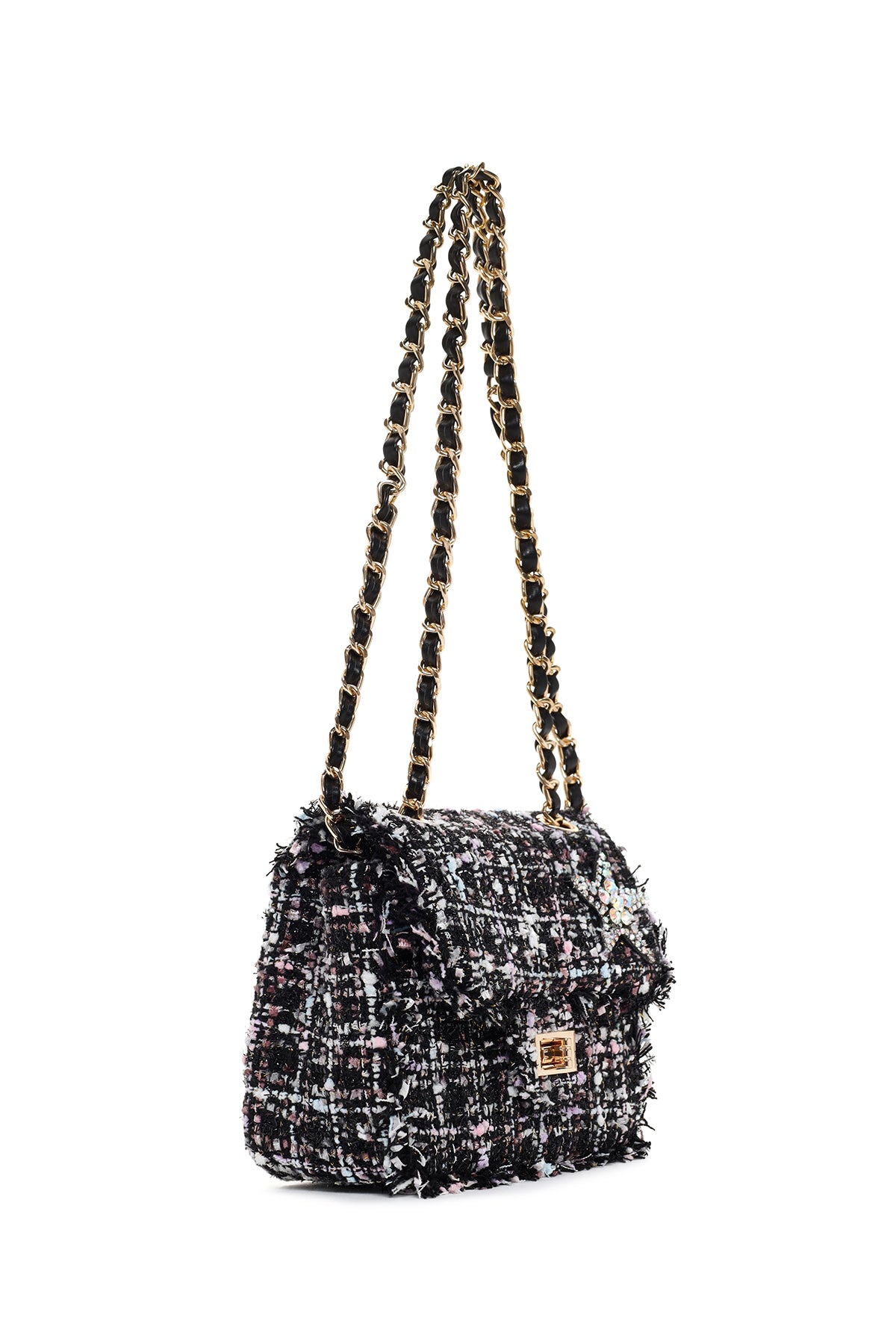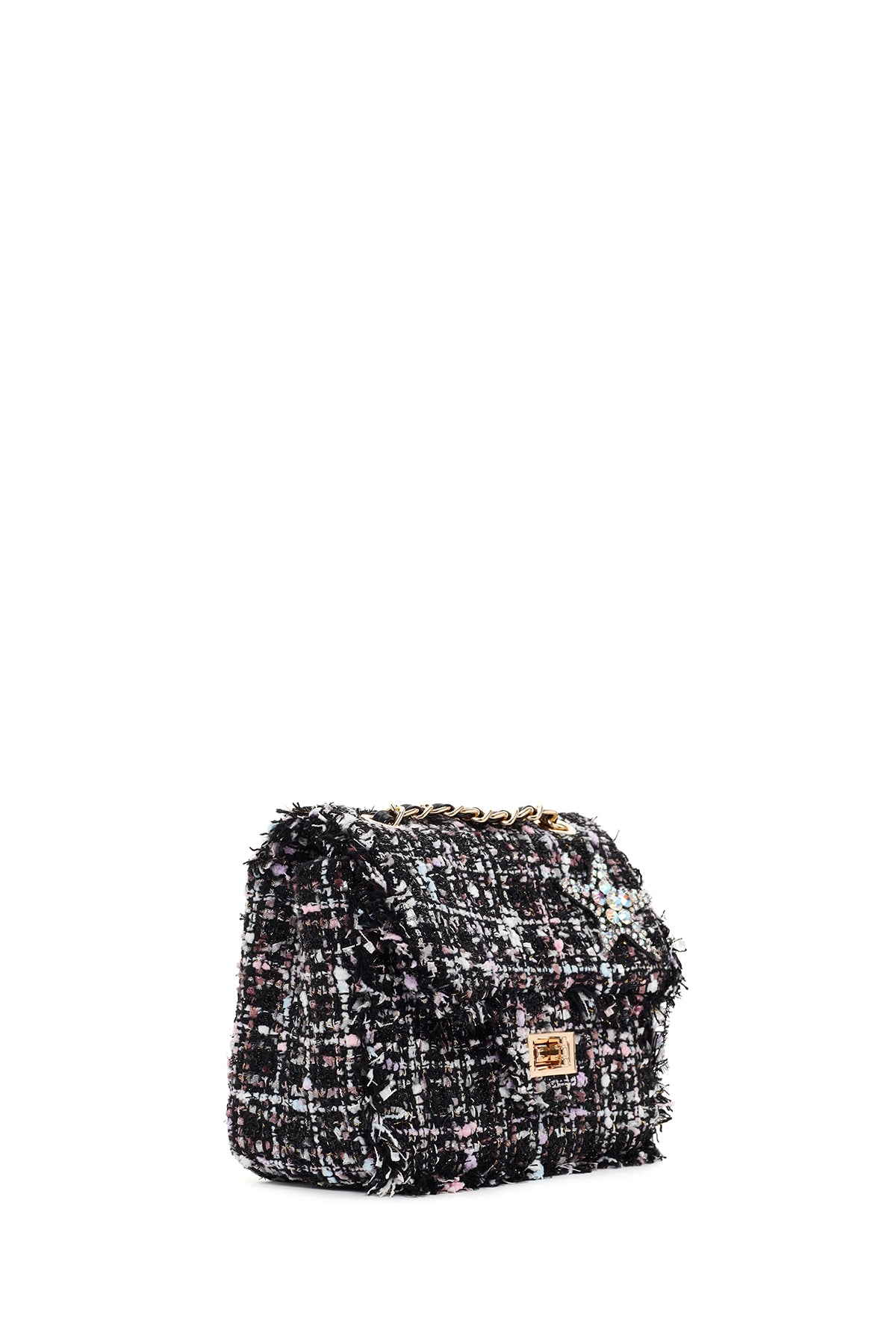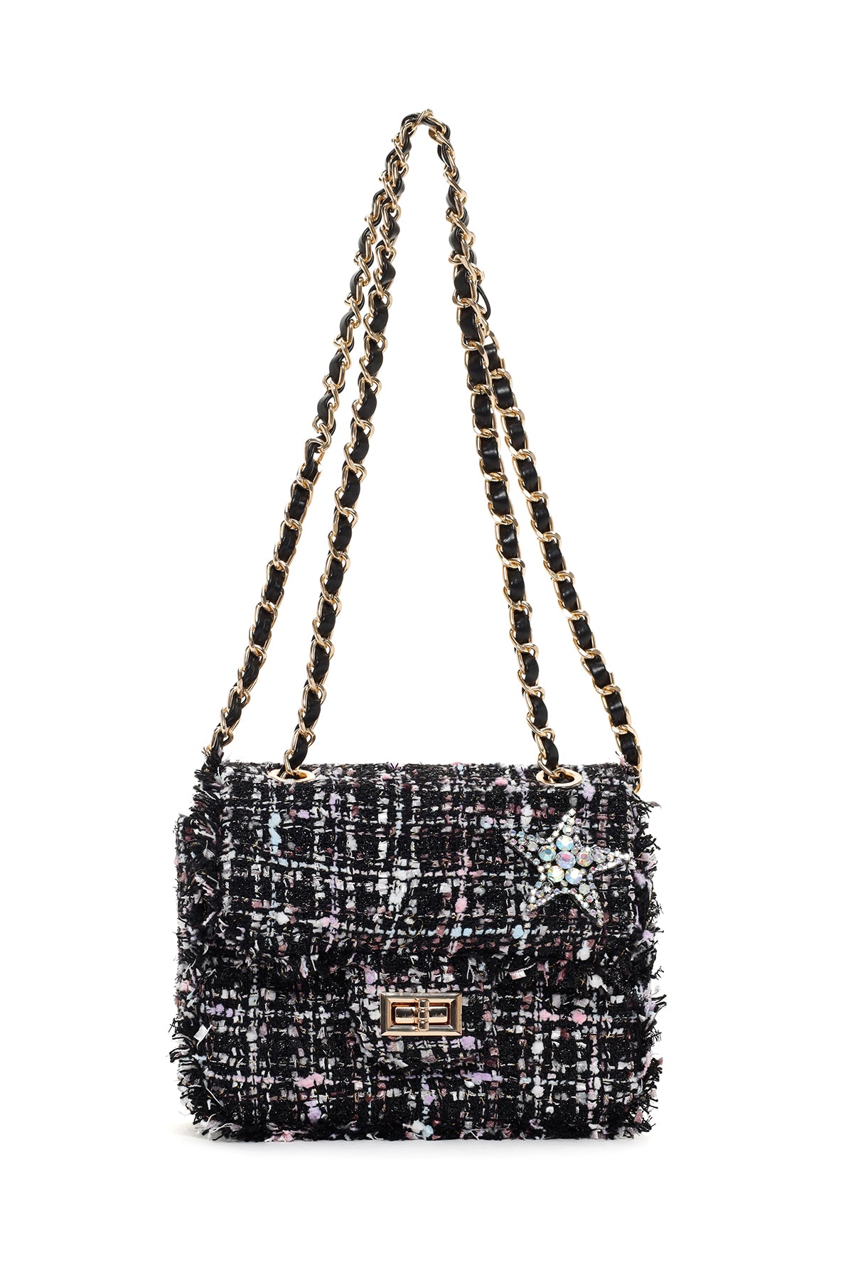 Kadın Siyah Uzun Askılı Aksesuarlı Omuz Çantası