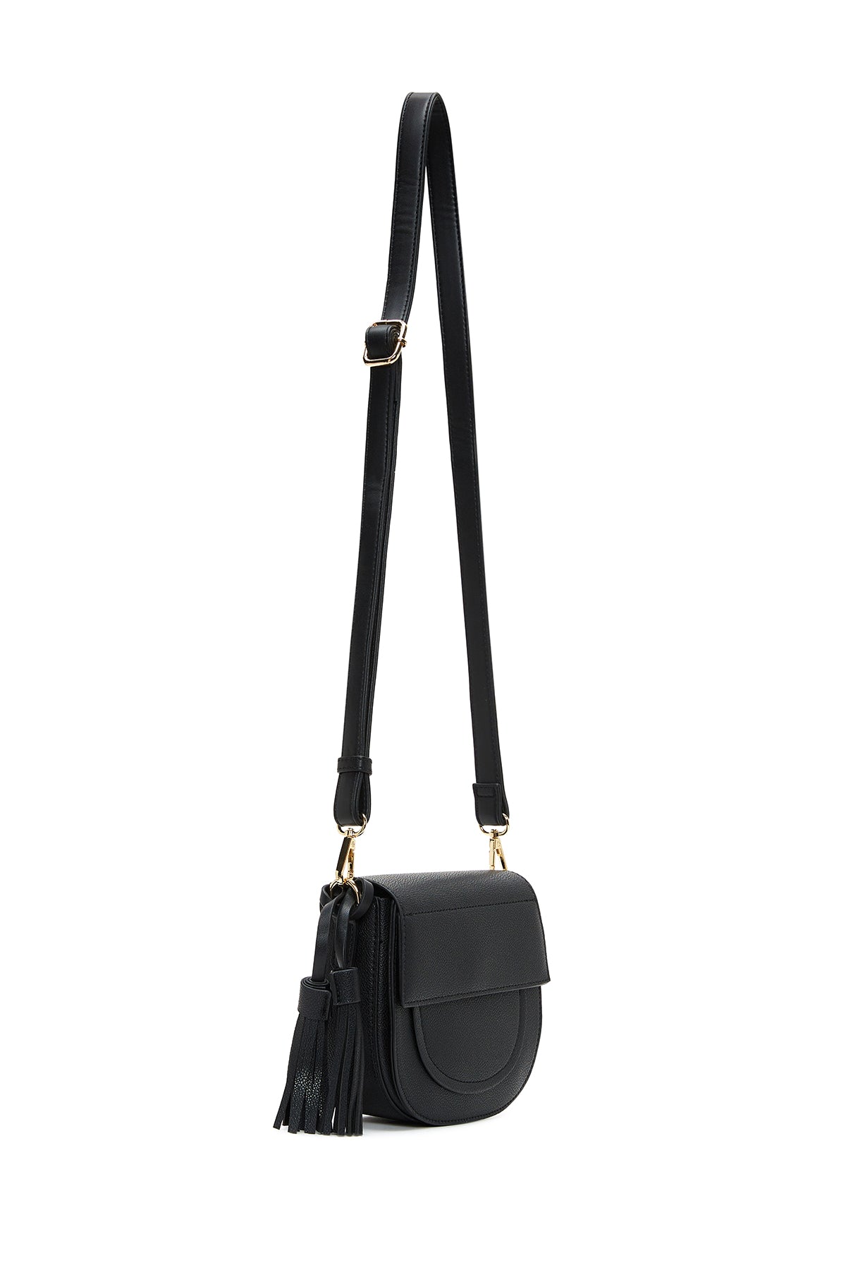 Kadın Siyah Uzun Askılı Aksesuarlı Omuz Çantası