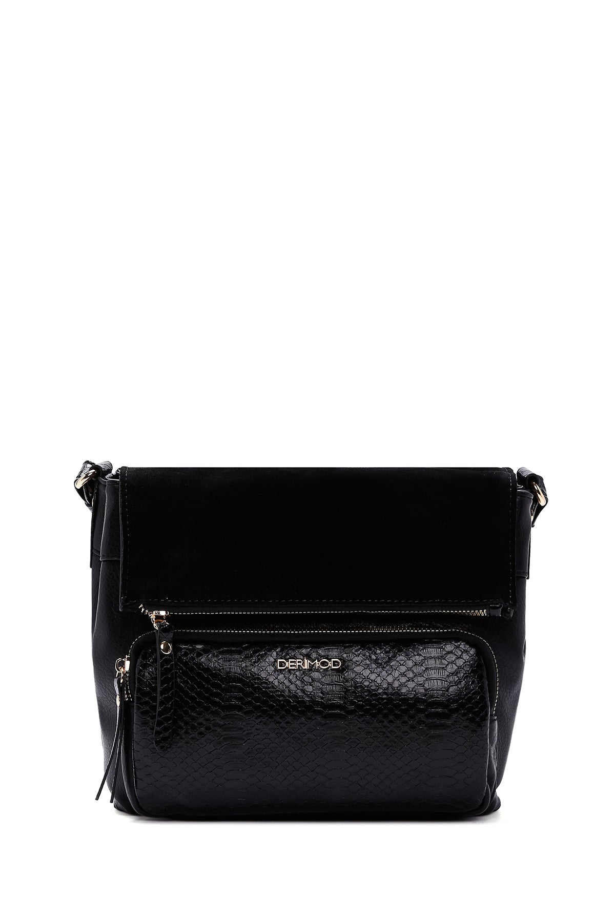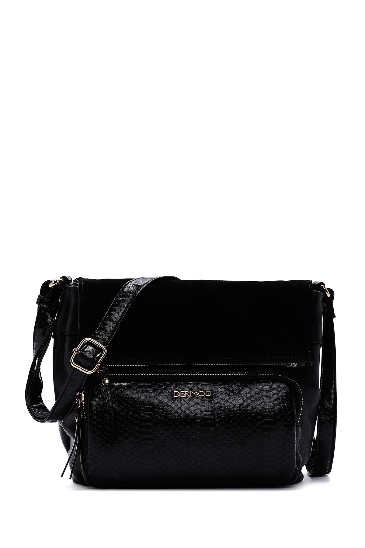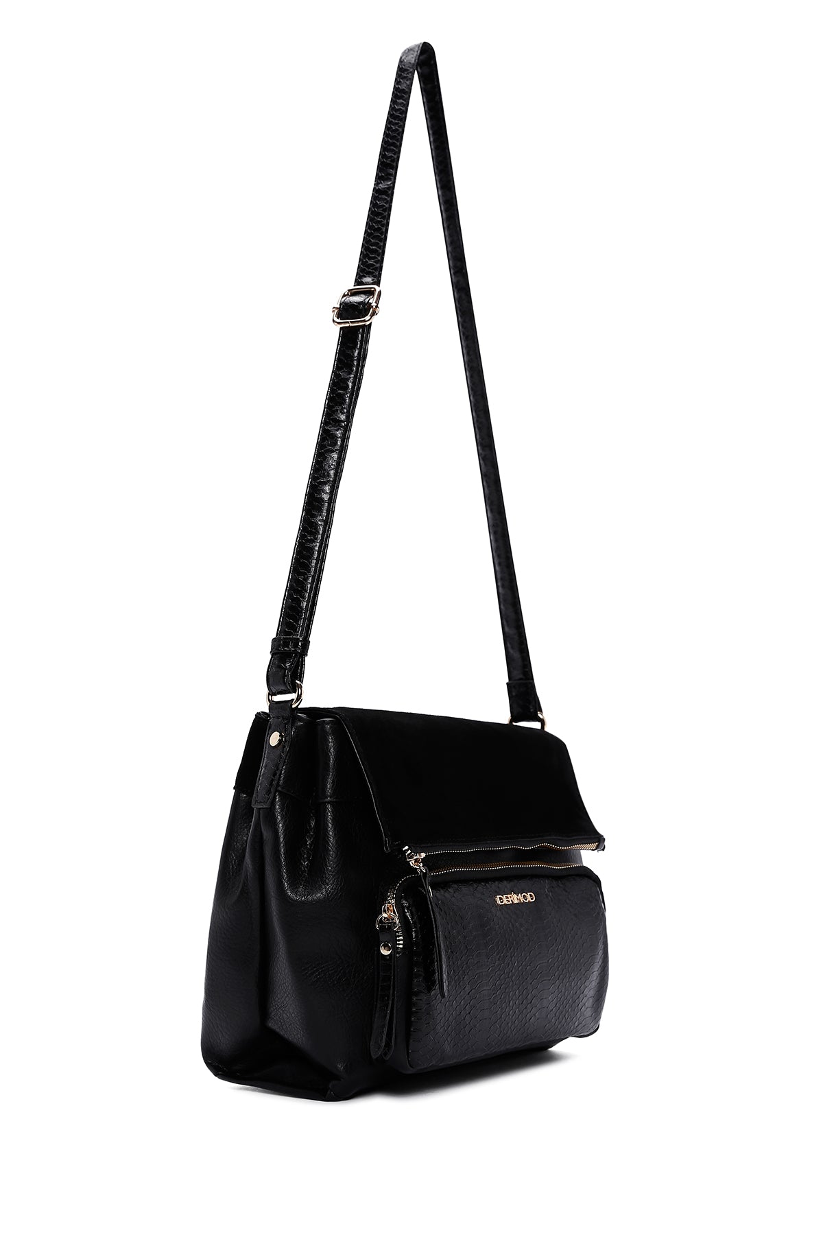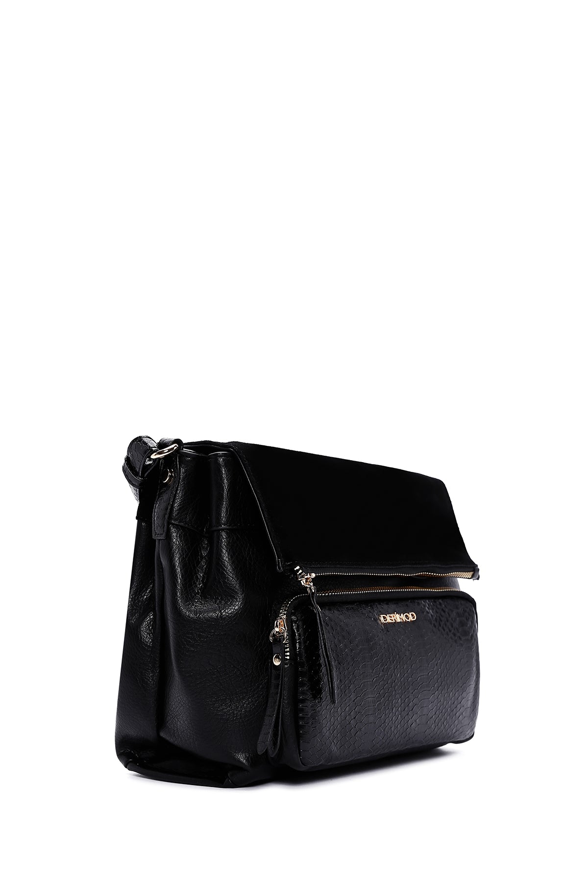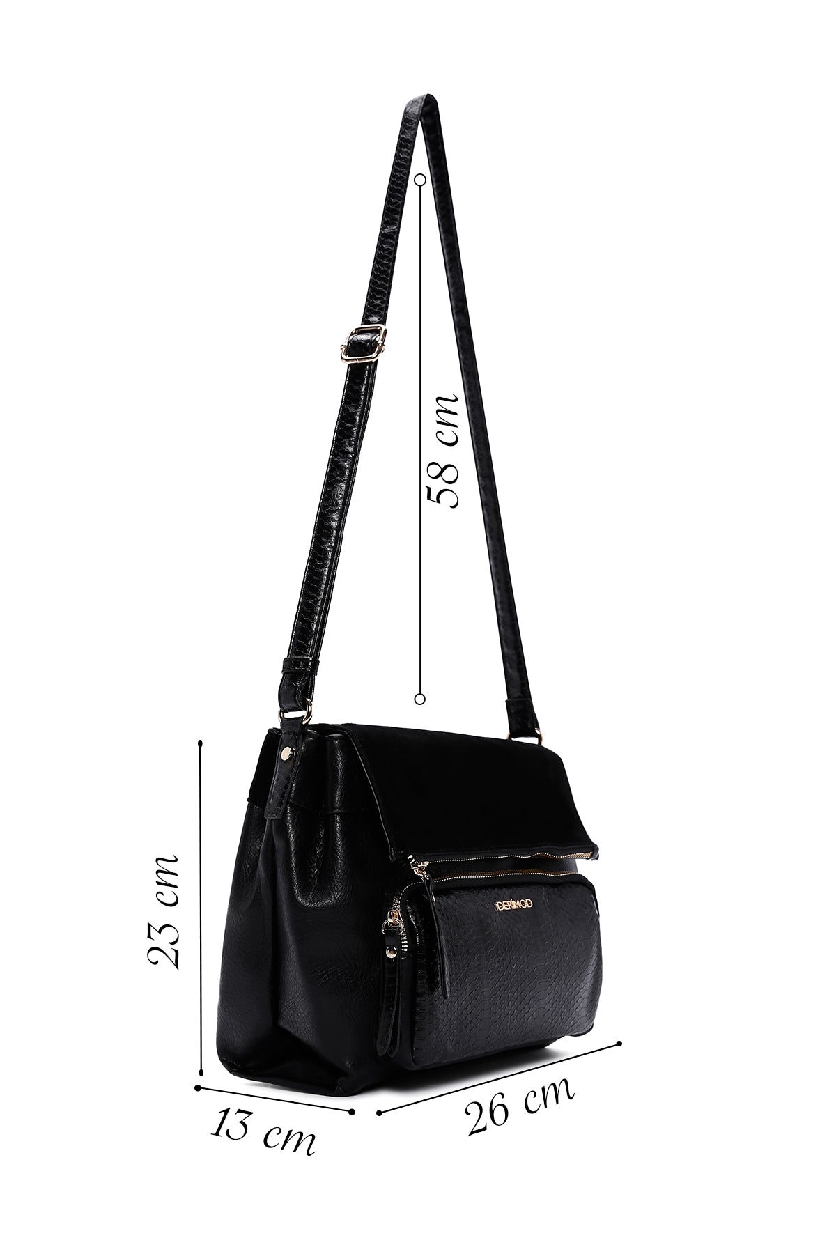Kadın Siyah Uzun Askılı Baskılı Çapraz Çanta