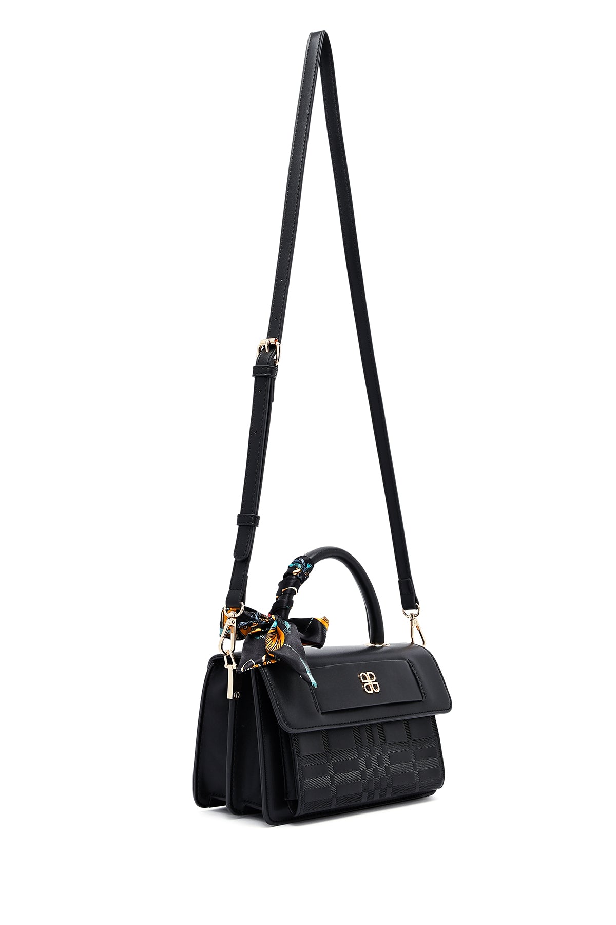 Kadın Siyah Uzun Askılı Baskılı Çapraz Çanta