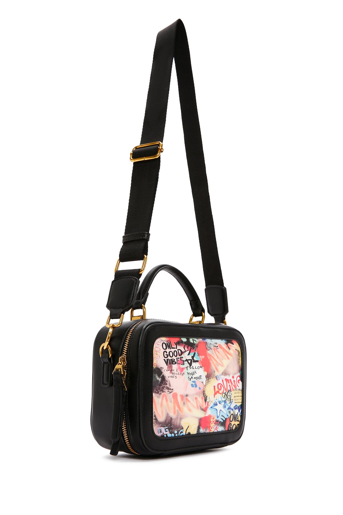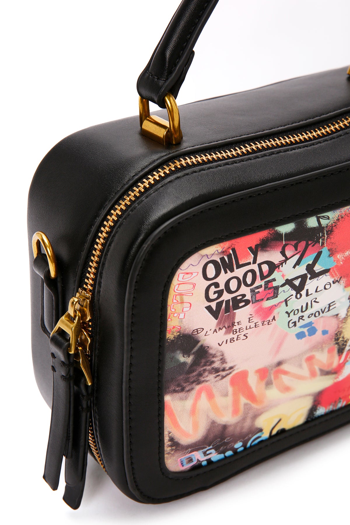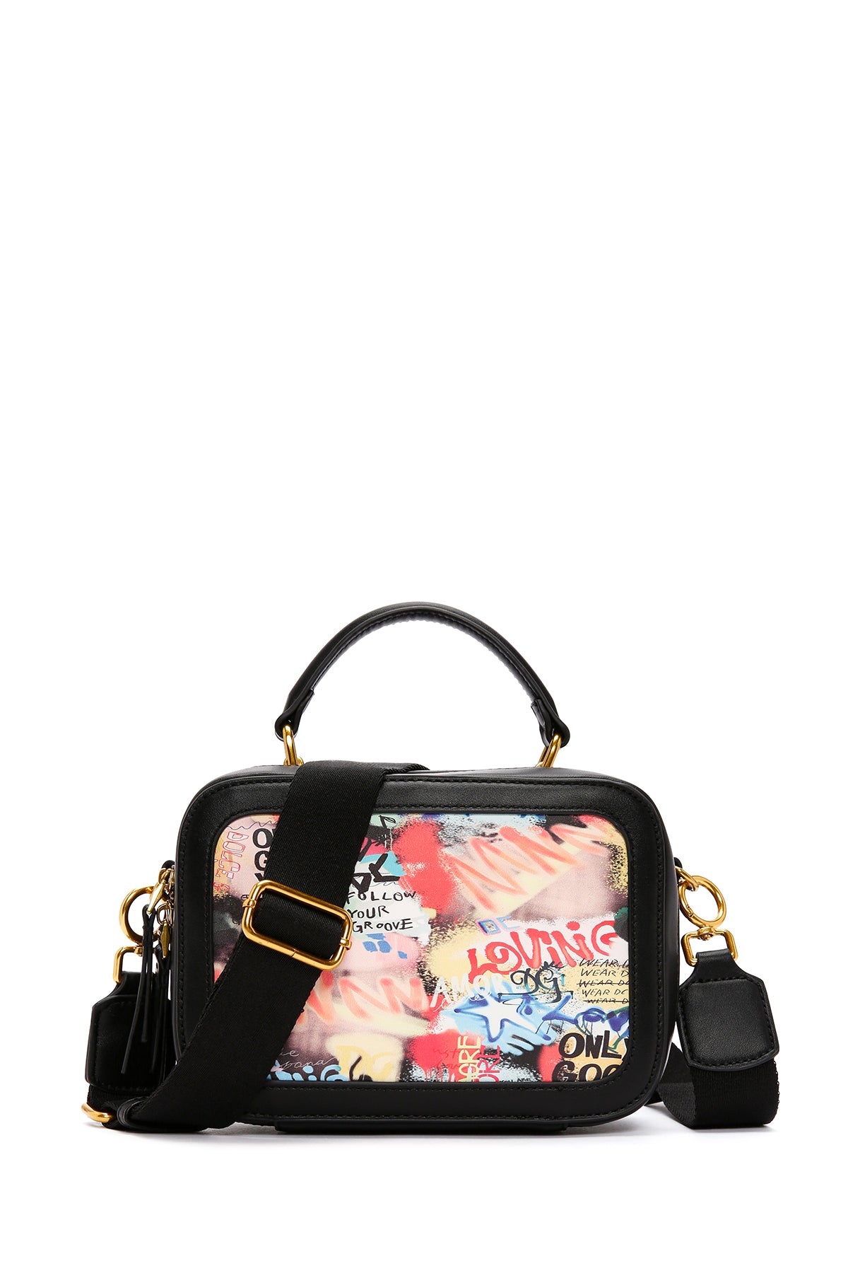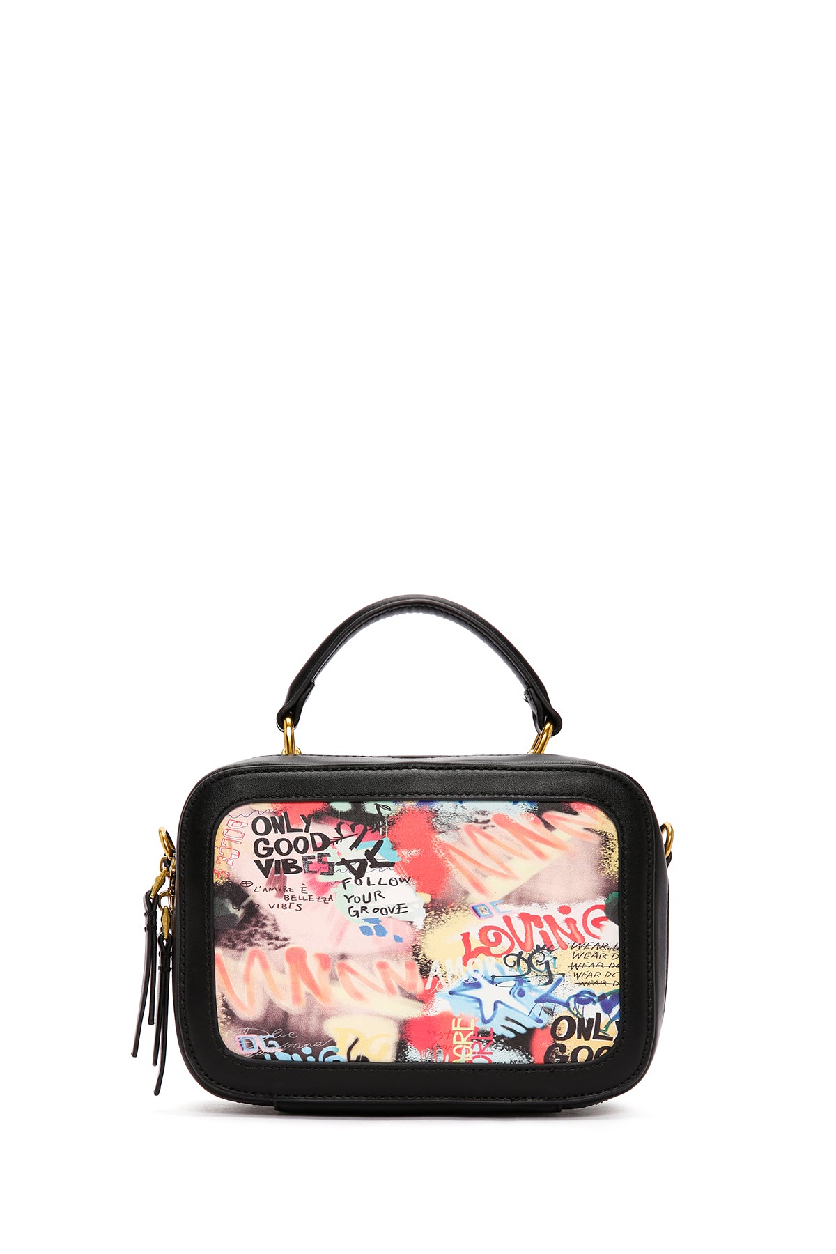Kadın Siyah Uzun Askılı Baskılı Kol Çantası