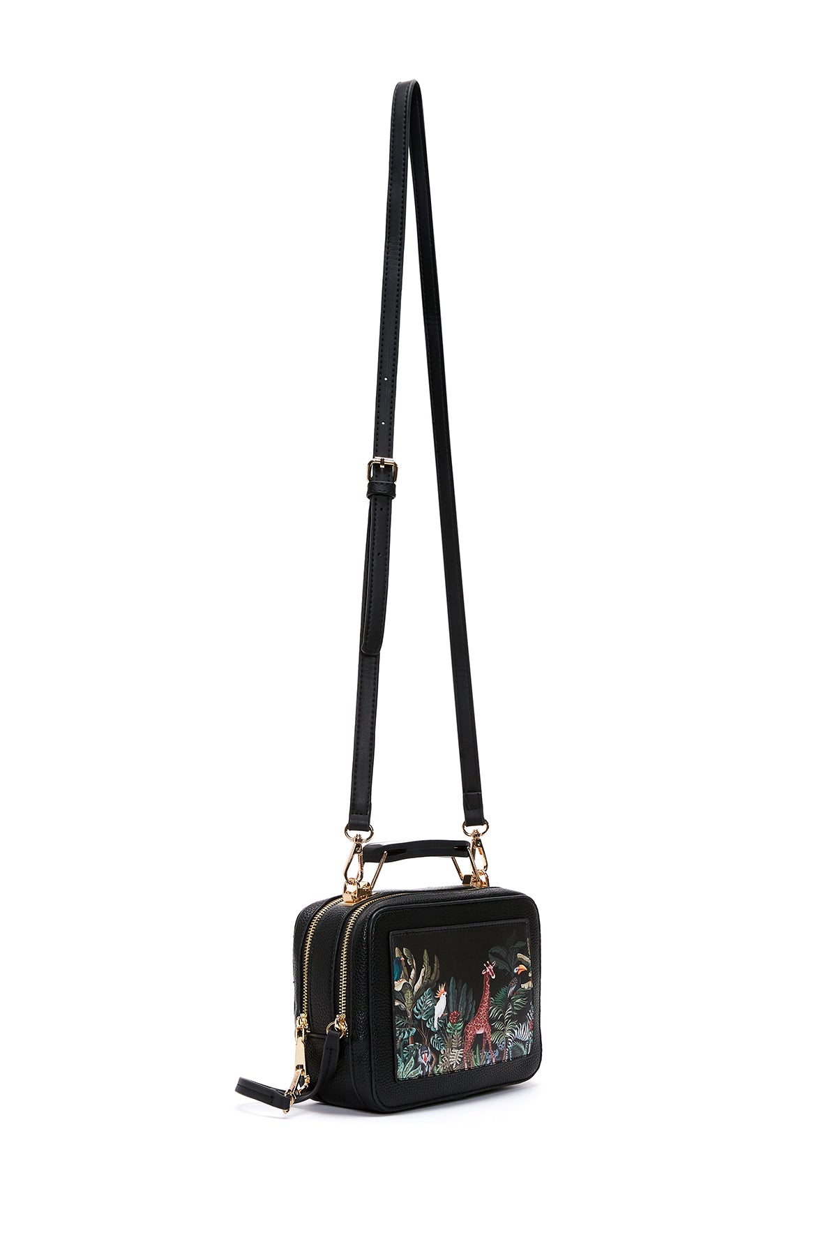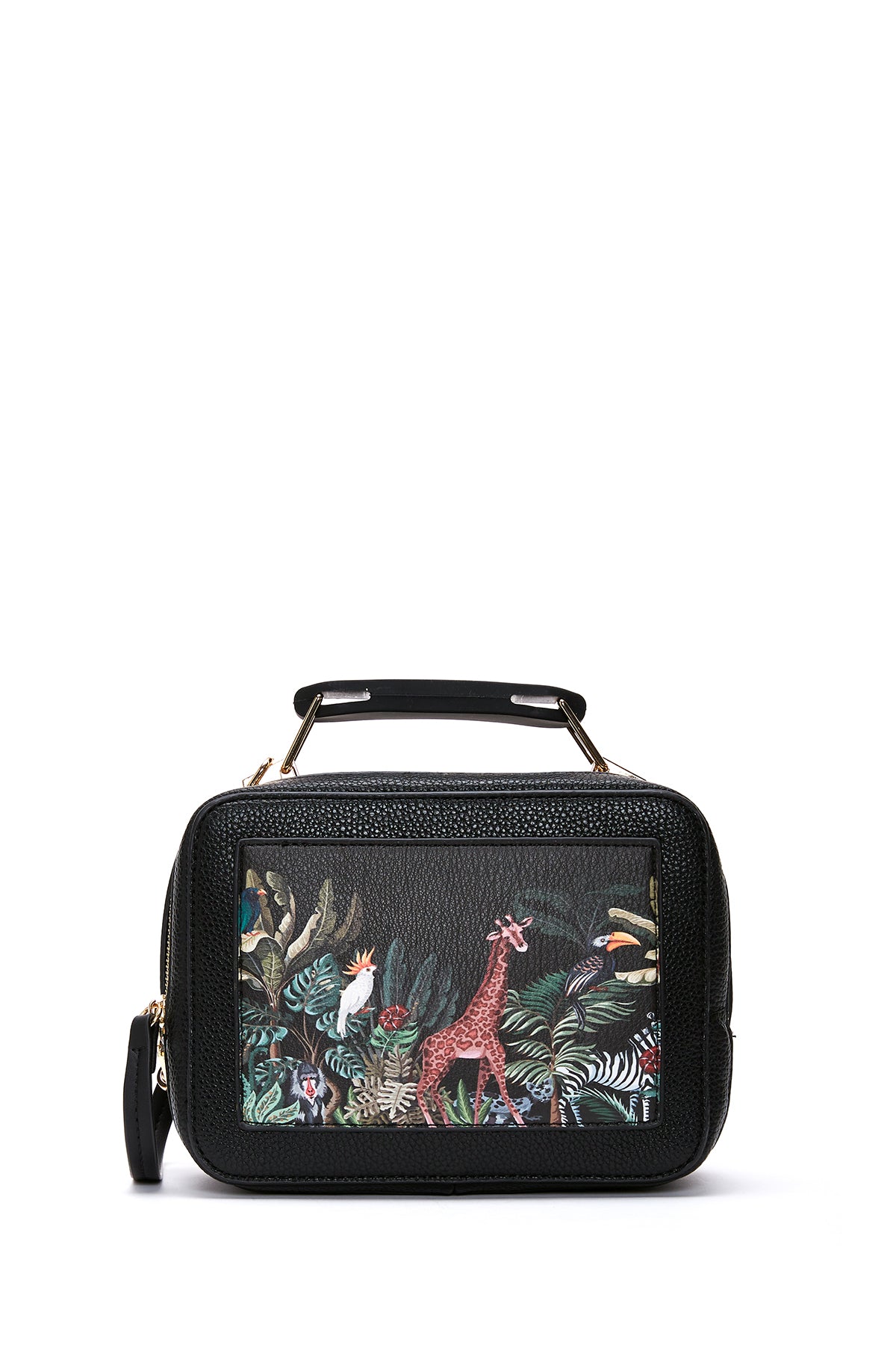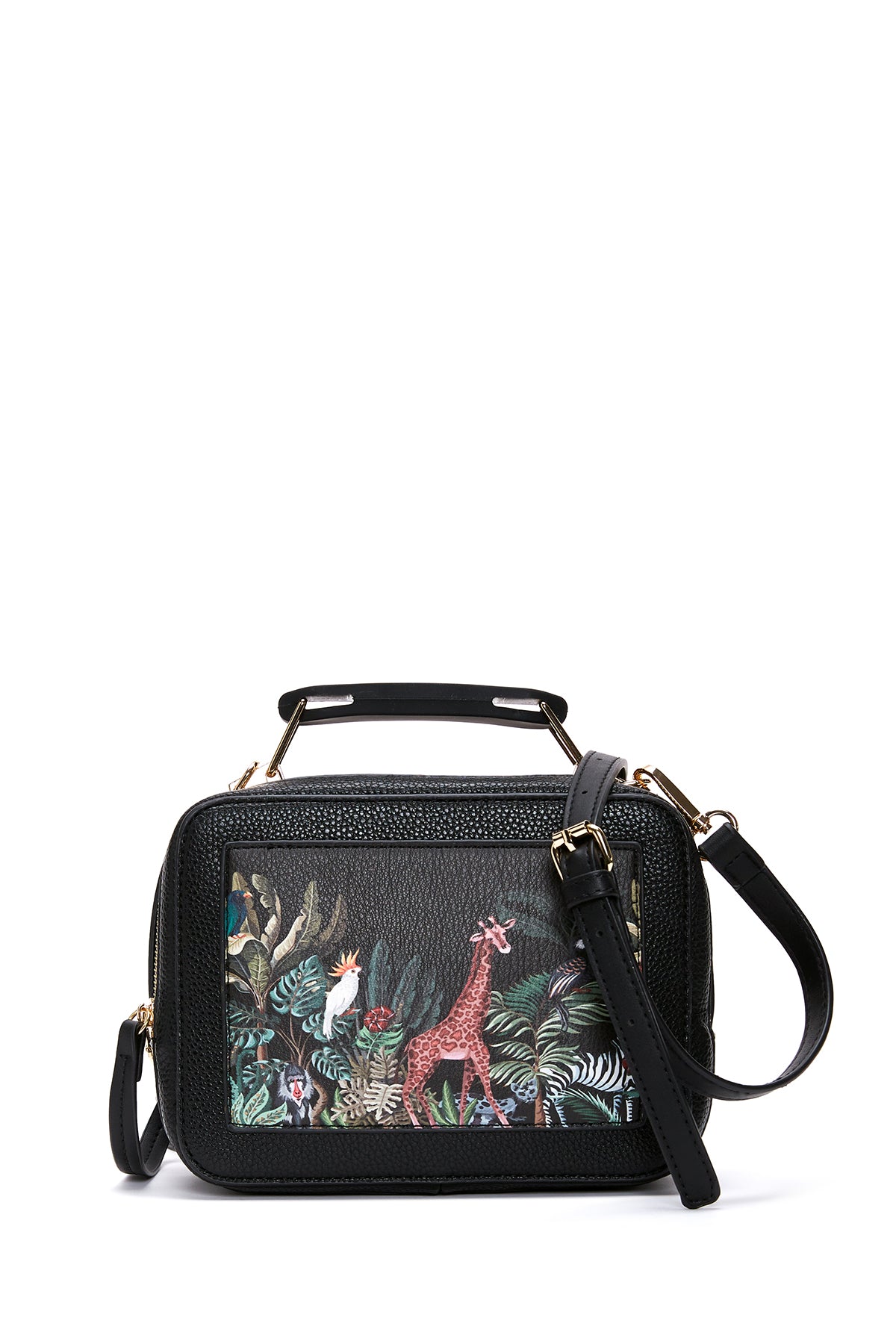 Kadın Siyah Uzun Askılı Baskılı Kol Çantası