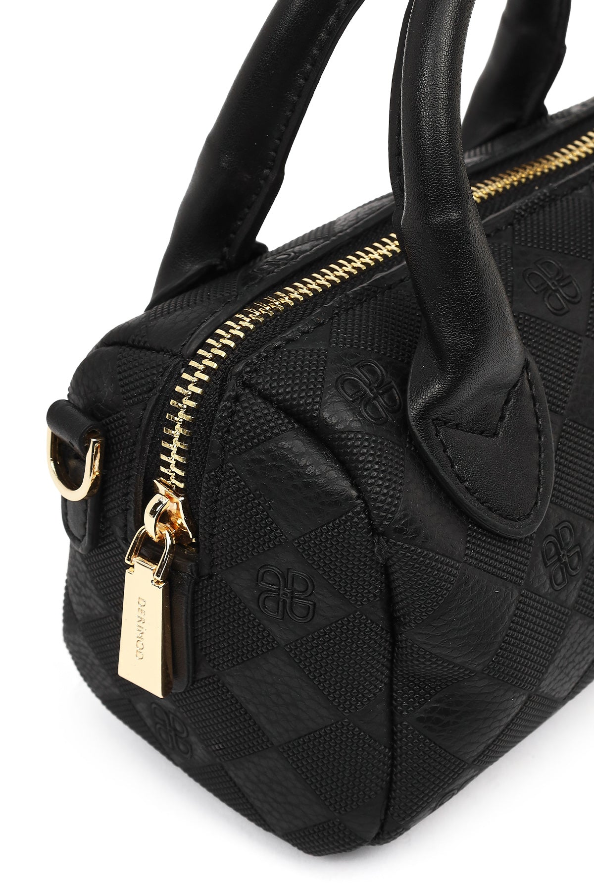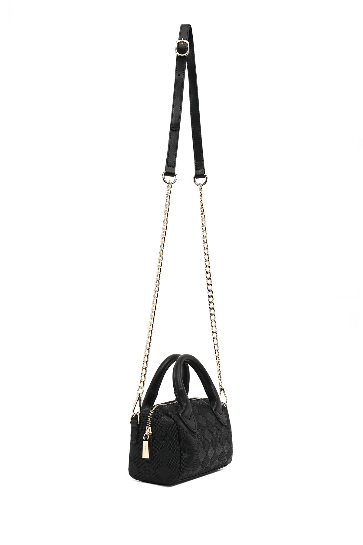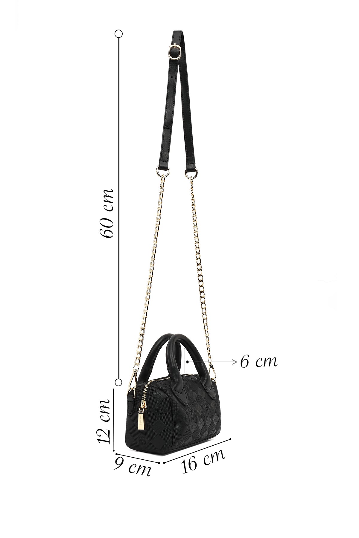 Kadın Siyah Uzun Askılı Baskılı Mini Çapraz Çanta