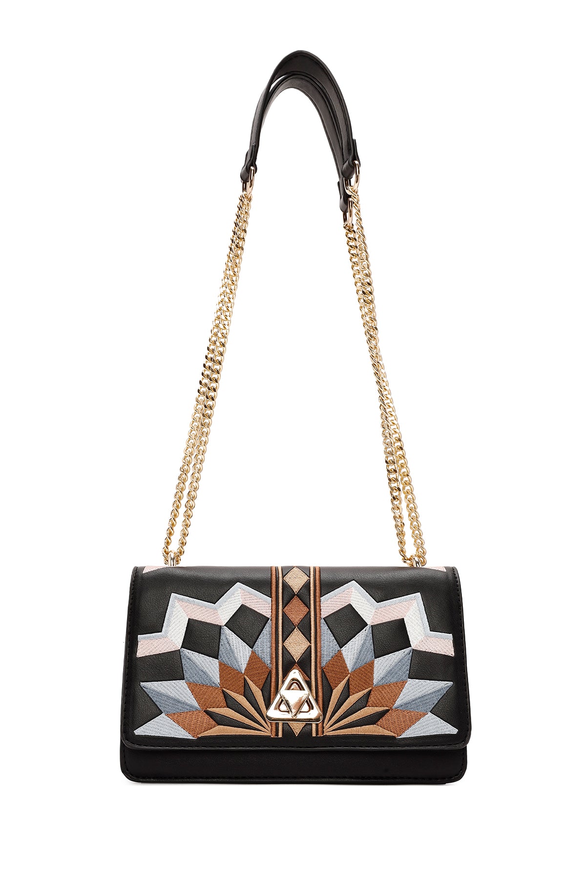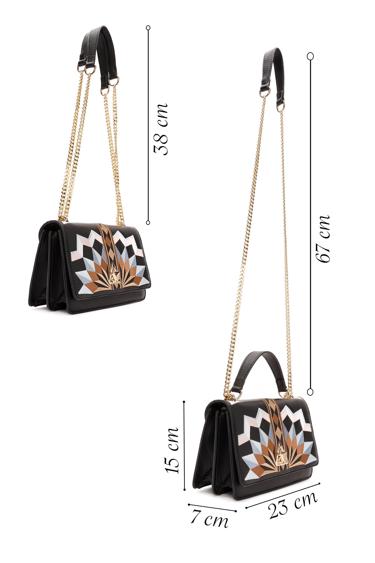Kadın Siyah Uzun Askılı Baskılı Omuz Çantası