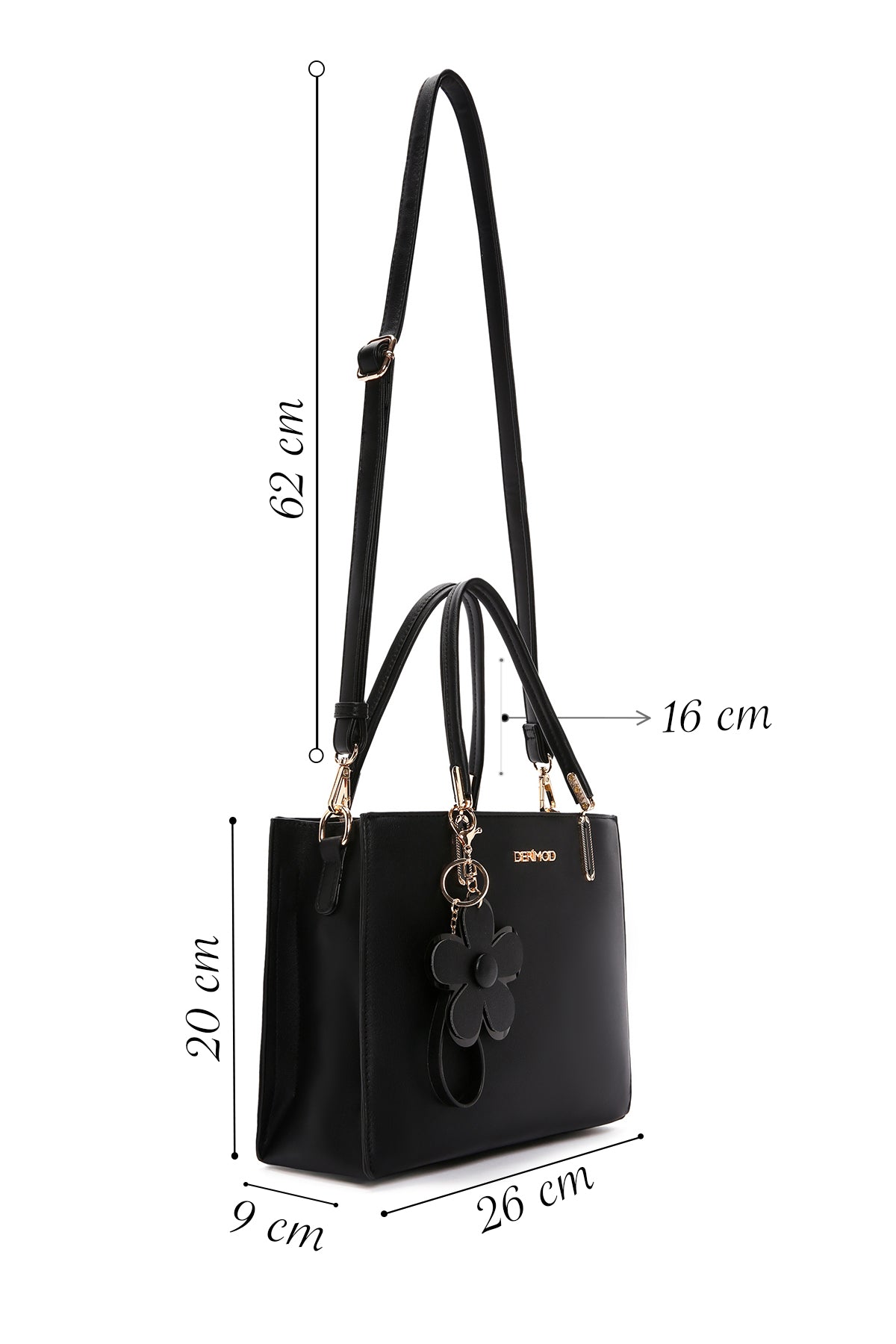 Kadın Siyah Uzun Askılı Charmlı Kol Çantası