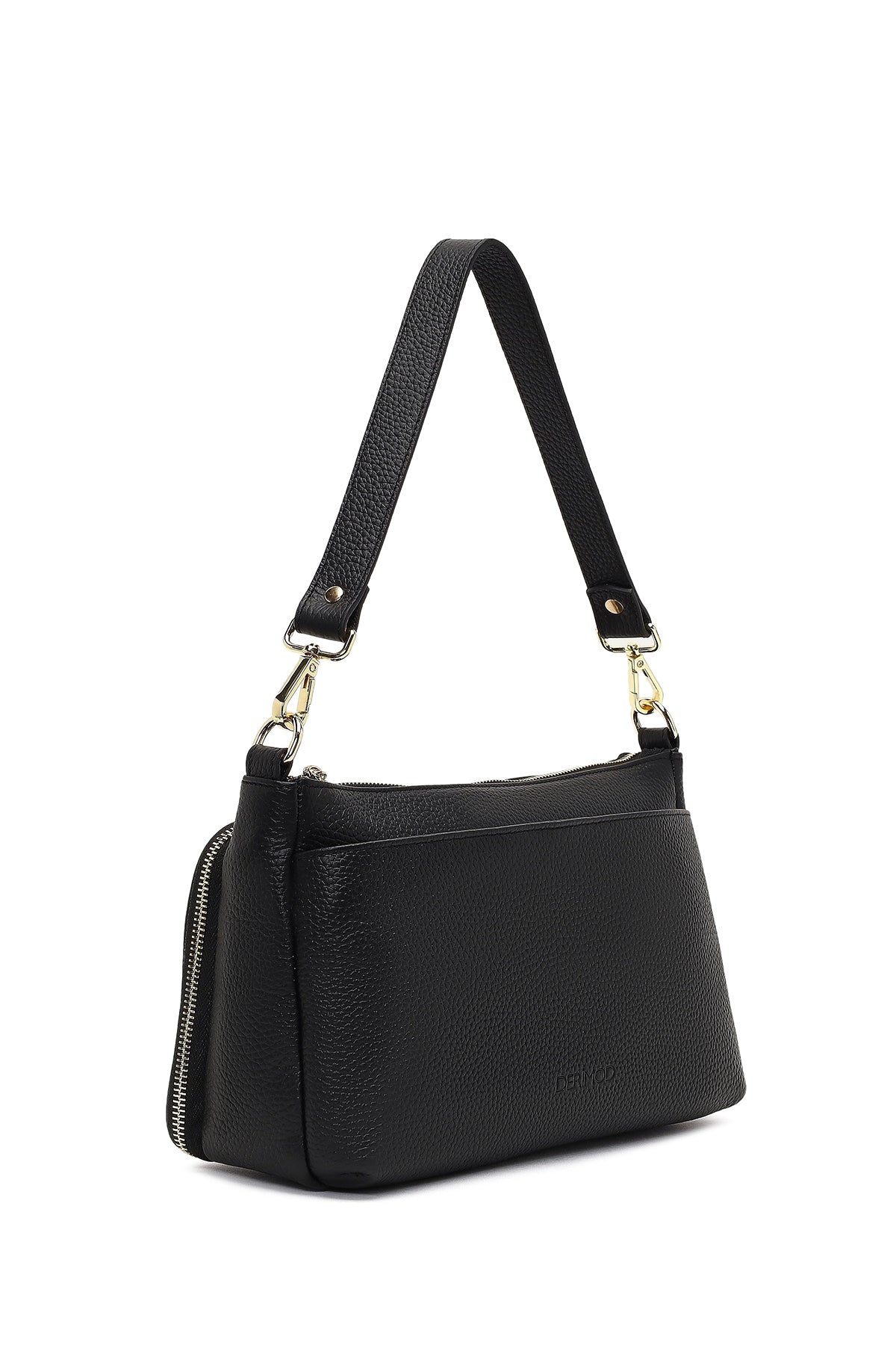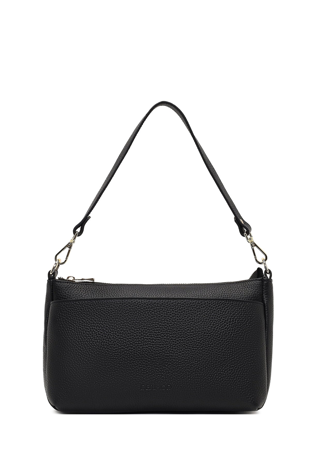 Kadın Siyah Uzun Askılı Deri Kol Çantası