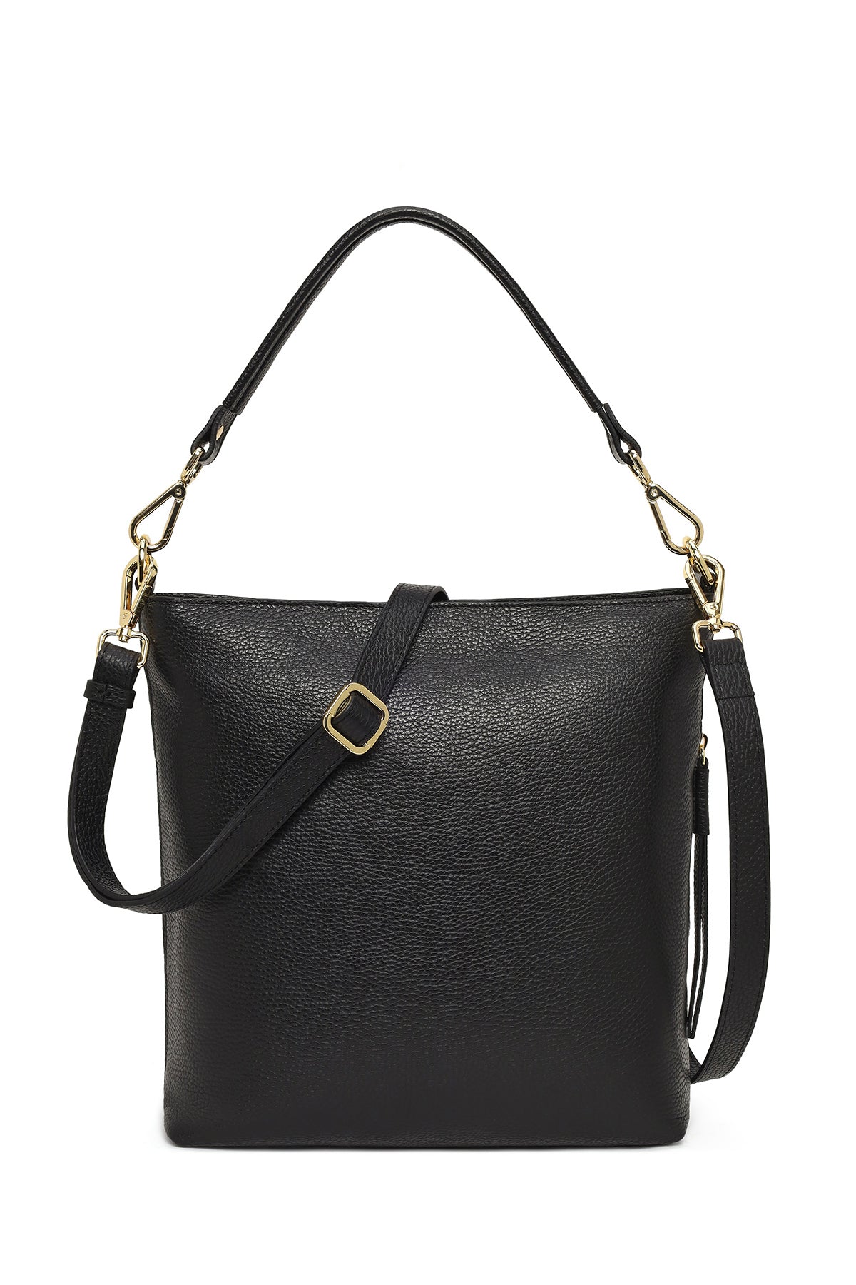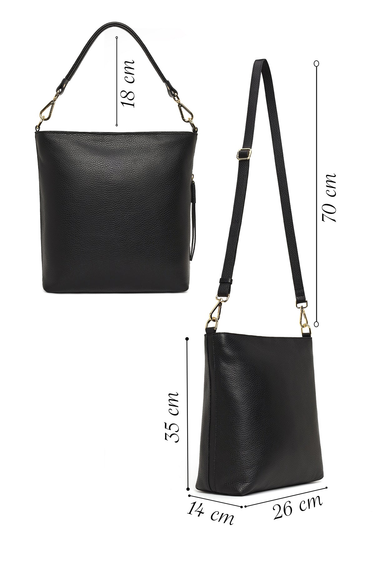 Kadın Siyah Uzun Askılı Deri Omuz Çantası