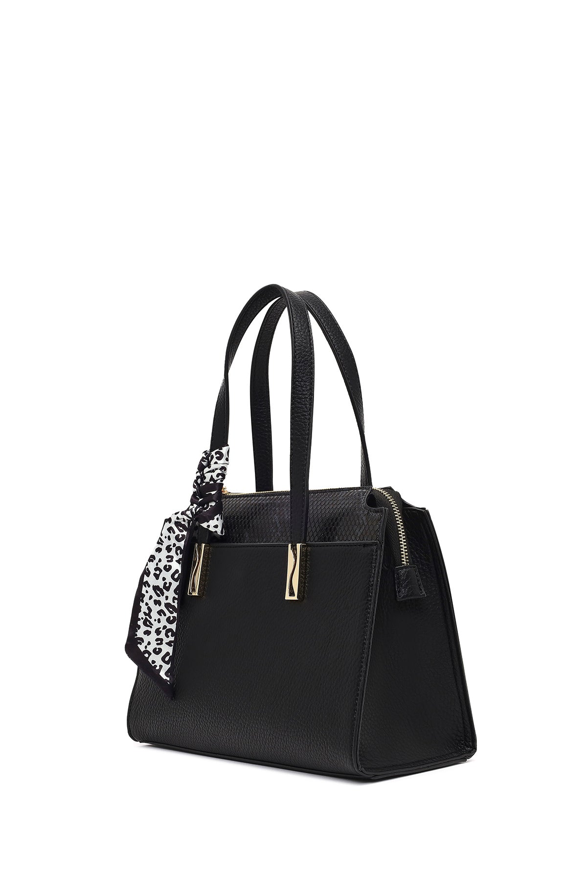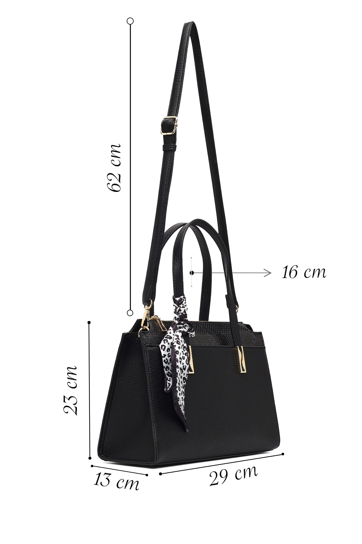 Kadın Siyah Uzun Askılı Desenli Kol Çantası