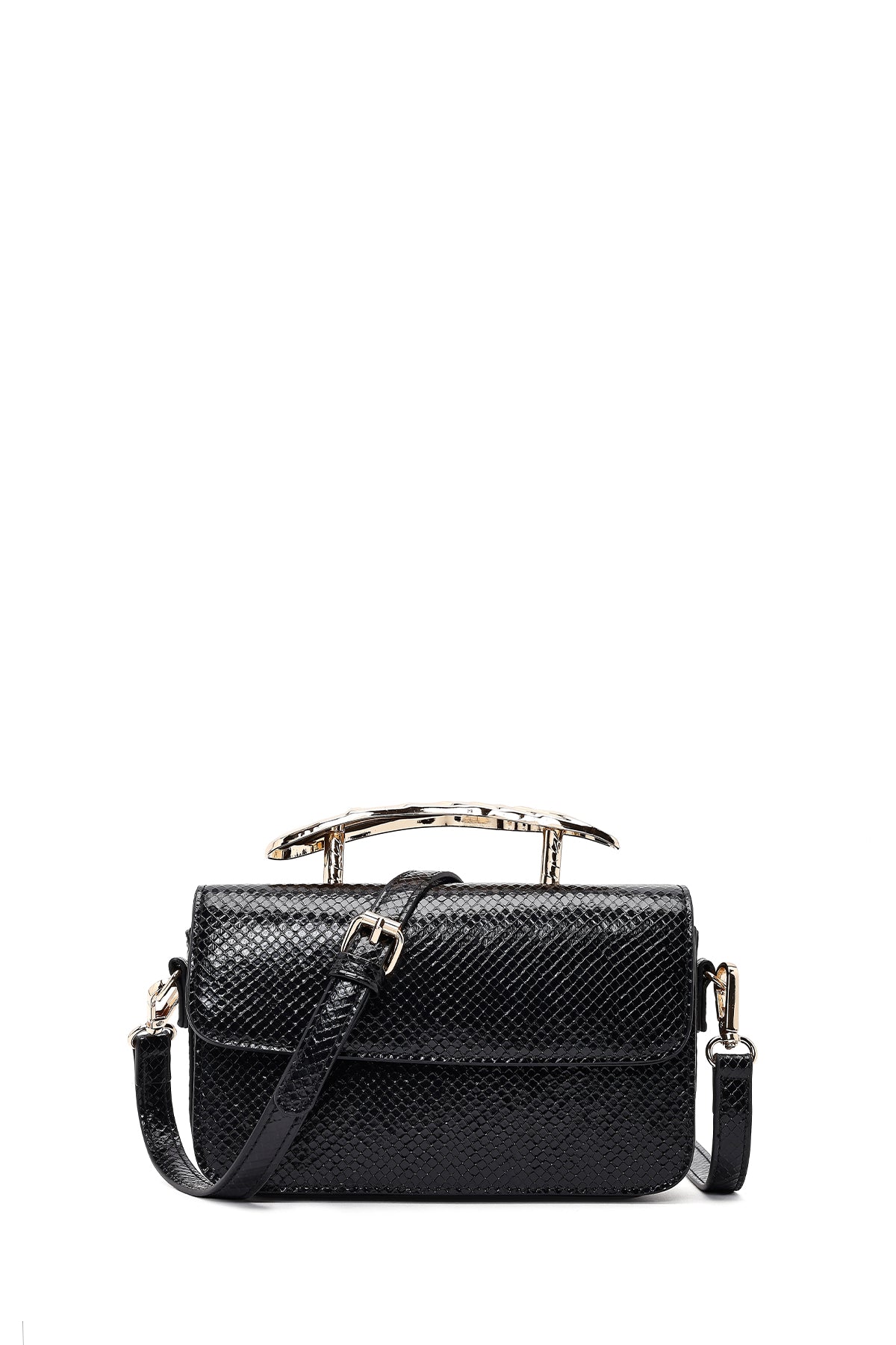 Kadın Siyah Uzun Askılı Desenli Mini Kol Çantası