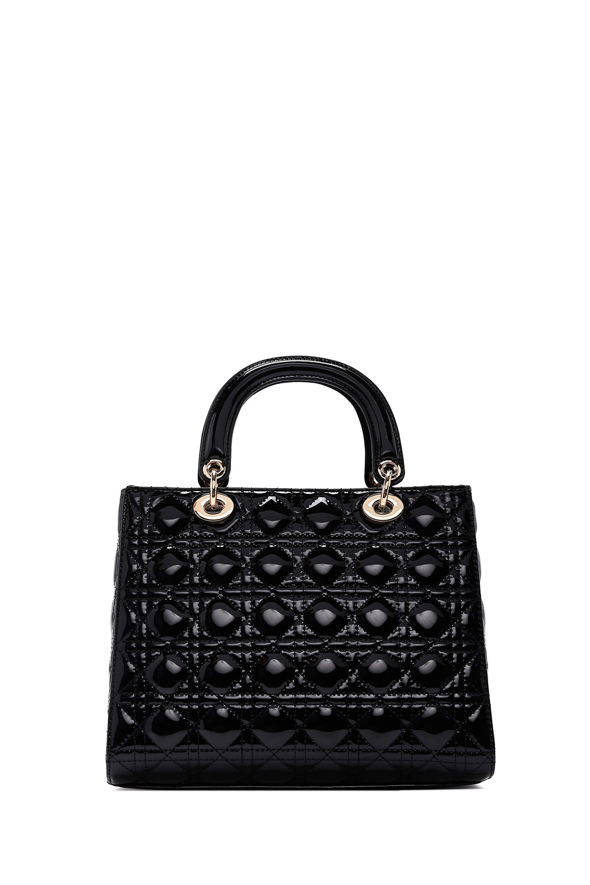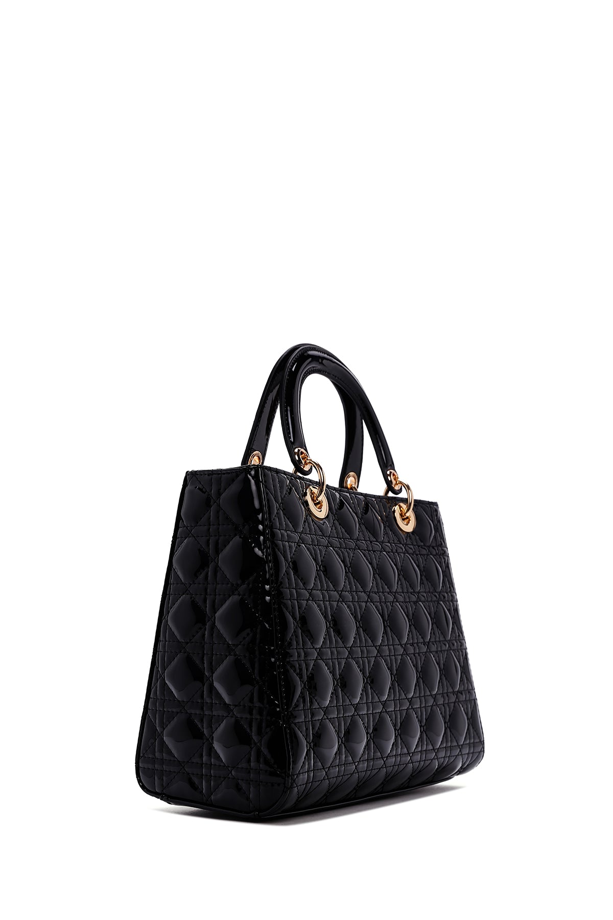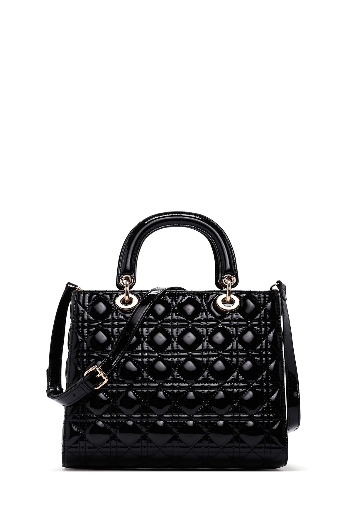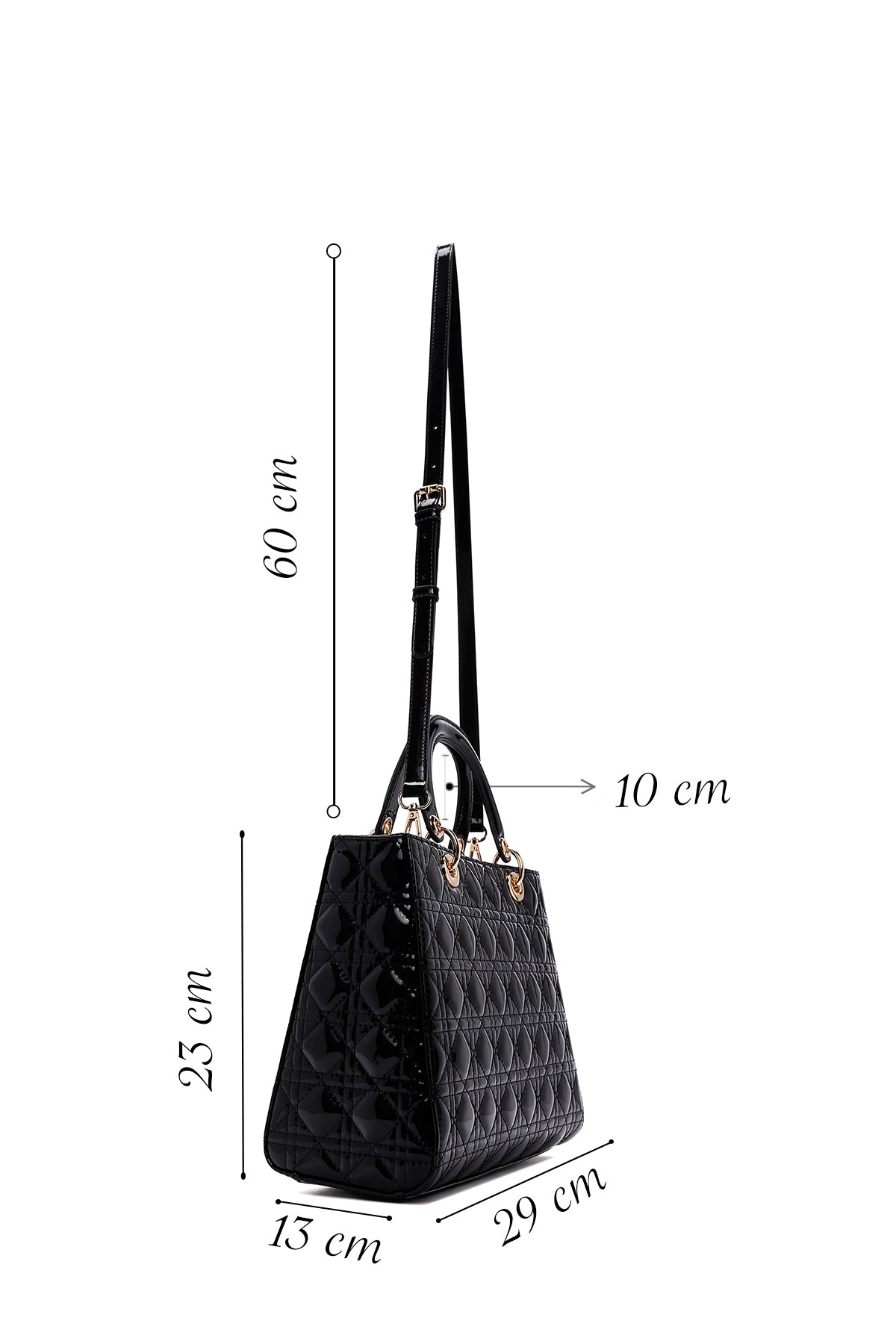 Kadın Siyah Uzun Askılı Desenli Rugan Kol Çantası