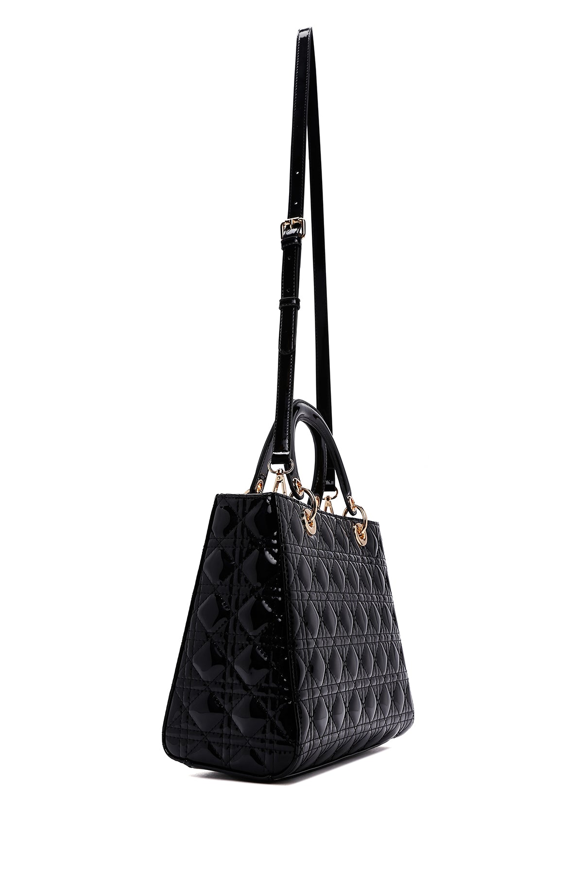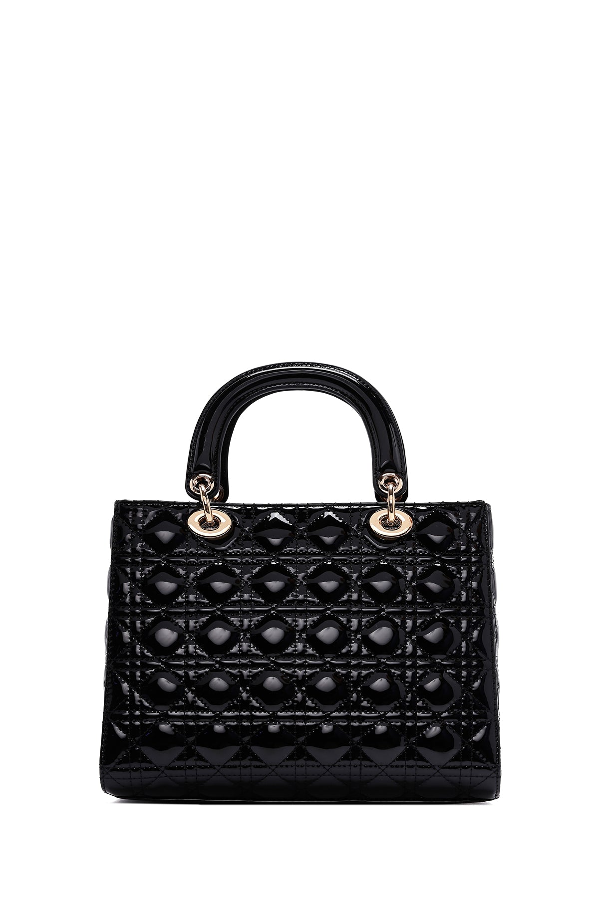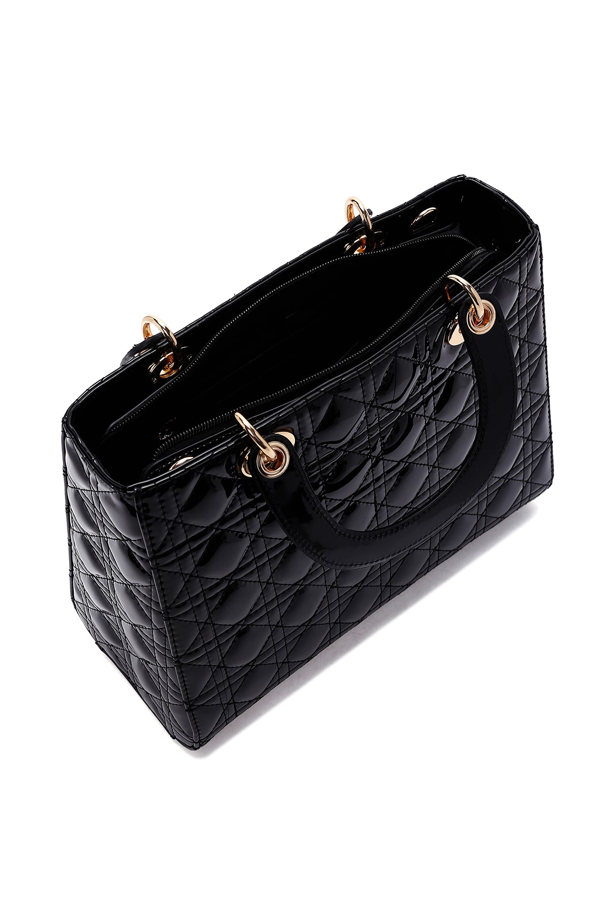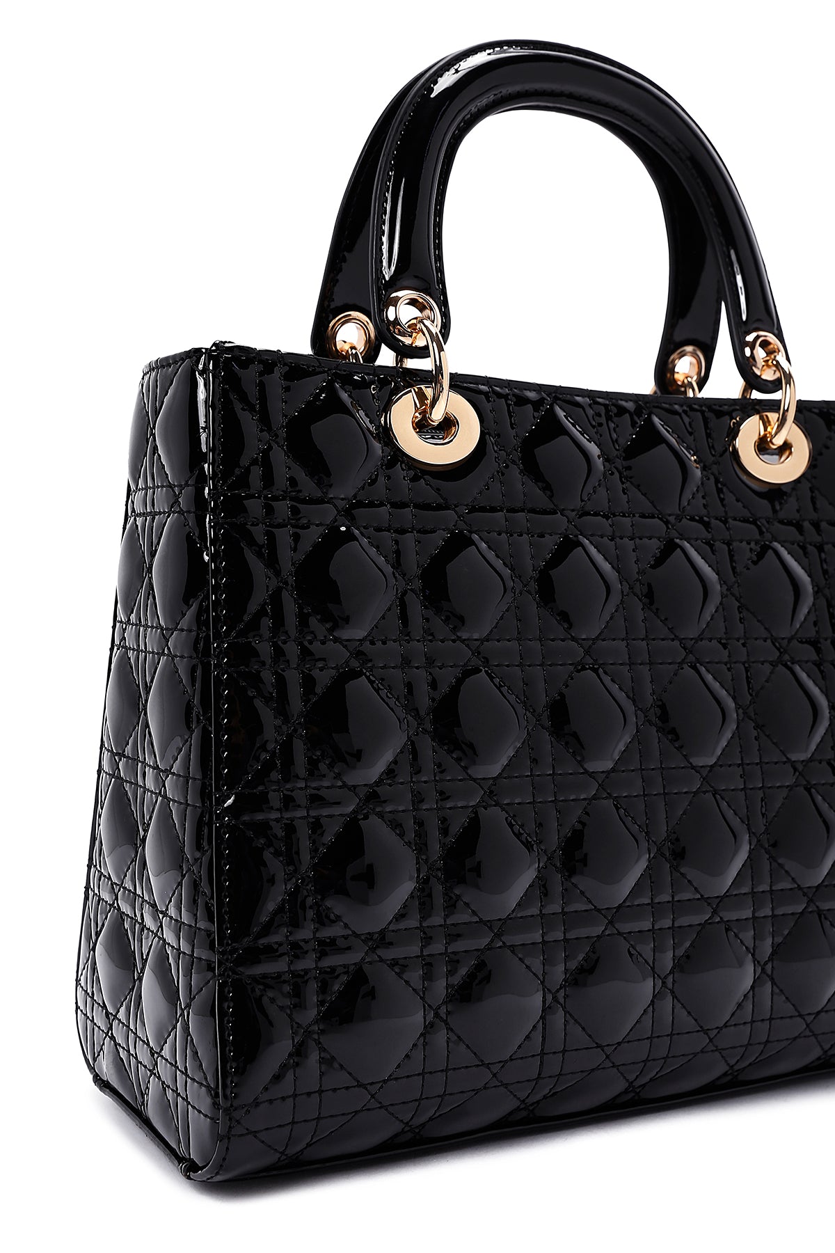 Kadın Siyah Uzun Askılı Desenli Rugan Kol Çantası