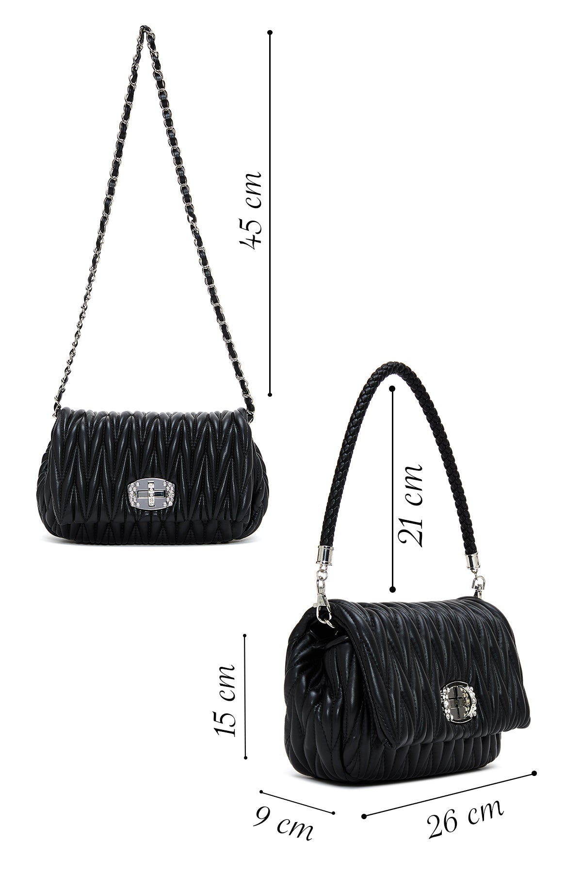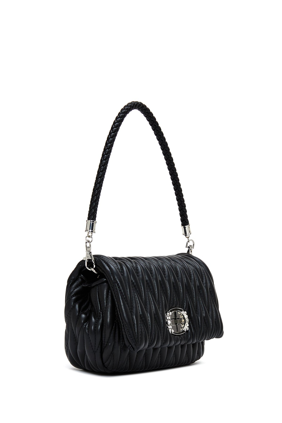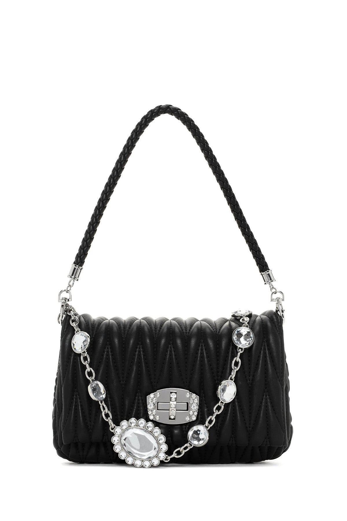 Kadın Siyah Uzun Askılı Kapitone Omuz Çantası