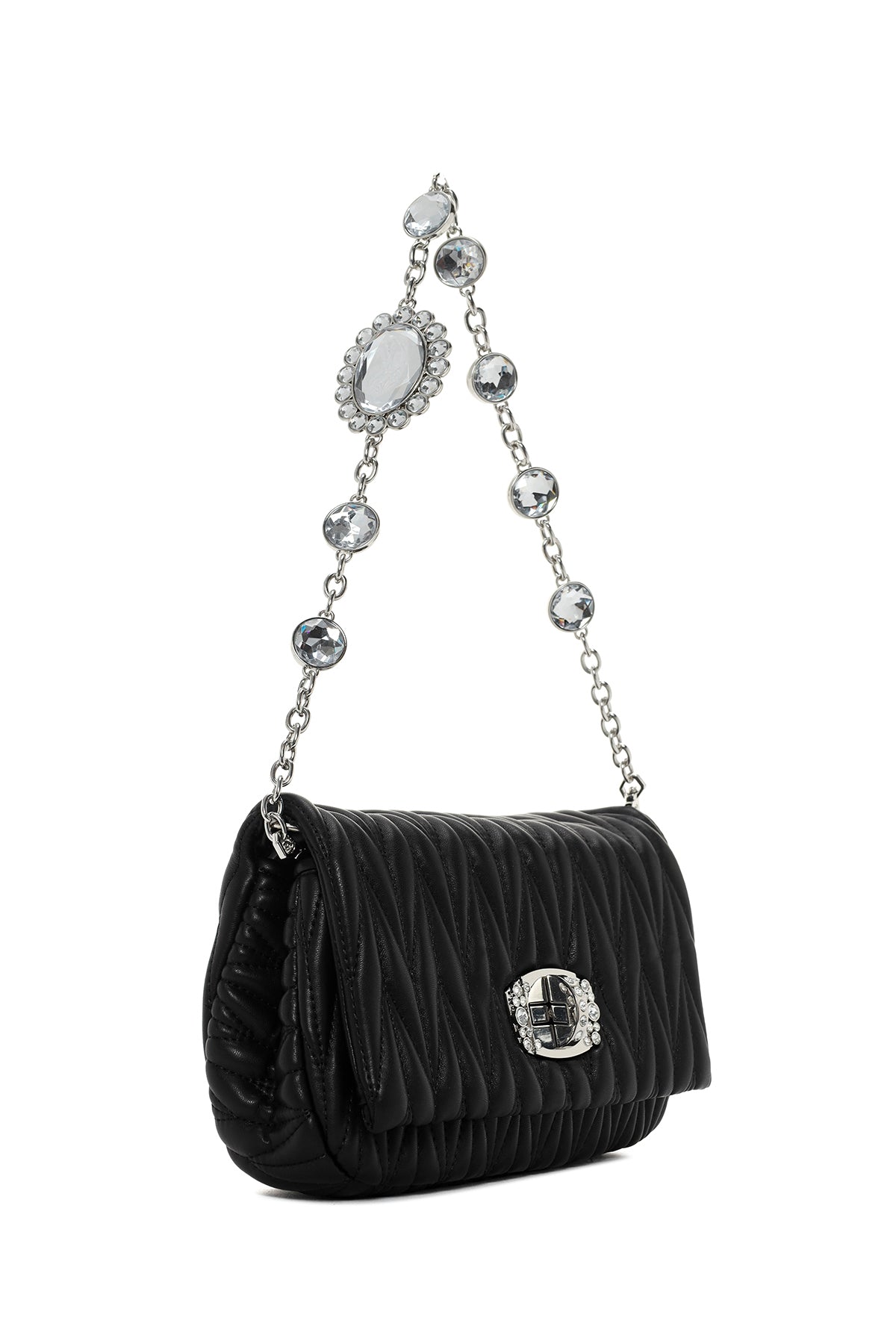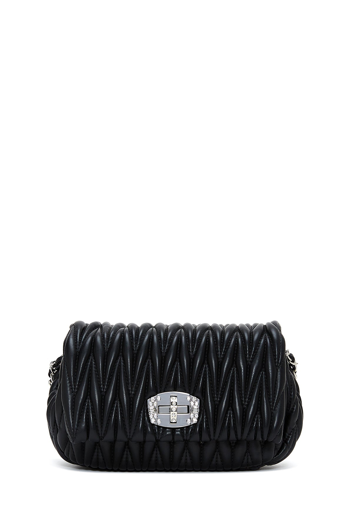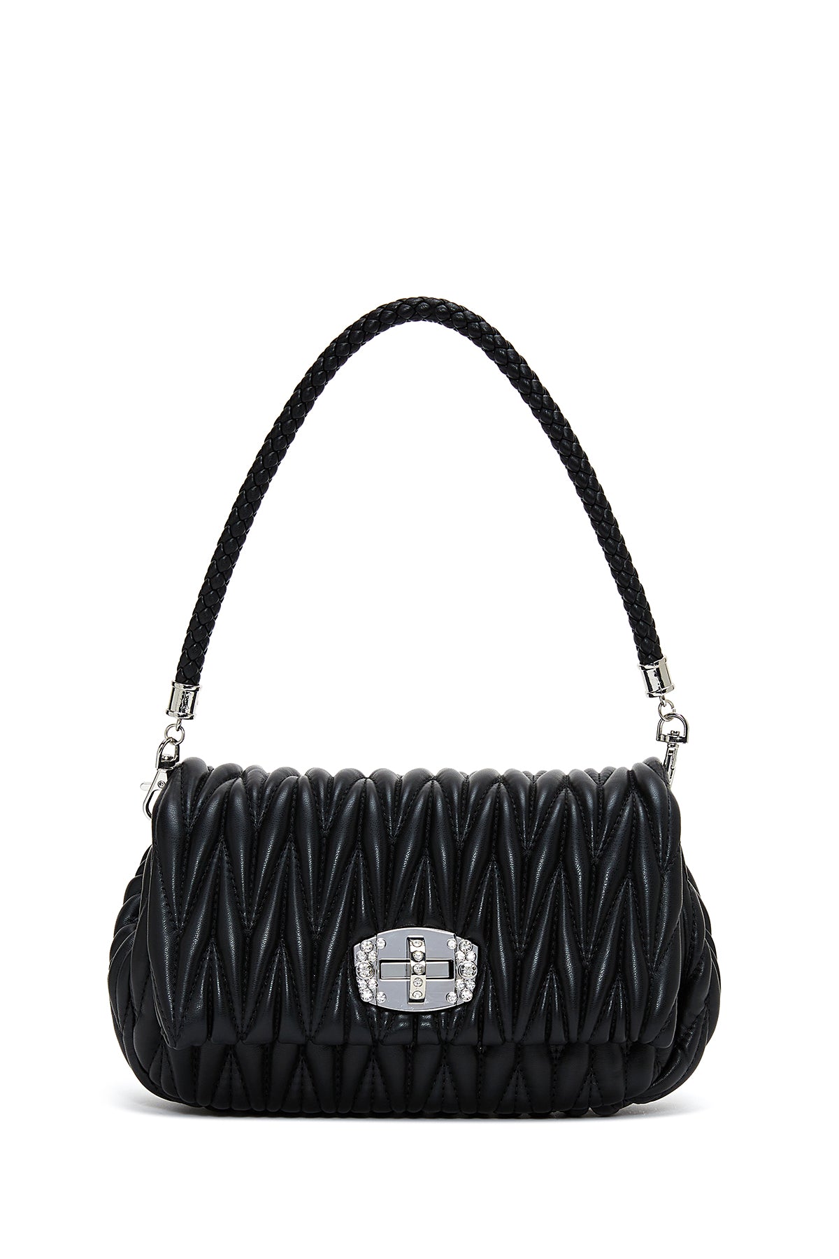Kadın Siyah Uzun Askılı Kapitone Omuz Çantası