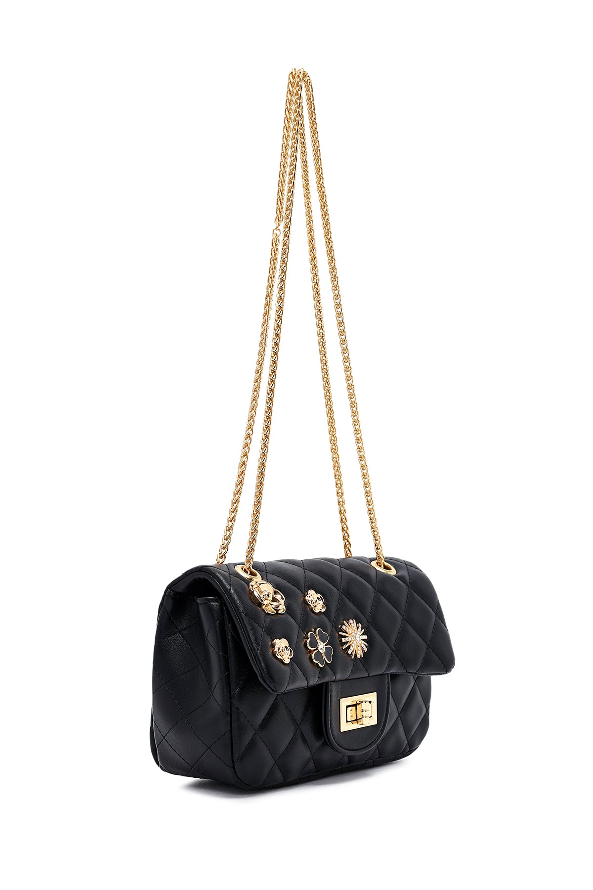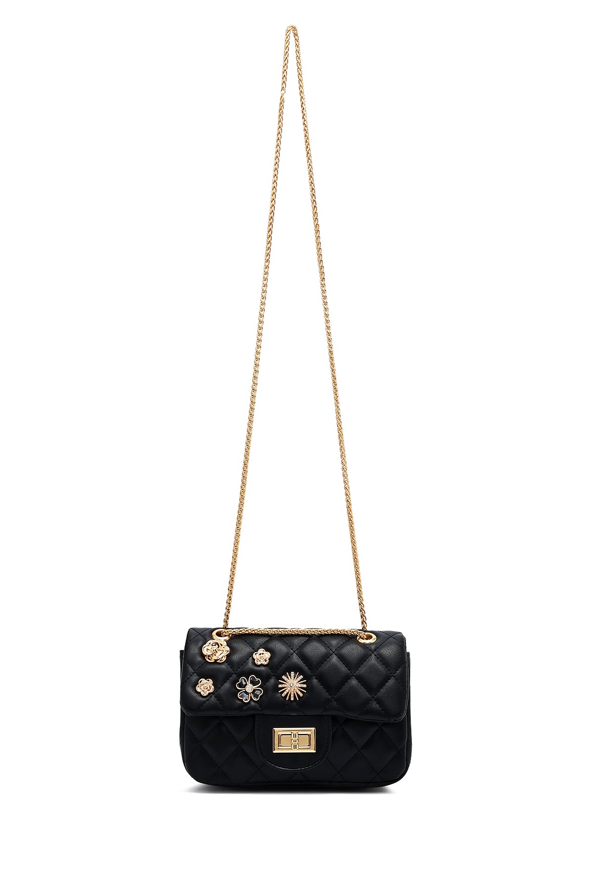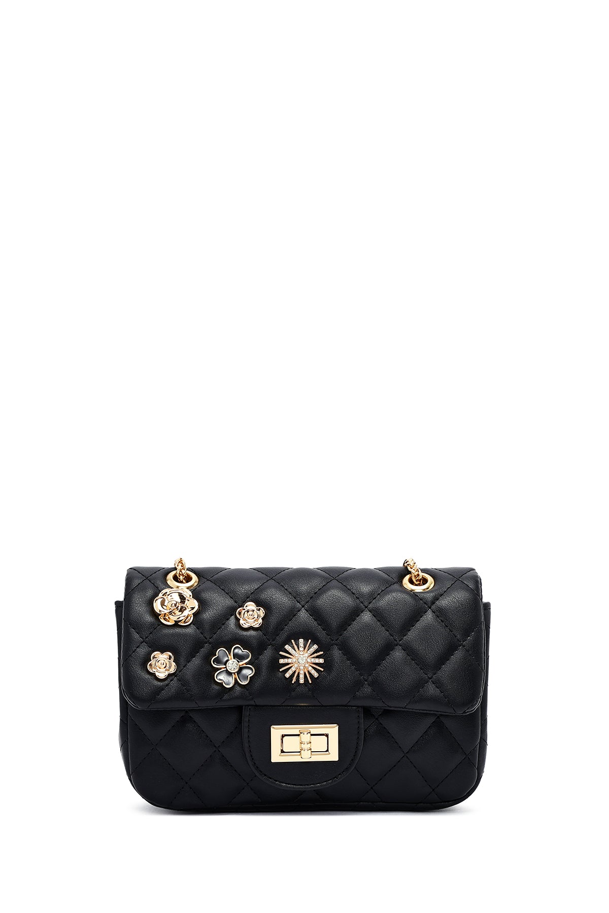 Kadın Siyah Uzun Askılı Kapitone Omuz Çantası