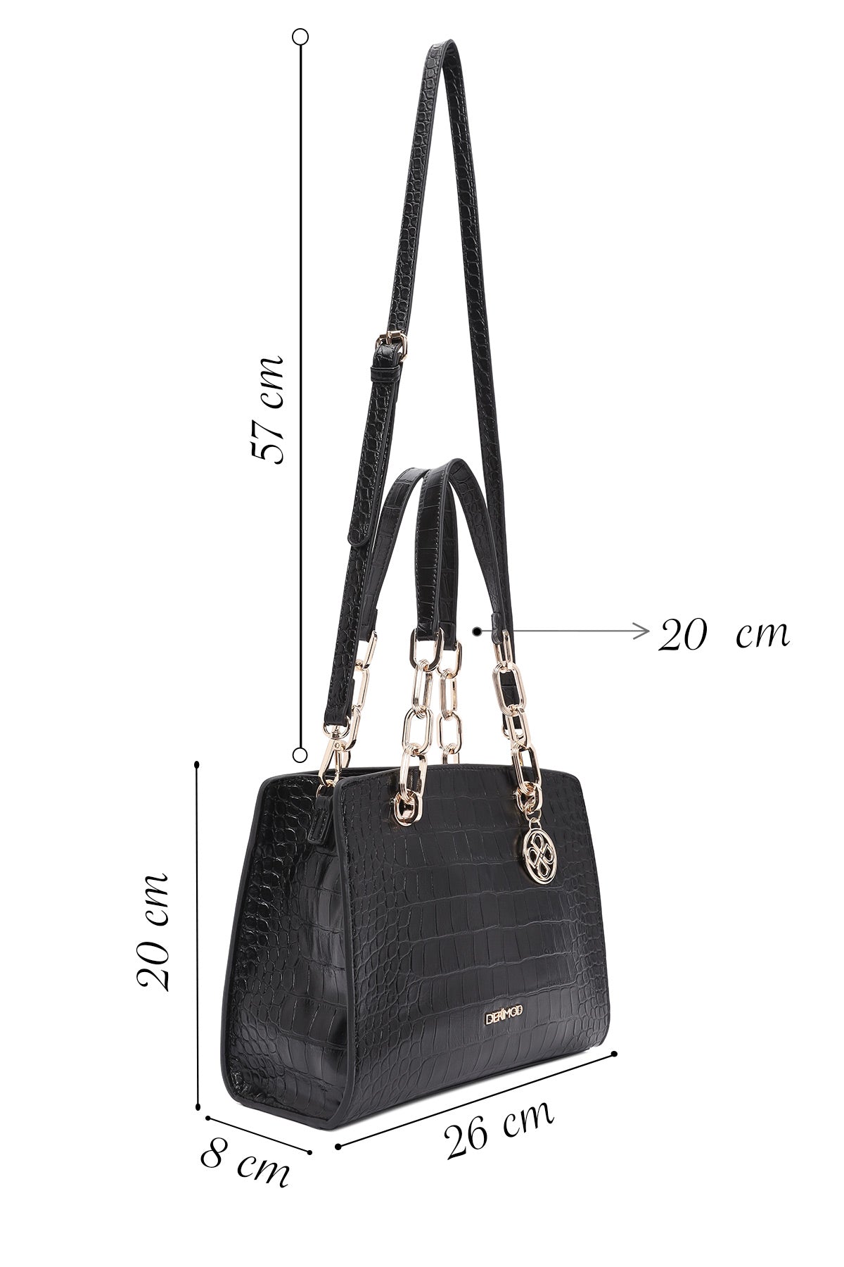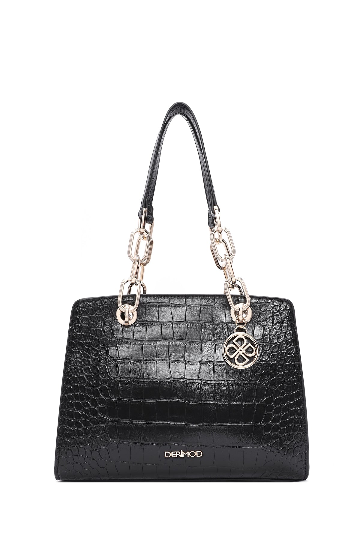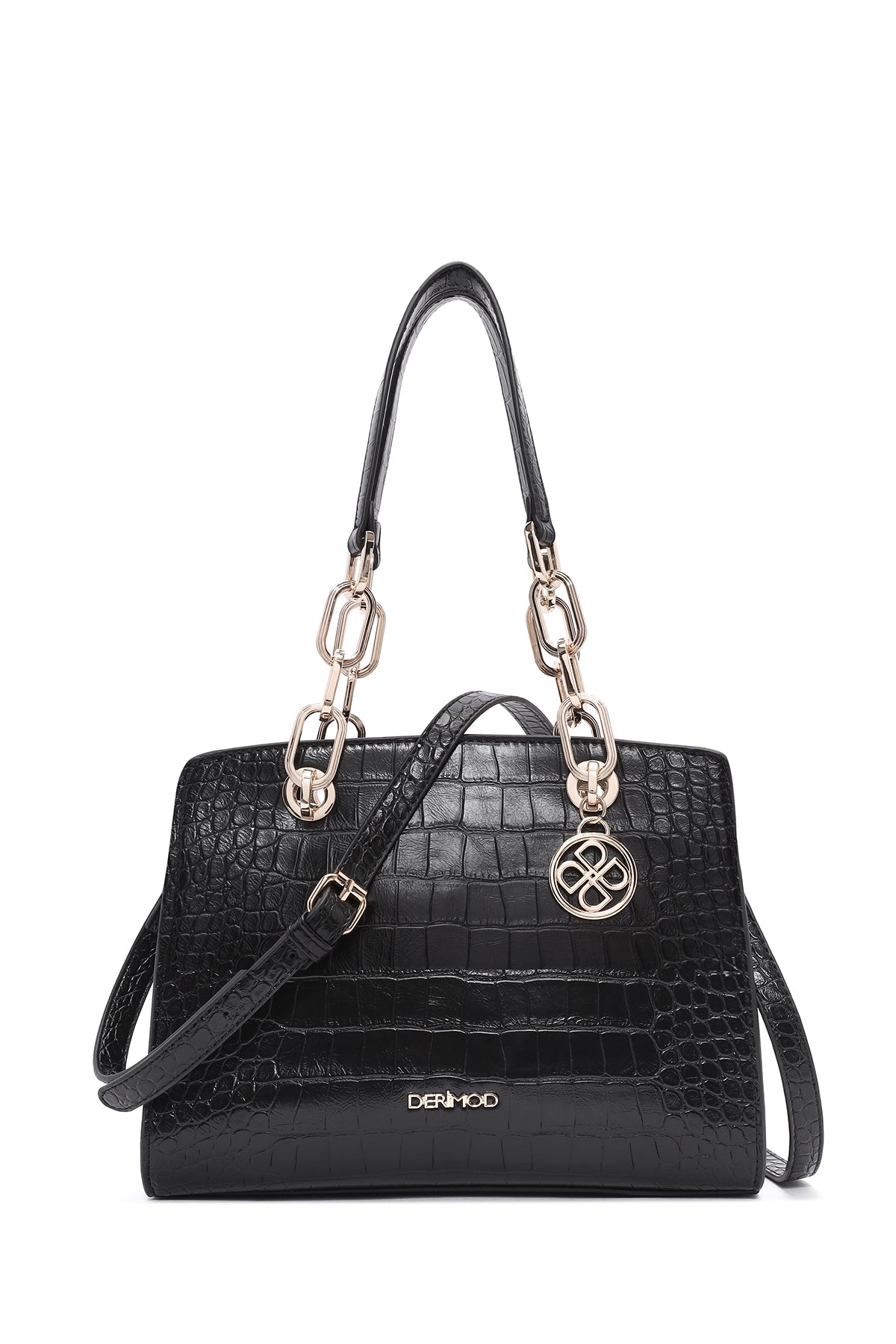 Kadın Siyah Uzun Askılı Kroko Desenli Klasik Omuz Çantası