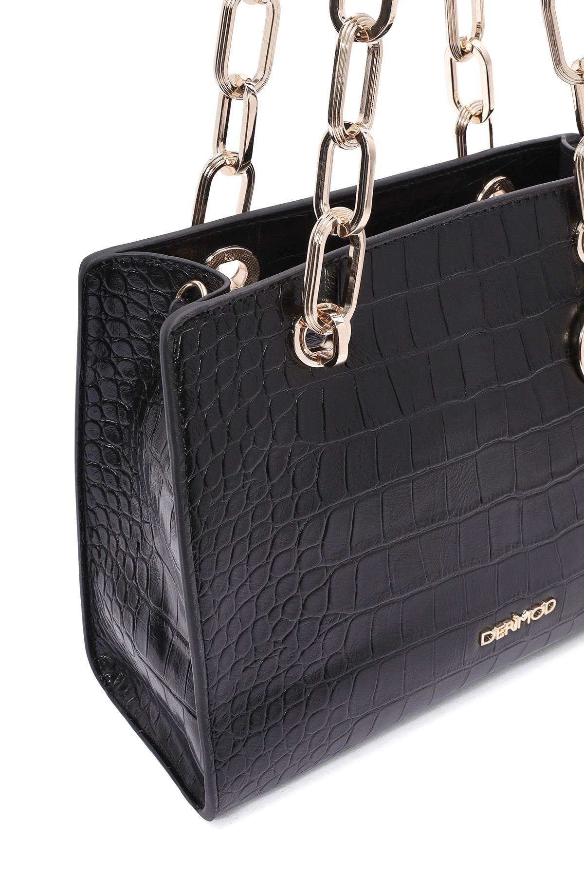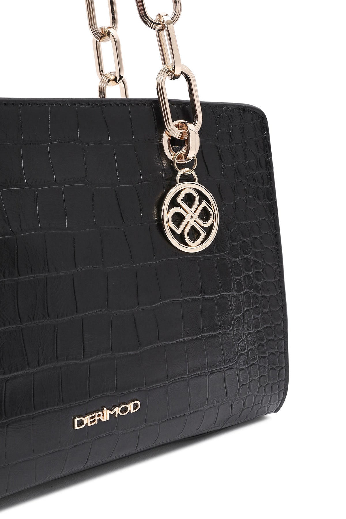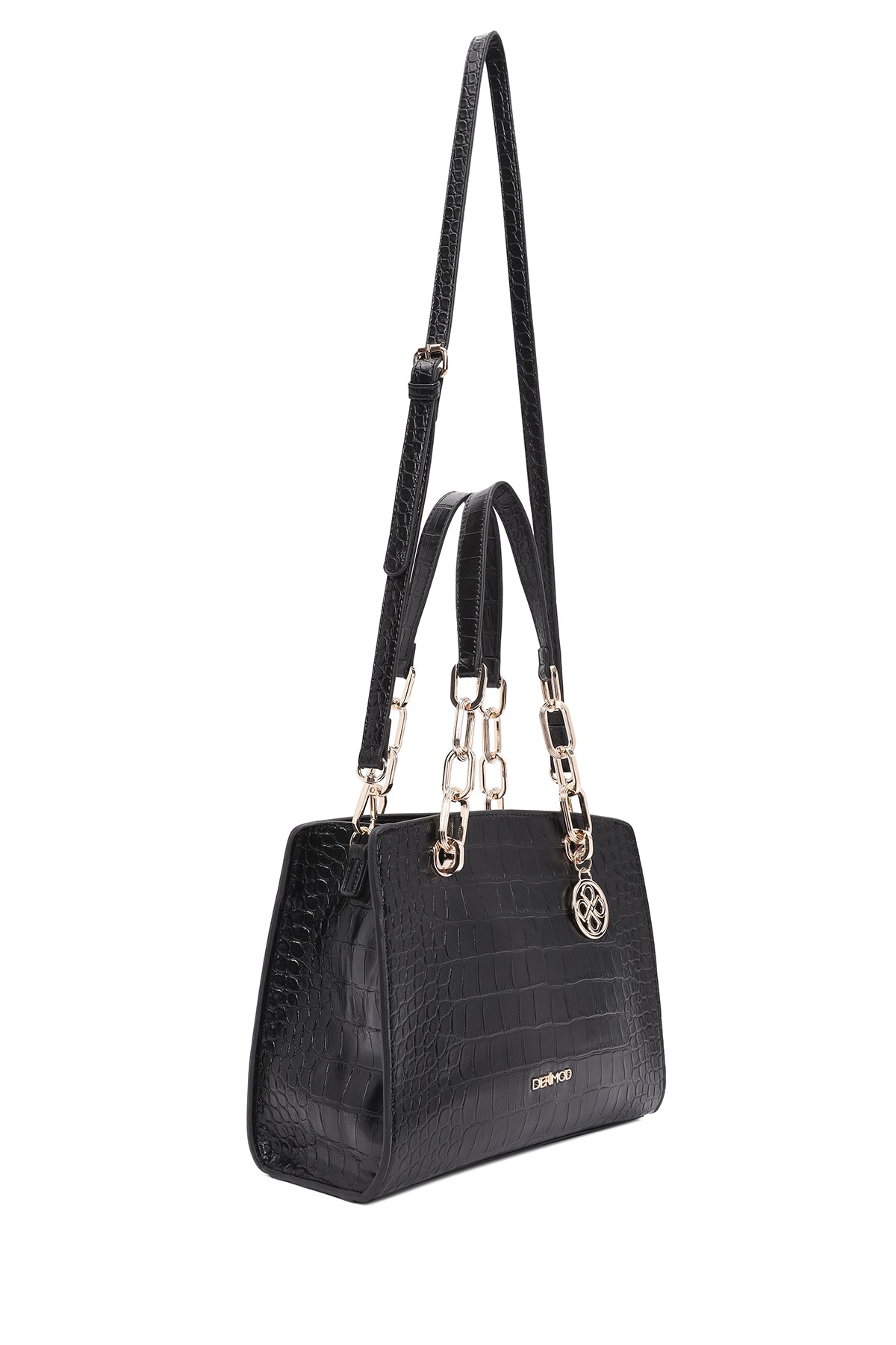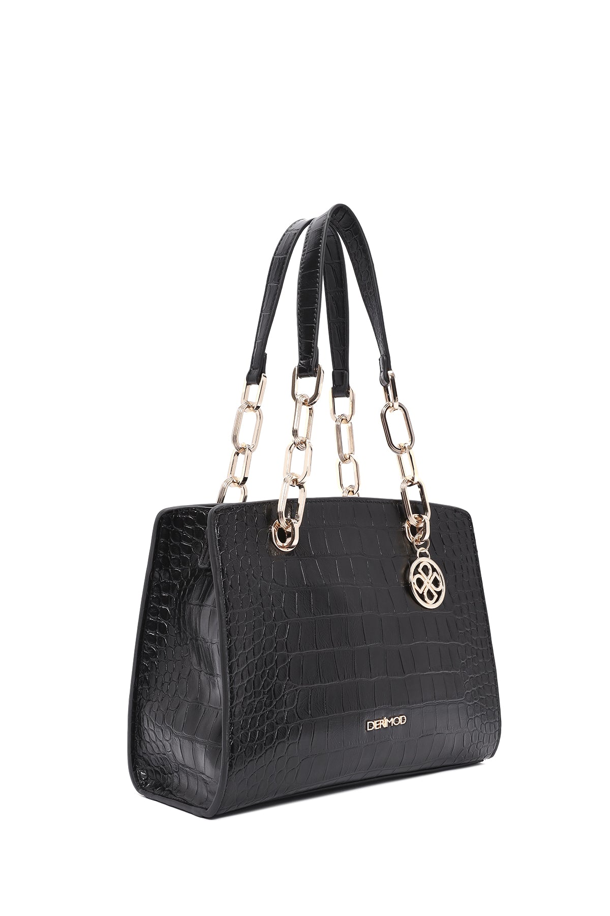 Kadın Siyah Uzun Askılı Kroko Desenli Klasik Omuz Çantası