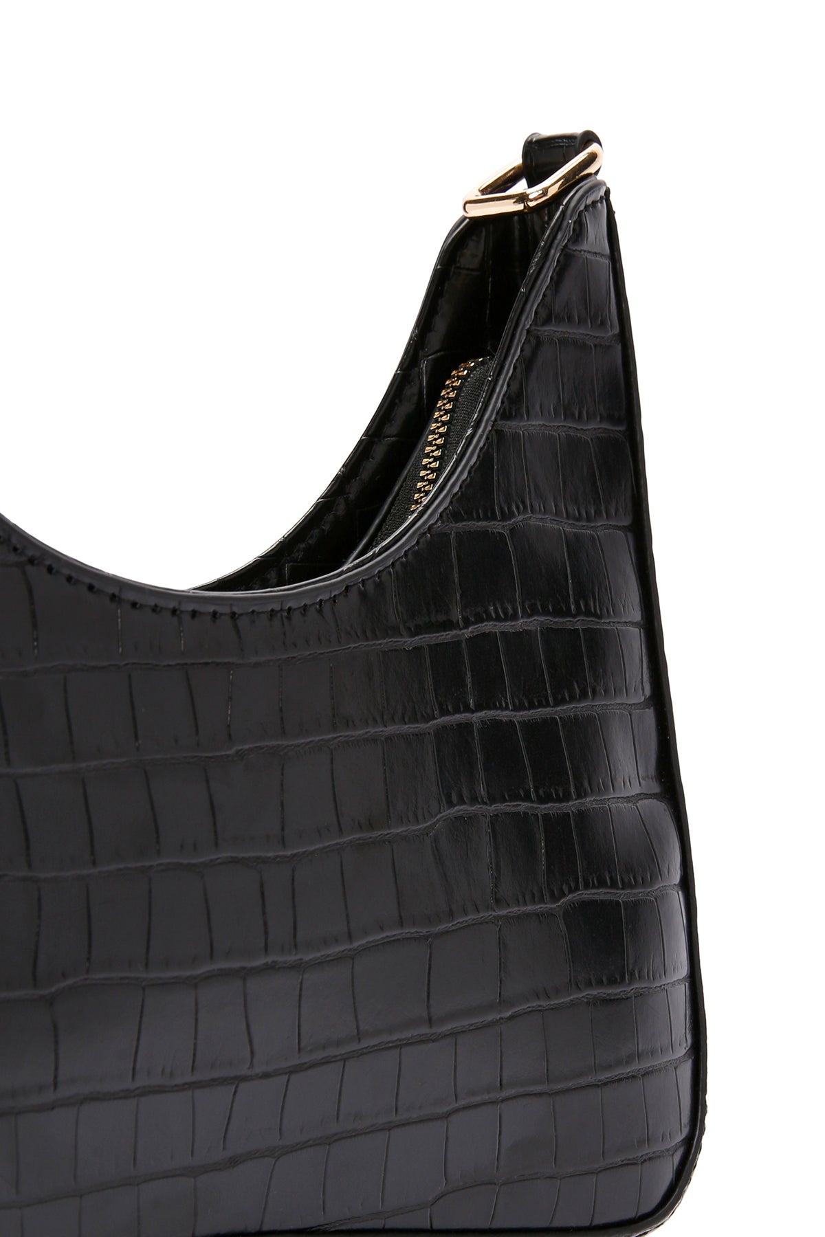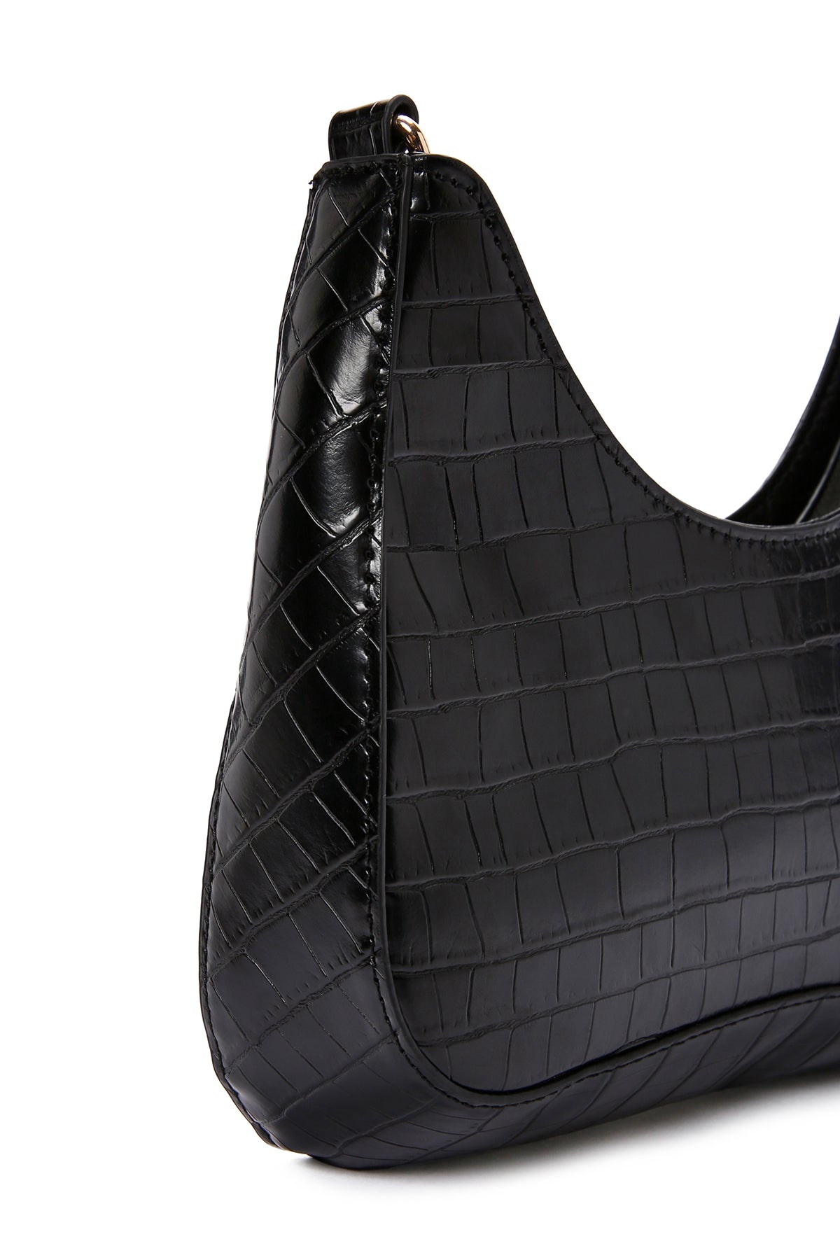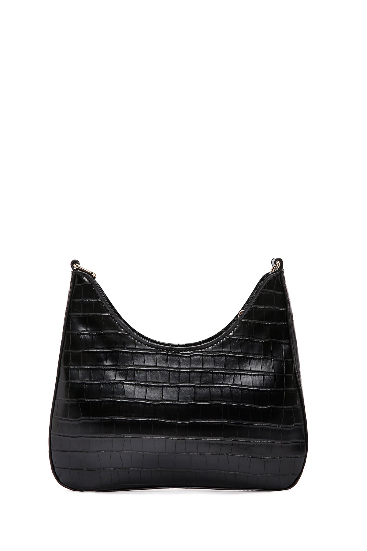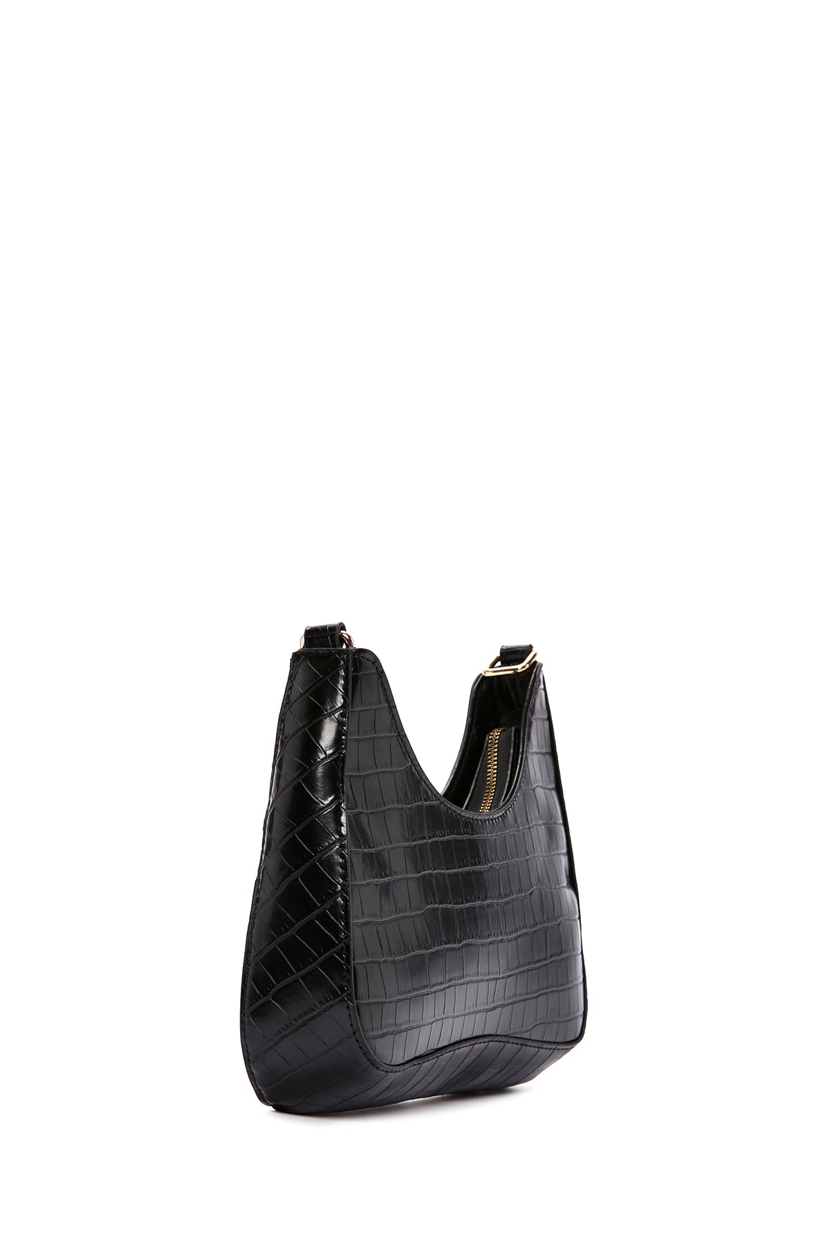 Kadın Siyah Uzun Askılı Kroko Desenli Kol Çantası, zarafeti ve modern tasarımı bir araya getiriyor. Kroko desenli yüzeyi, çantaya dikkat çekici bir hava katarken, gold renkli zincir askı detayı ile öne çıkar. İki boy askı seçeneği sayesinde çantayı hem omuzda hem de elde taşıma imkanı sunar. Günlük kullanım için ideal olan bu çanta, şıklığı ile her ortamda stilinizi tamamlayacak. Fonksiyonel yapısı ve estetik duruşuyla gardırobunuzun vazgeçilmez parçası olacak bu kol çantasını hemen keşfedin! Ürünün ebatları 25x5,5x14 cm olup, uzun askı uzunluğu 74 cm ve kısa askı uzunluğu 29 cm'dir. Ürünün kodu: 23WBD2644E3 11