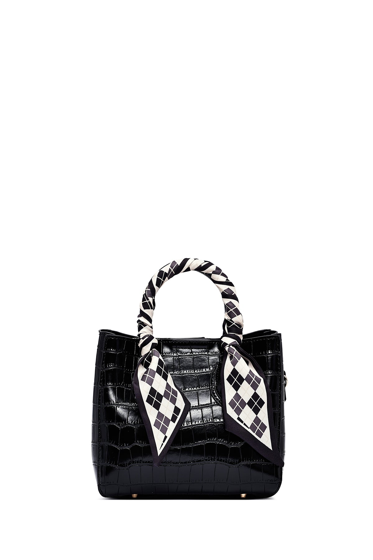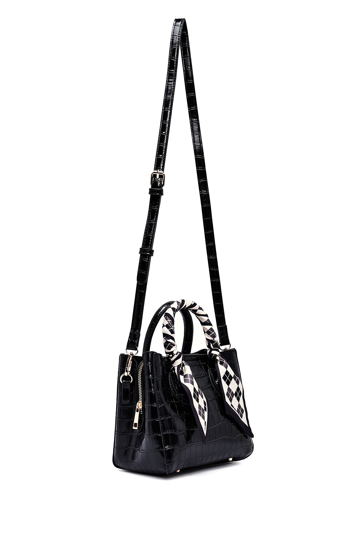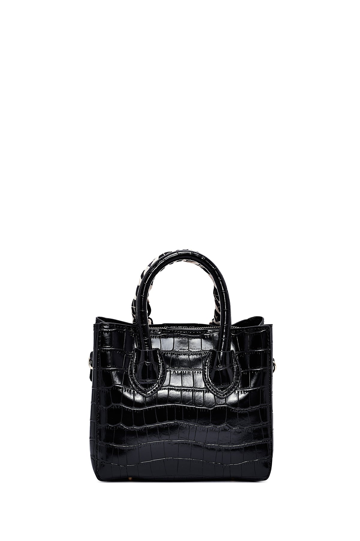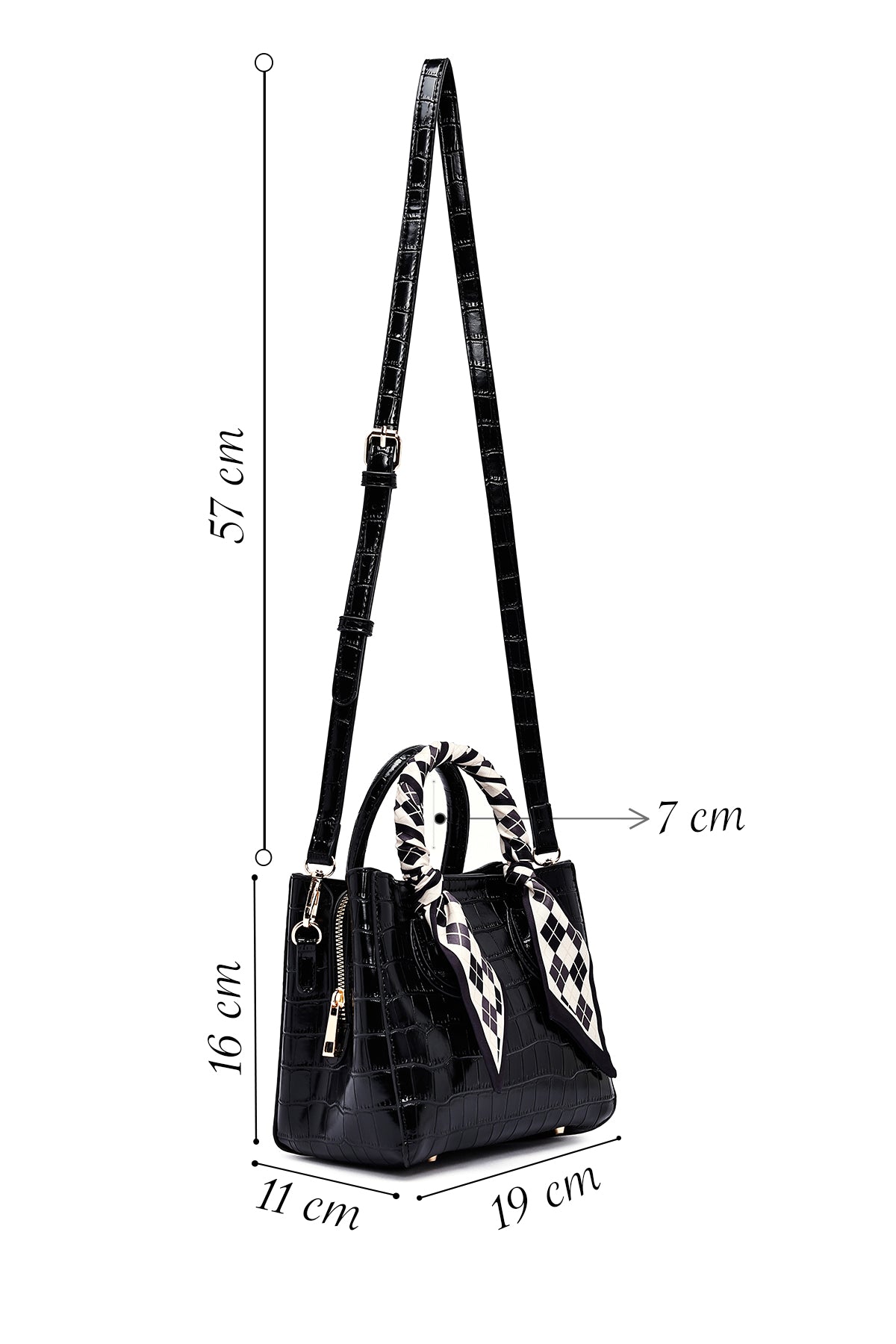 Kadın Siyah Uzun Askılı Kroko Desenli Mini Kol Çantası