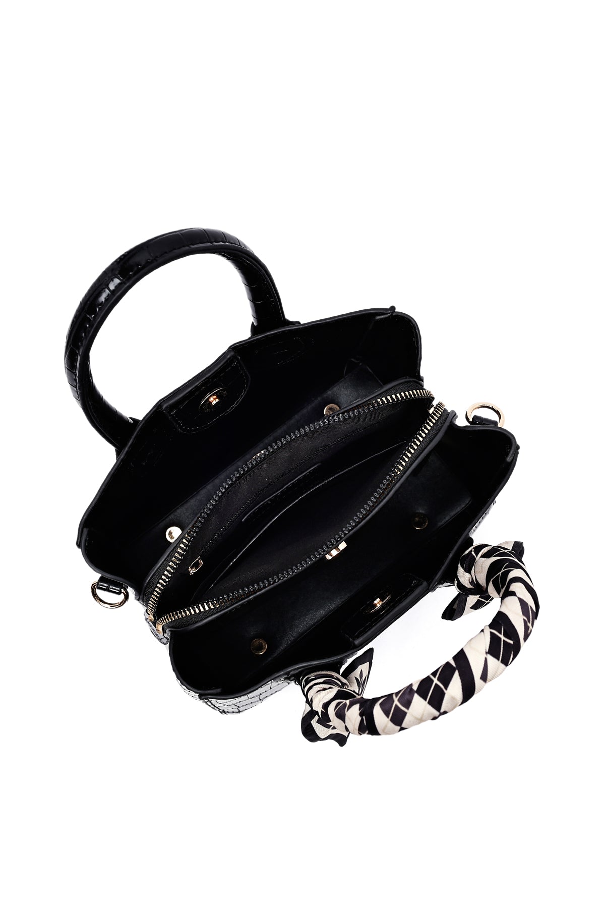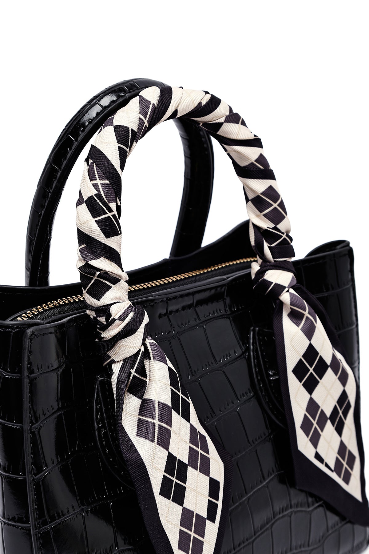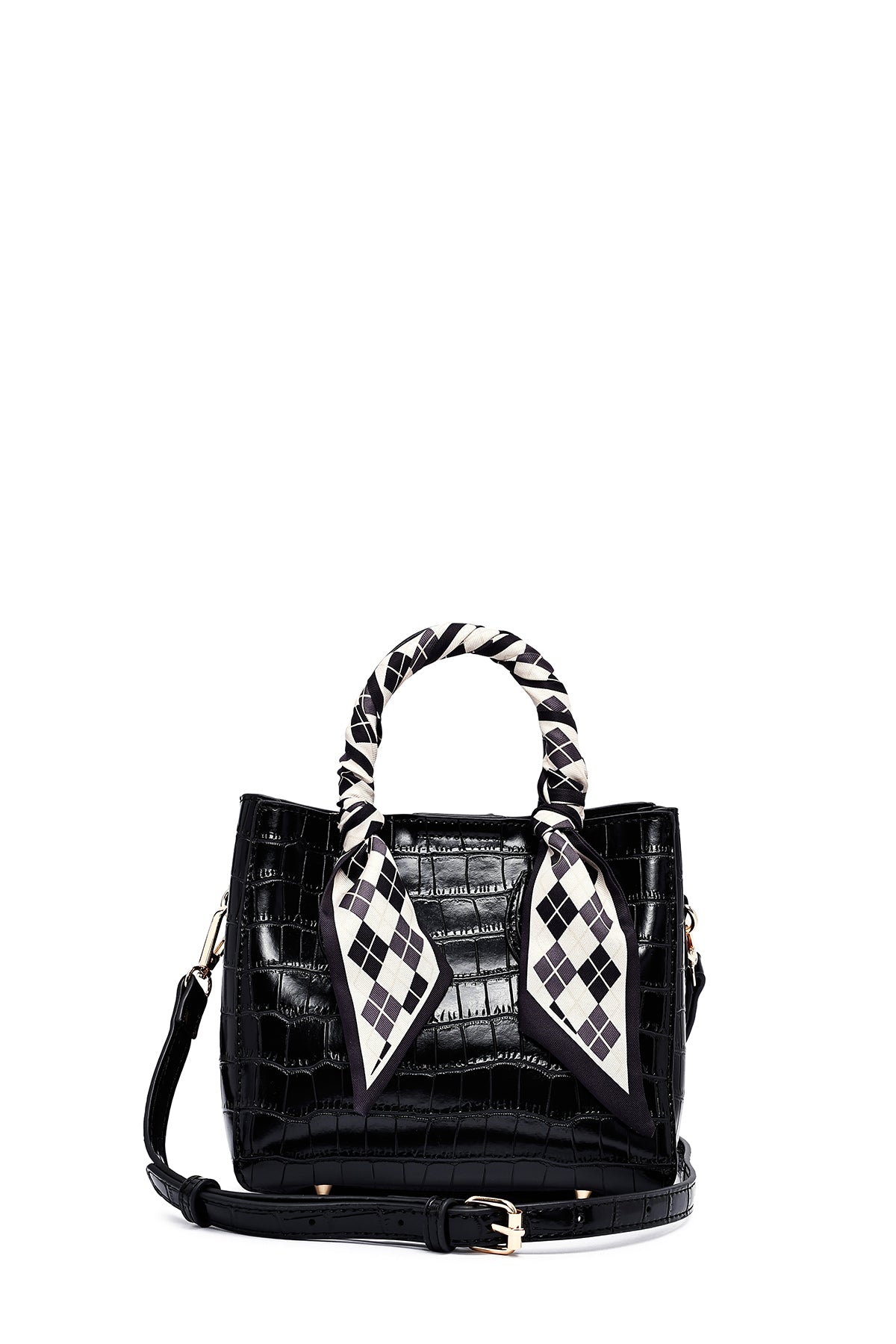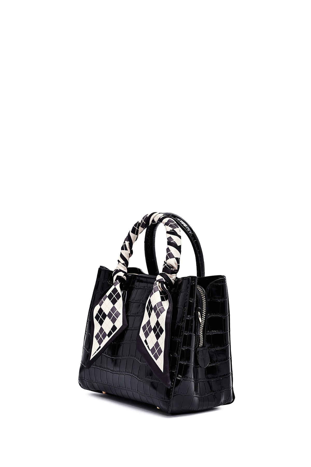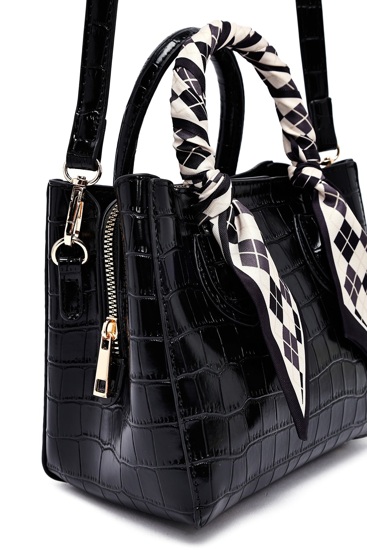 Kadın Siyah Uzun Askılı Kroko Desenli Mini Kol Çantası