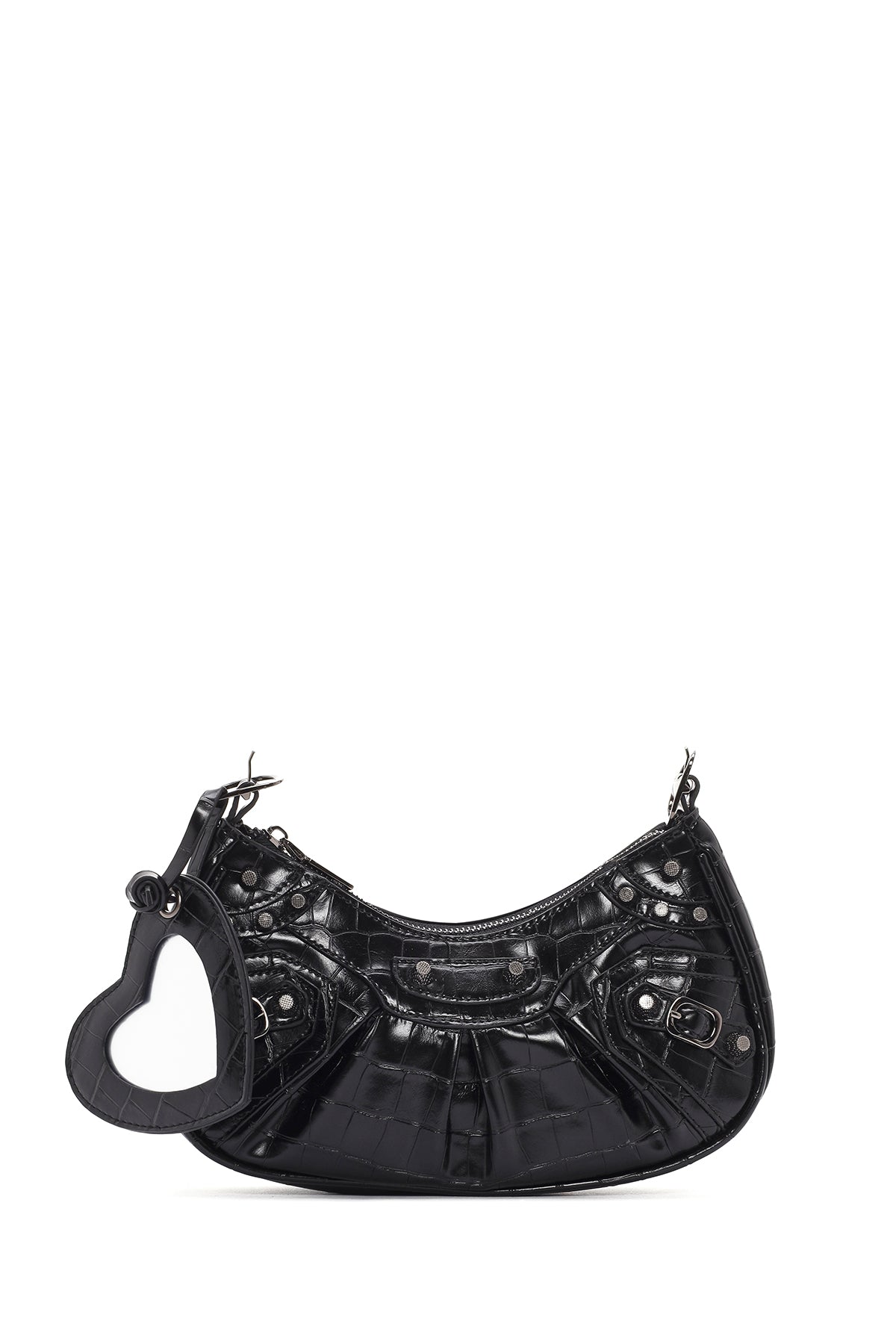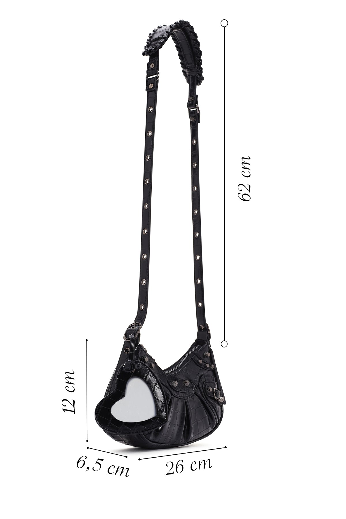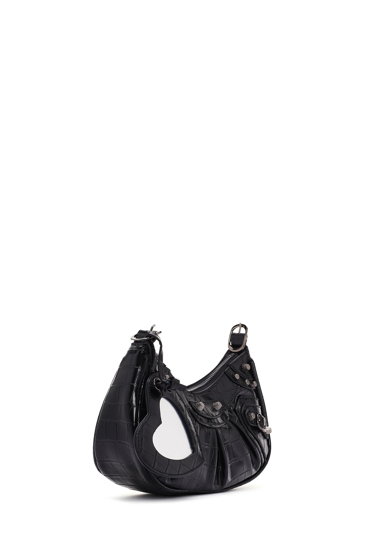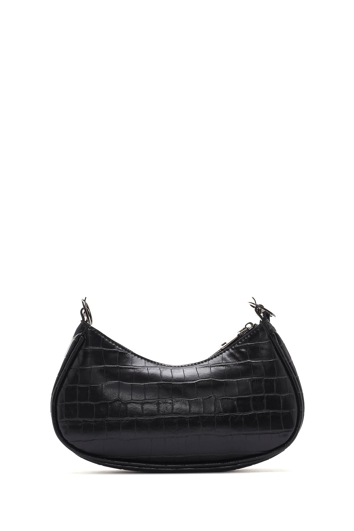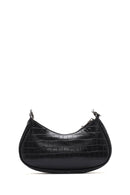 Kadın Siyah Uzun Askılı Kroko Desenli Omuz Çantası