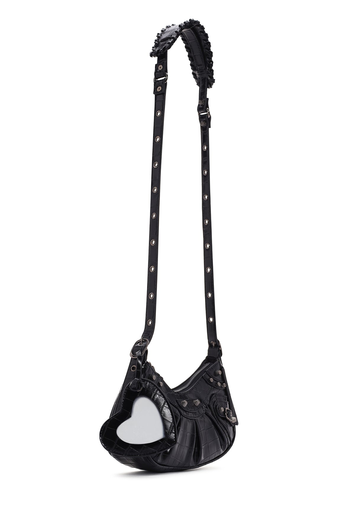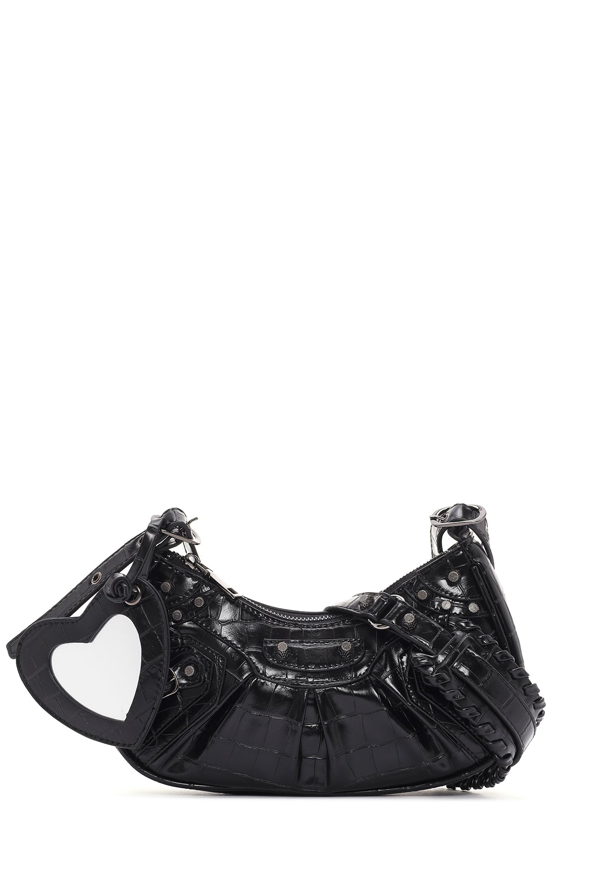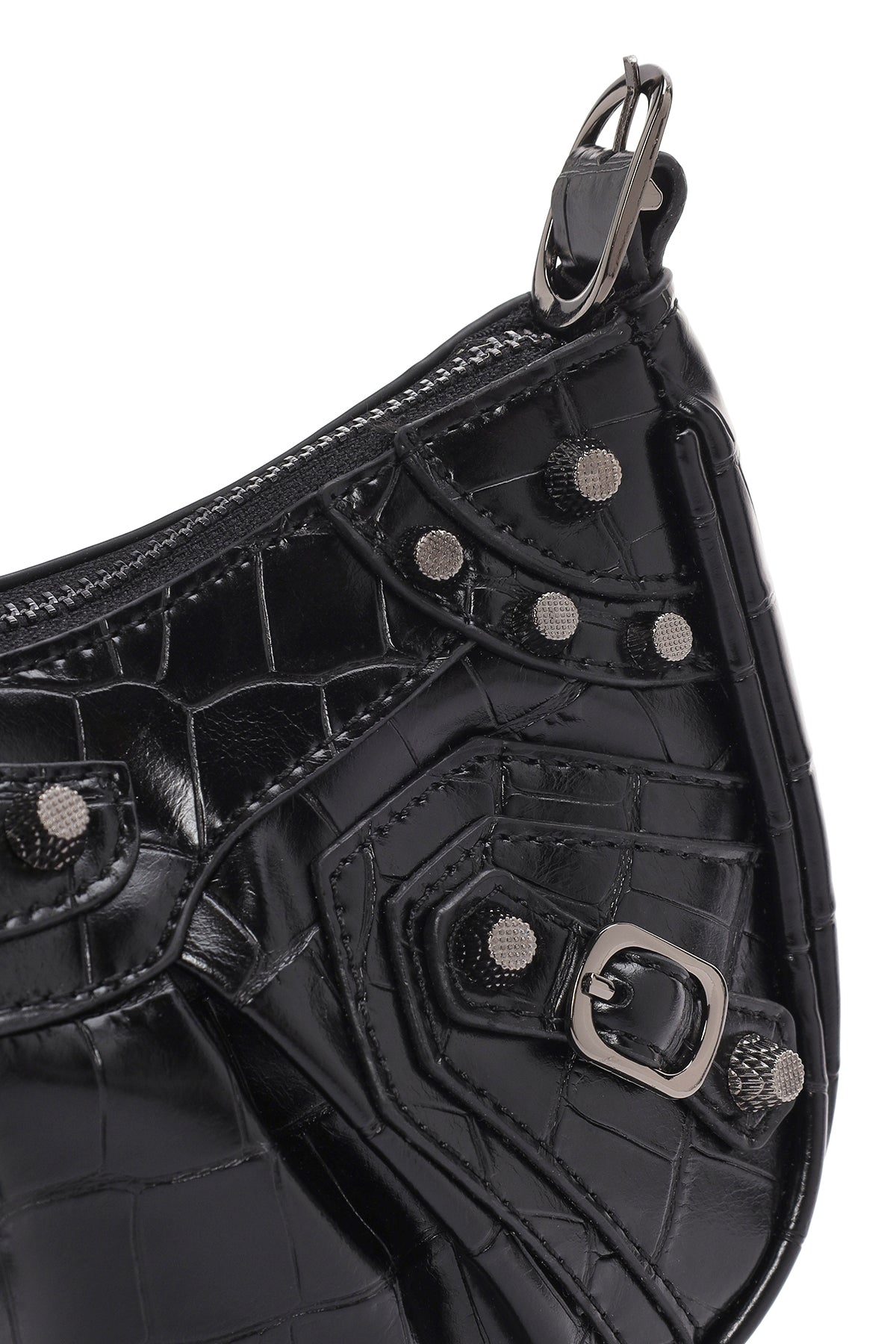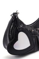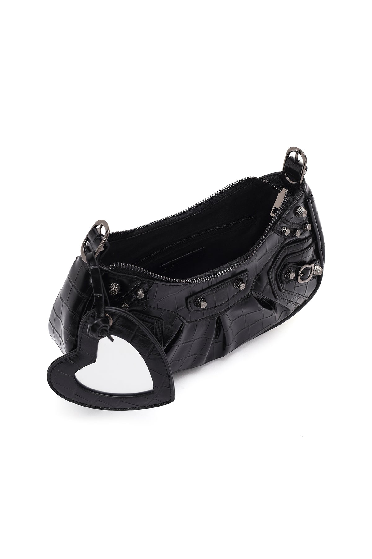 Kadın Siyah Uzun Askılı Kroko Desenli Omuz Çantası