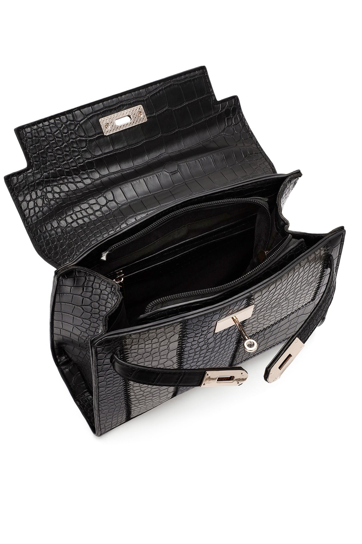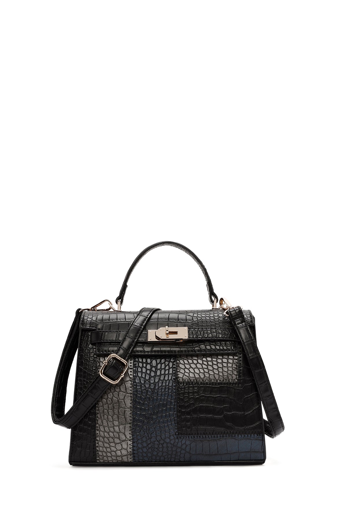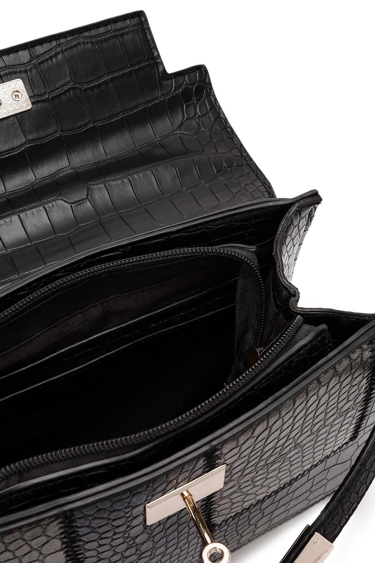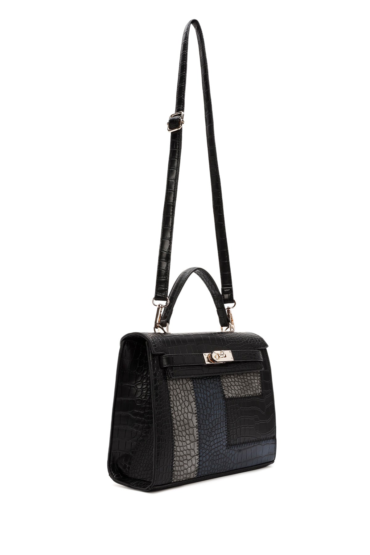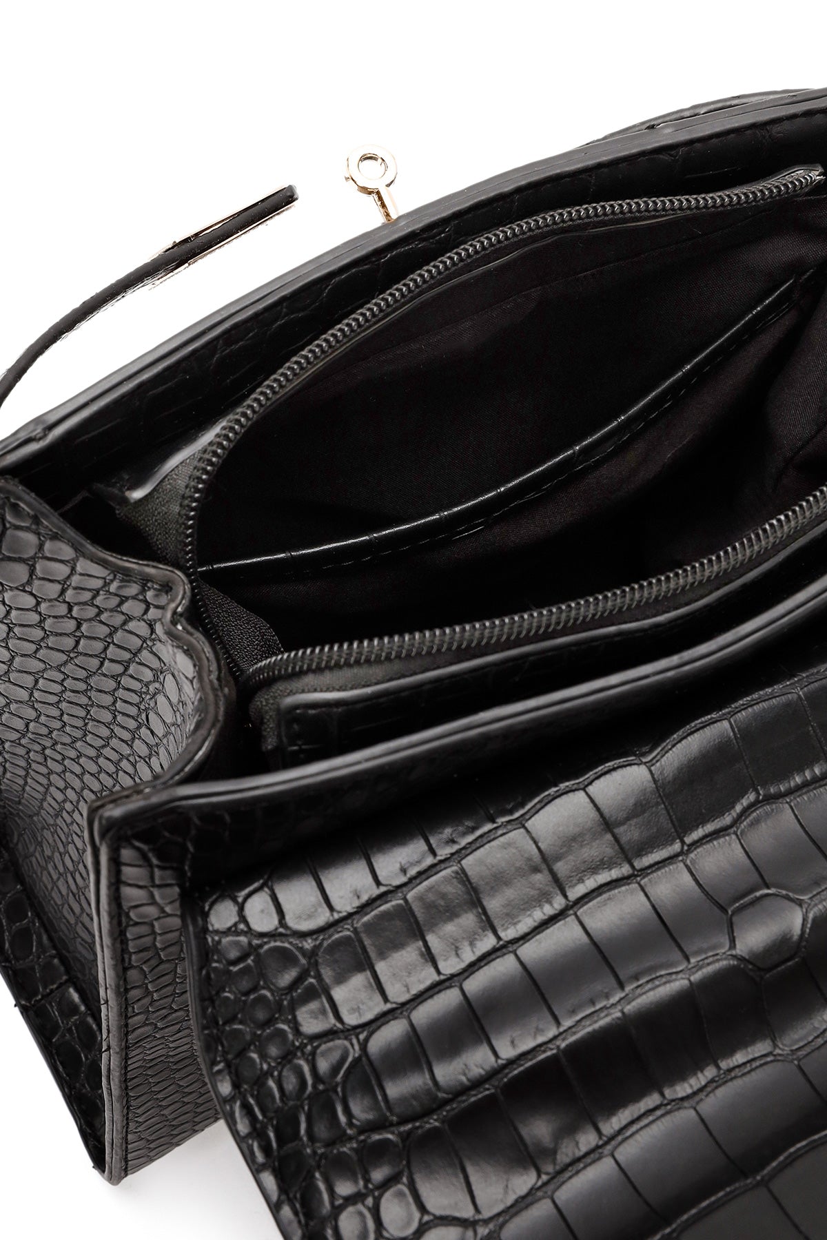 Kadın Siyah Uzun Askılı Kroko Kol Çantası