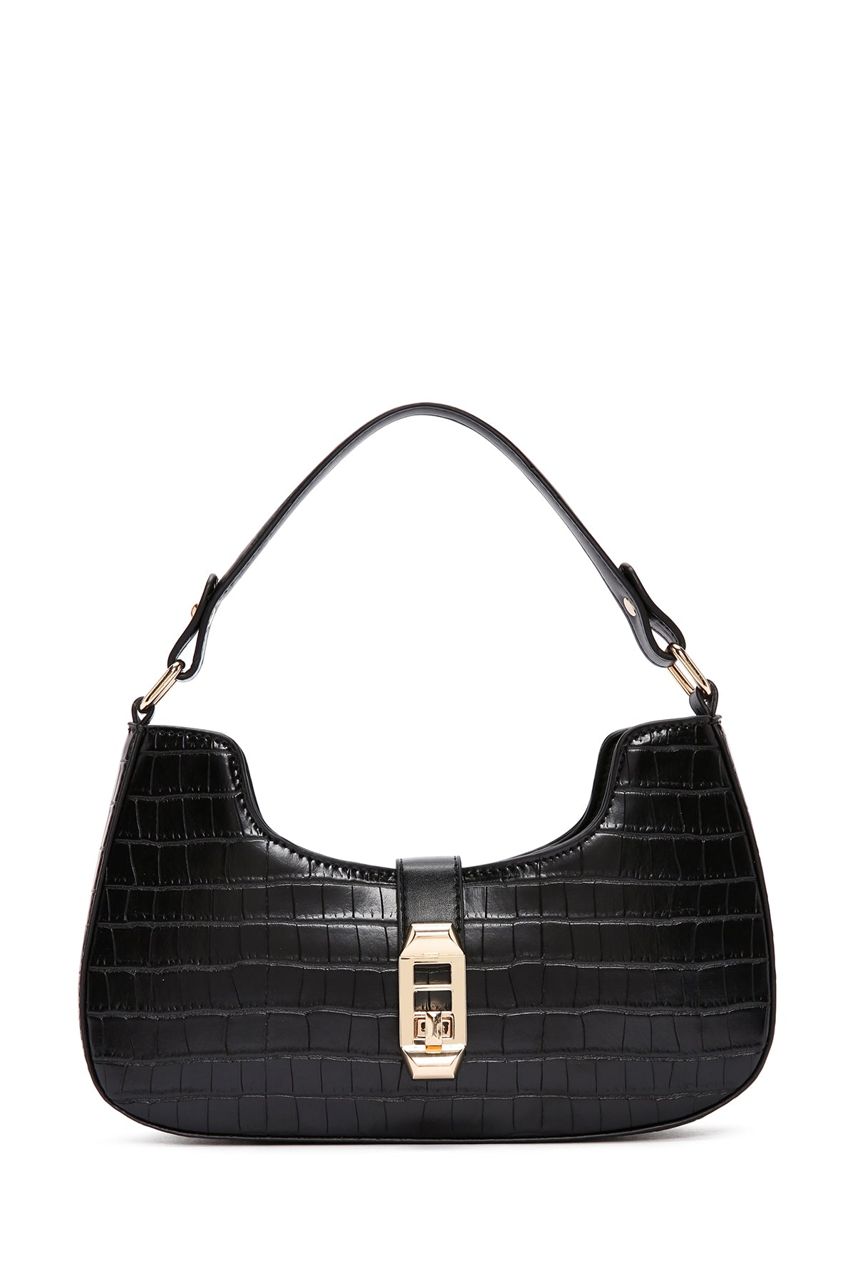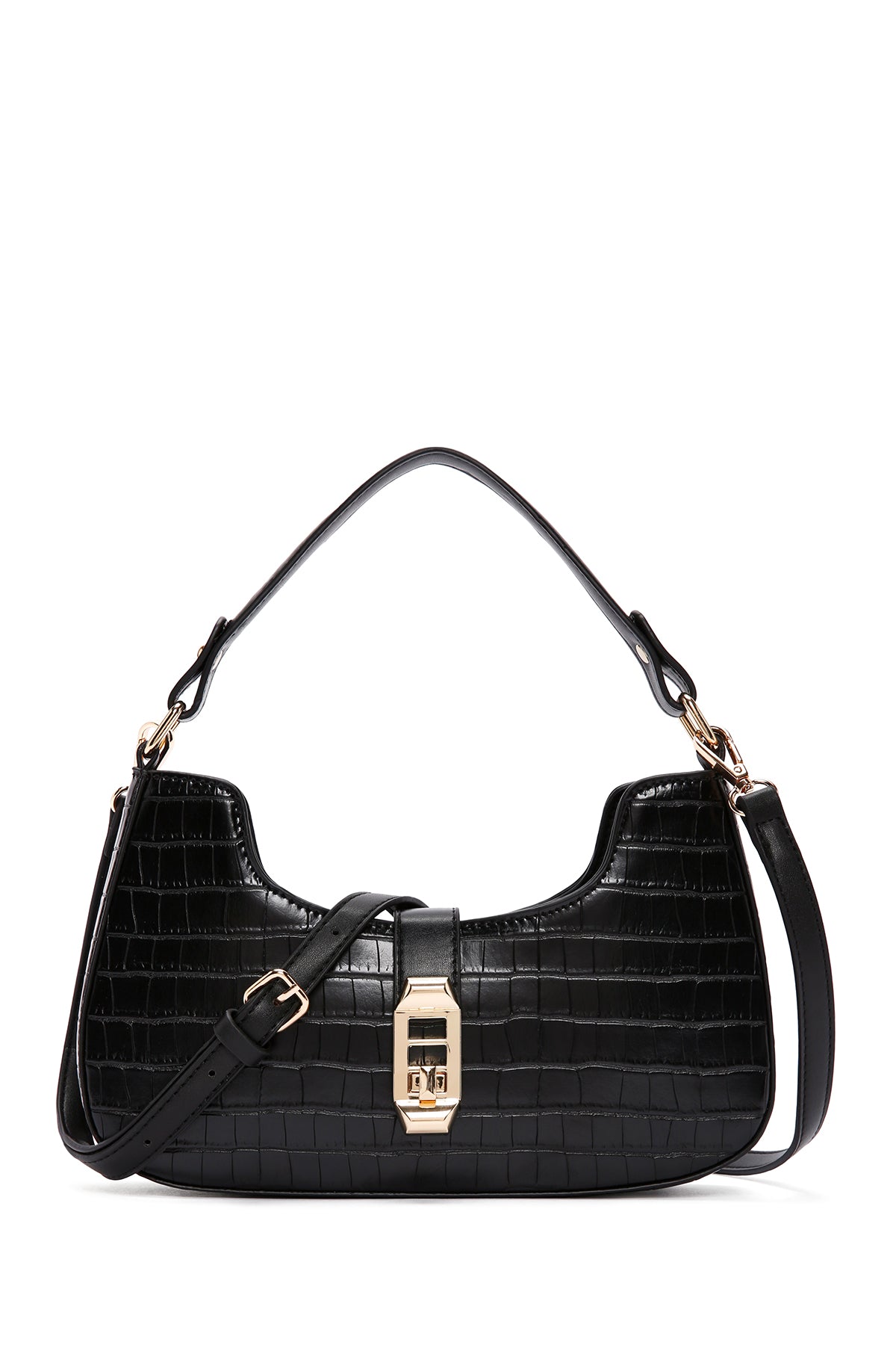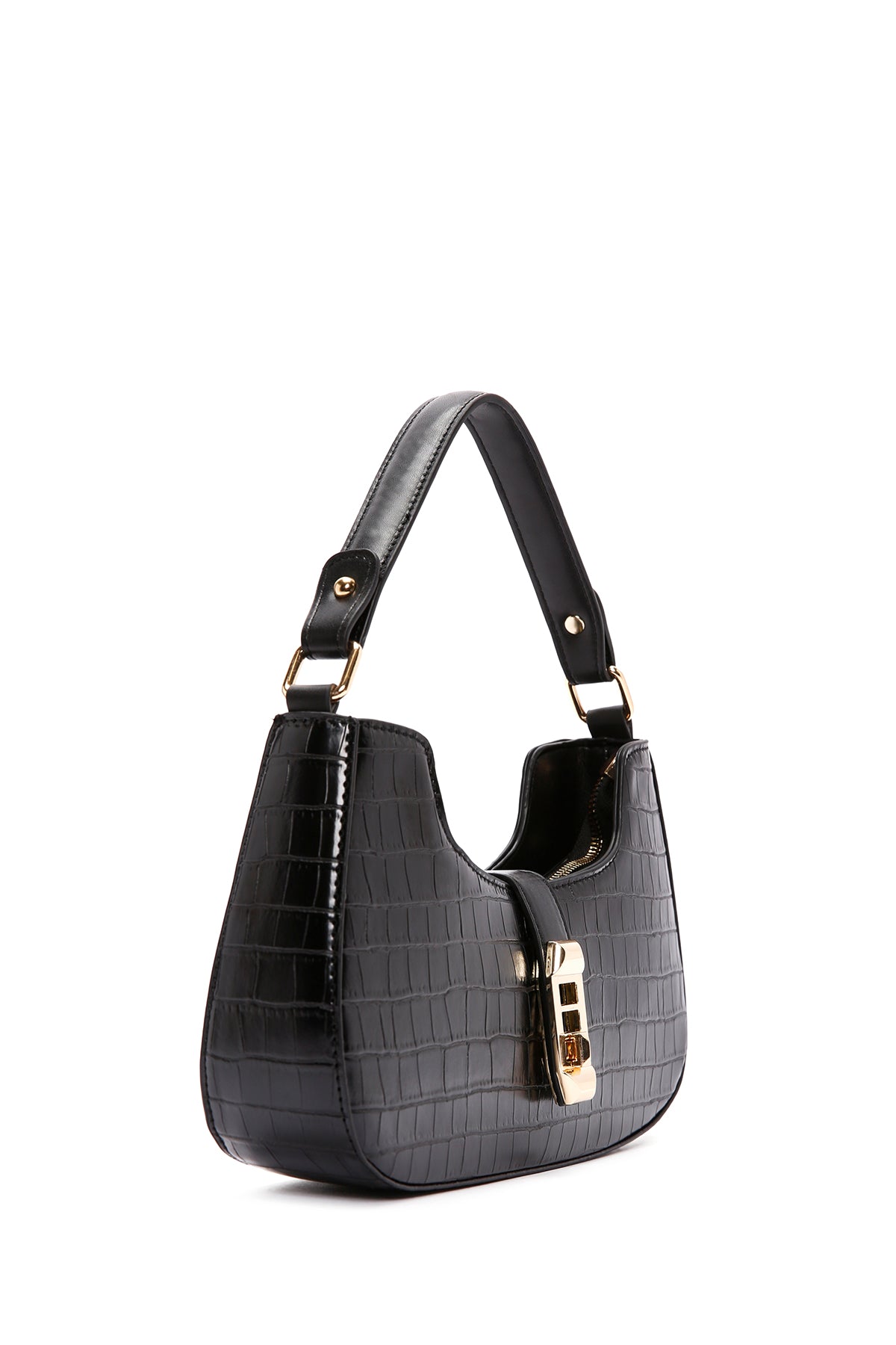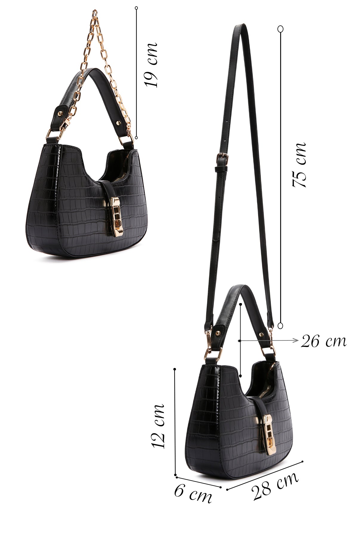 Kadın Siyah Uzun Askılı Kroko Kol Çantası