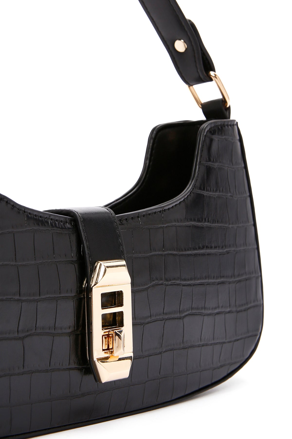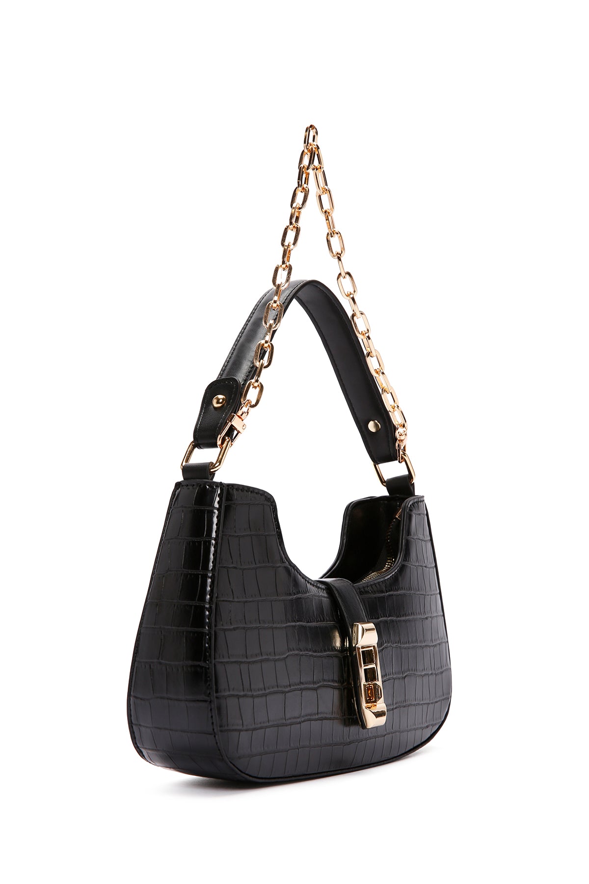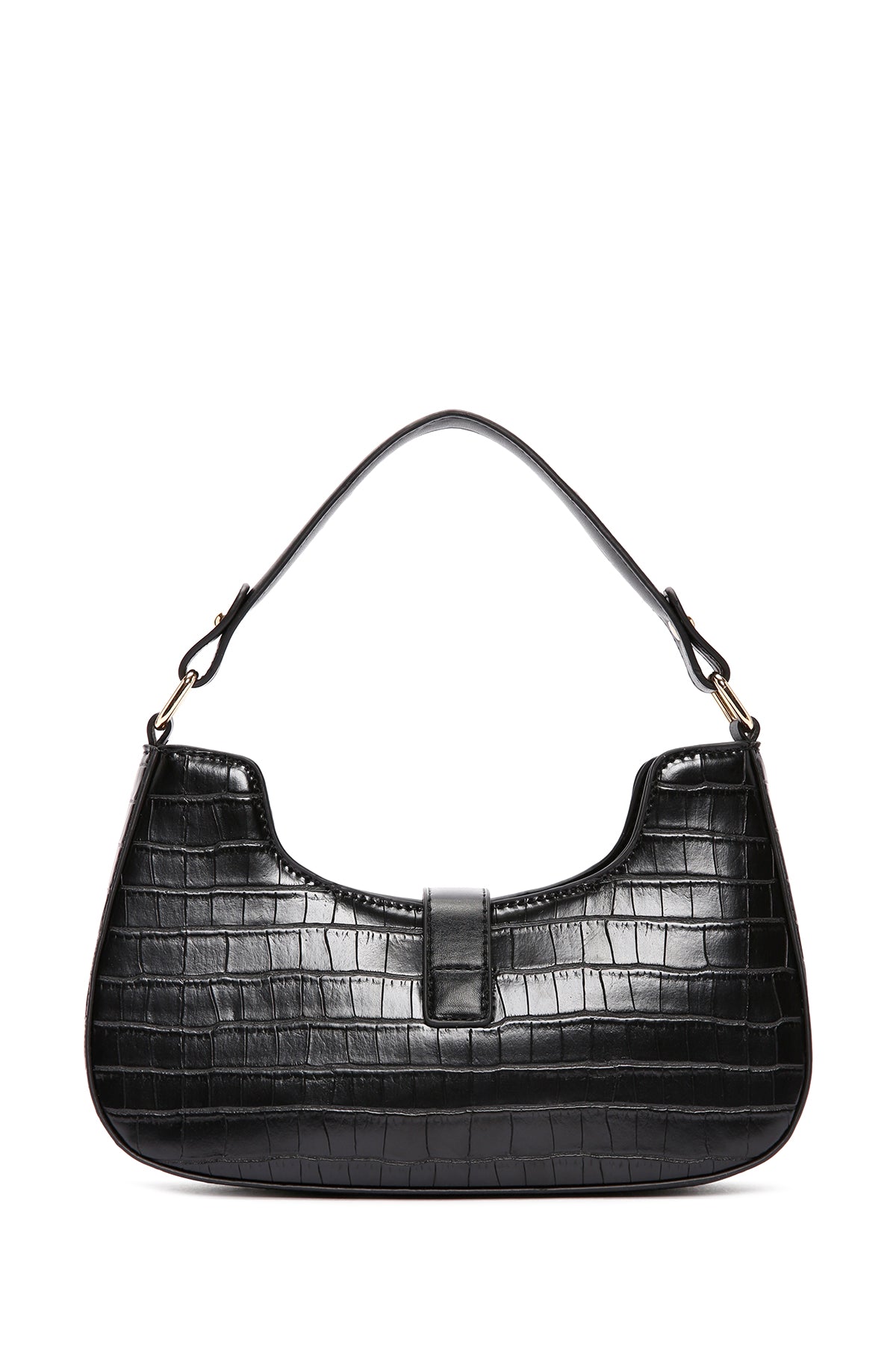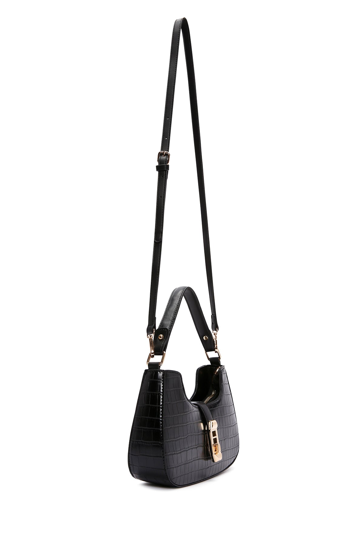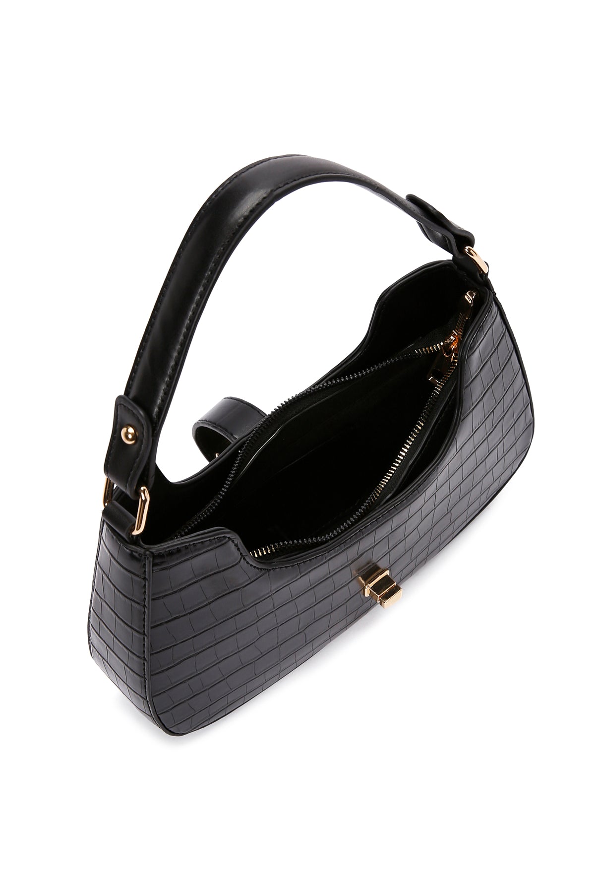 Kadın Siyah Uzun Askılı Kroko Kol Çantası