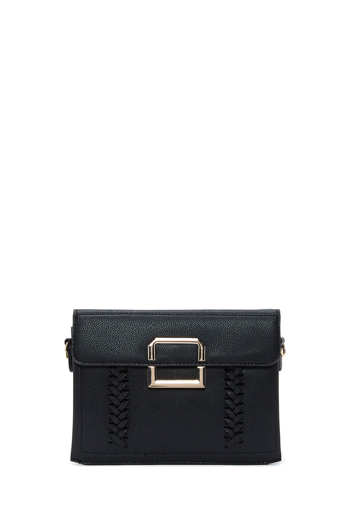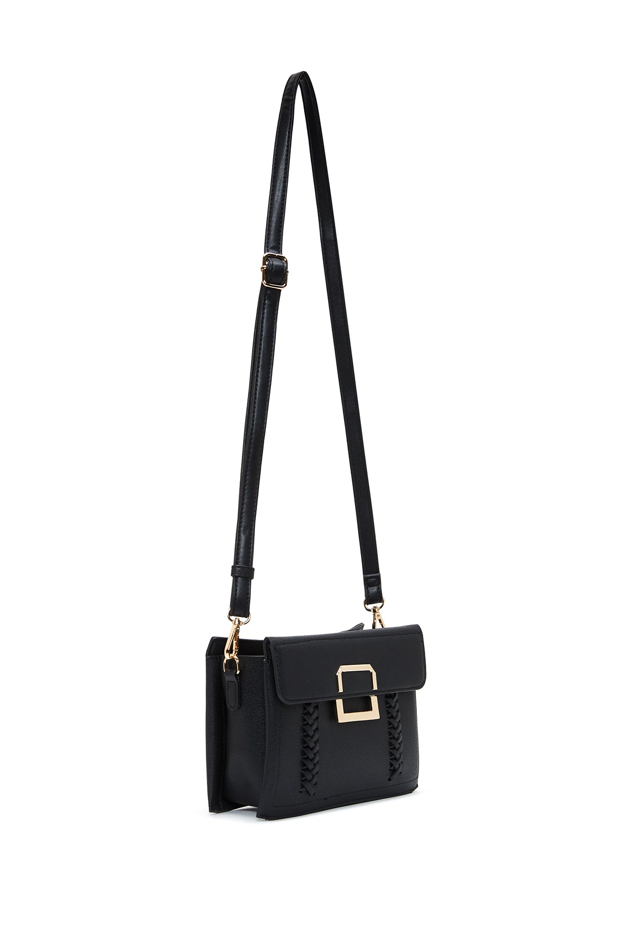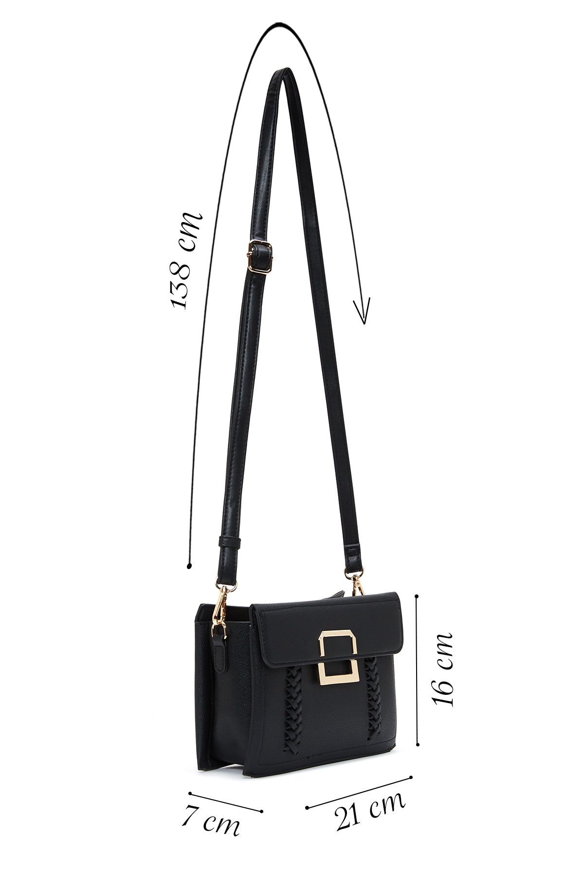 Kadın Siyah Uzun Askılı Örgü Detaylı Çapraz Çanta