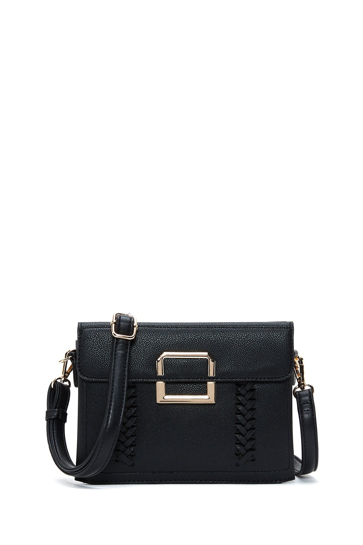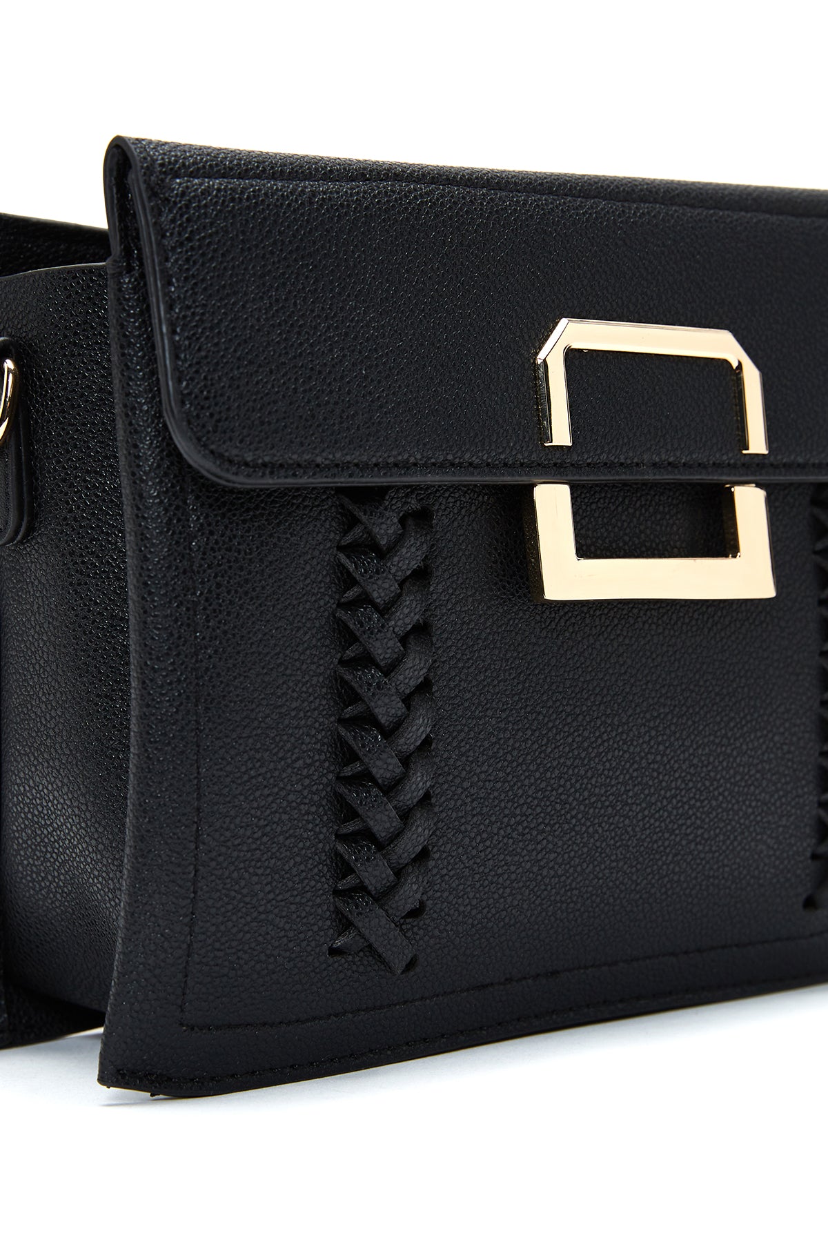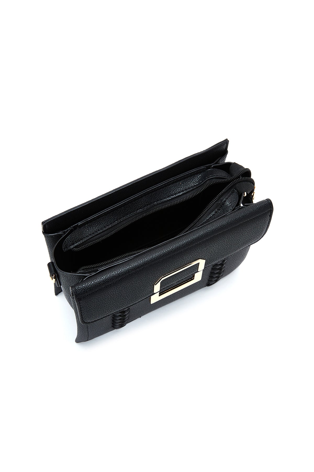 Kadın Siyah Uzun Askılı Örgü Detaylı Çapraz Çanta