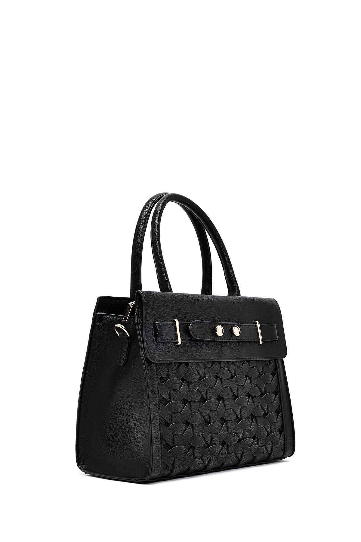 Kadın Siyah Uzun Askılı Örgü Klasik Kol Çantası