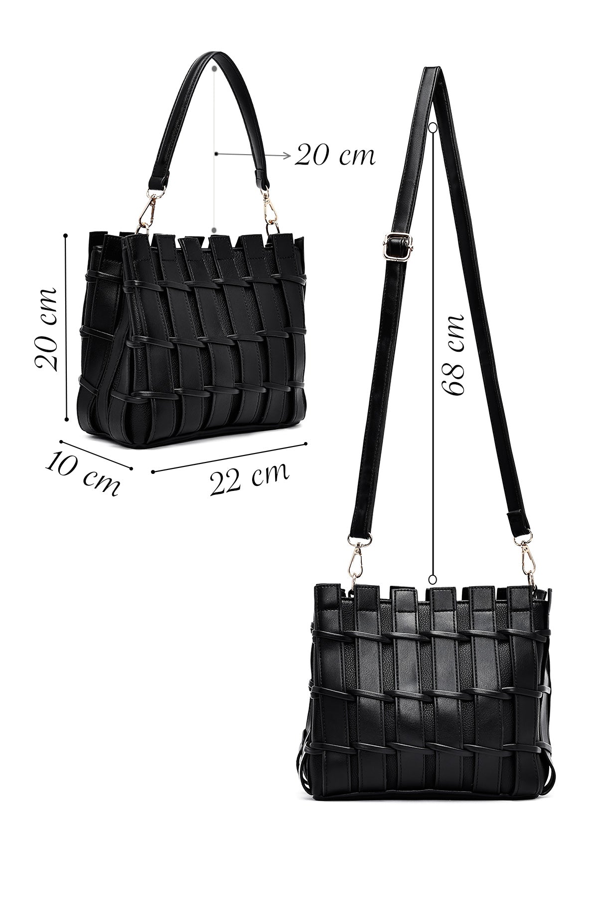 Kadın Siyah Uzun Askılı Örgü Kol Çantası