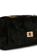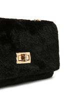 Kadın Siyah Uzun Askılı Peluş Çapraz Çanta