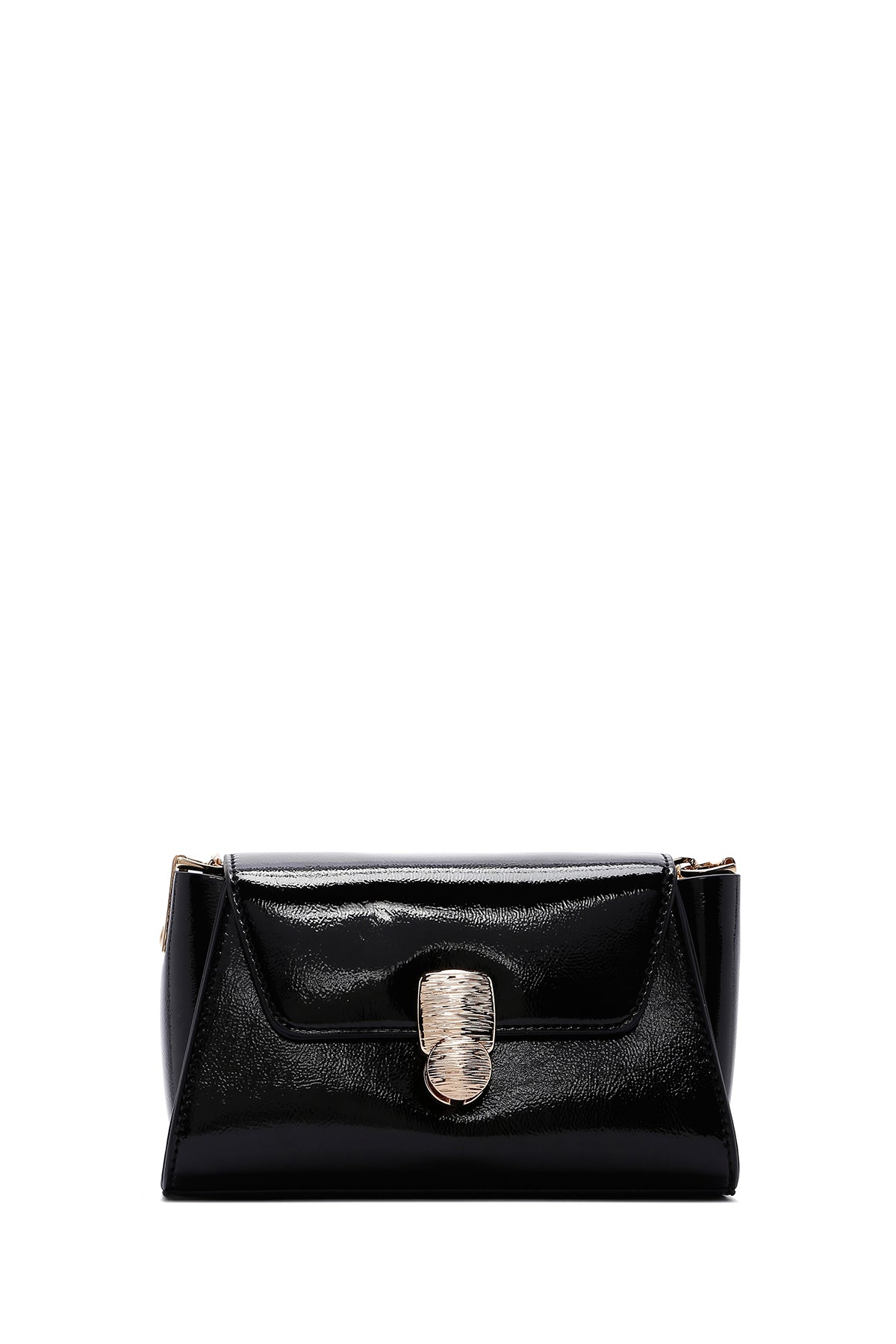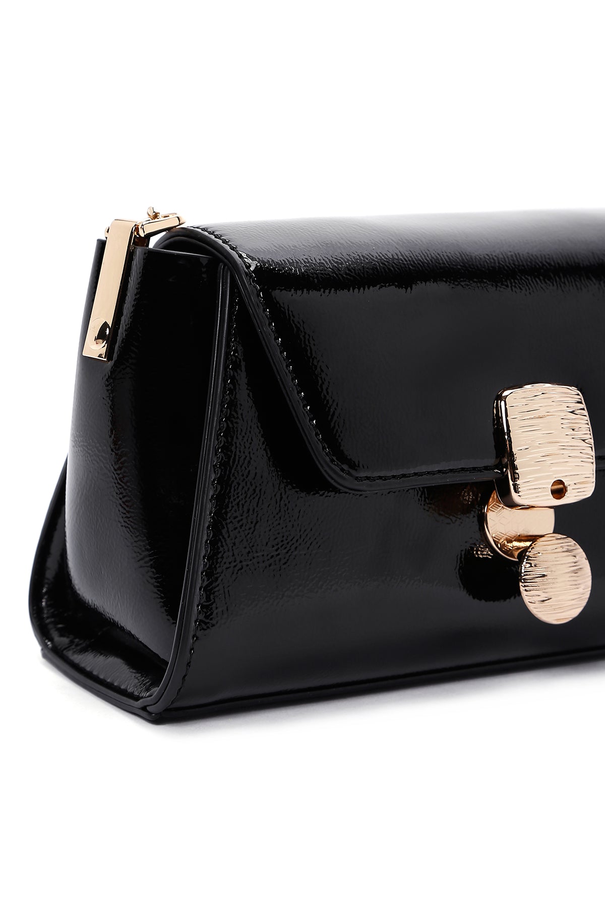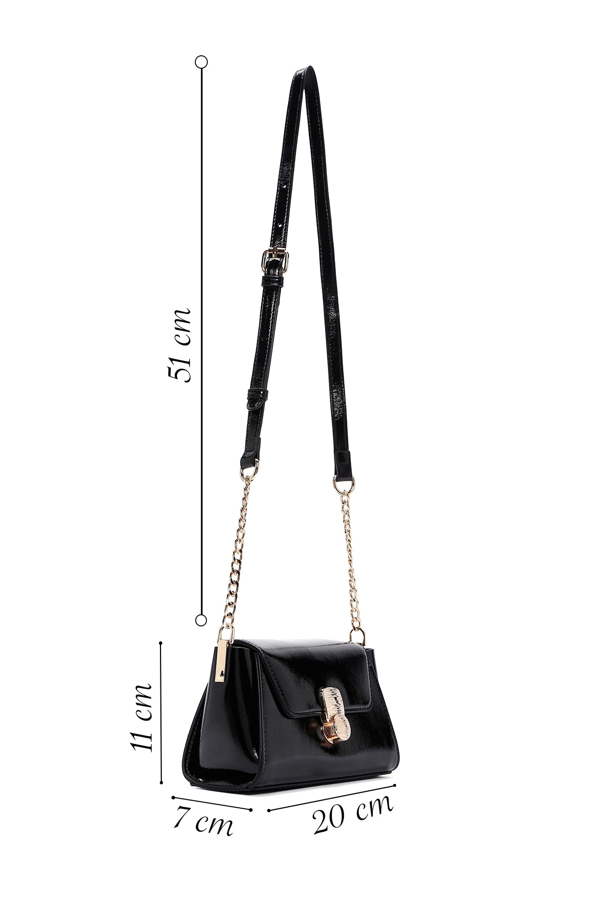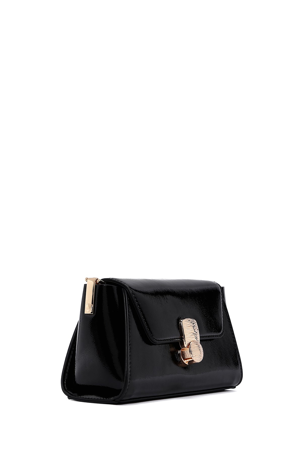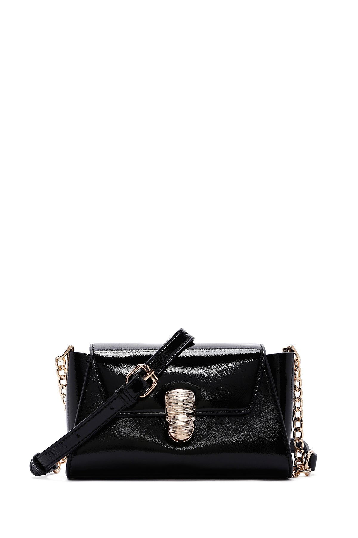 Kadın Siyah Uzun Askılı Rugan Mini Çapraz Çanta