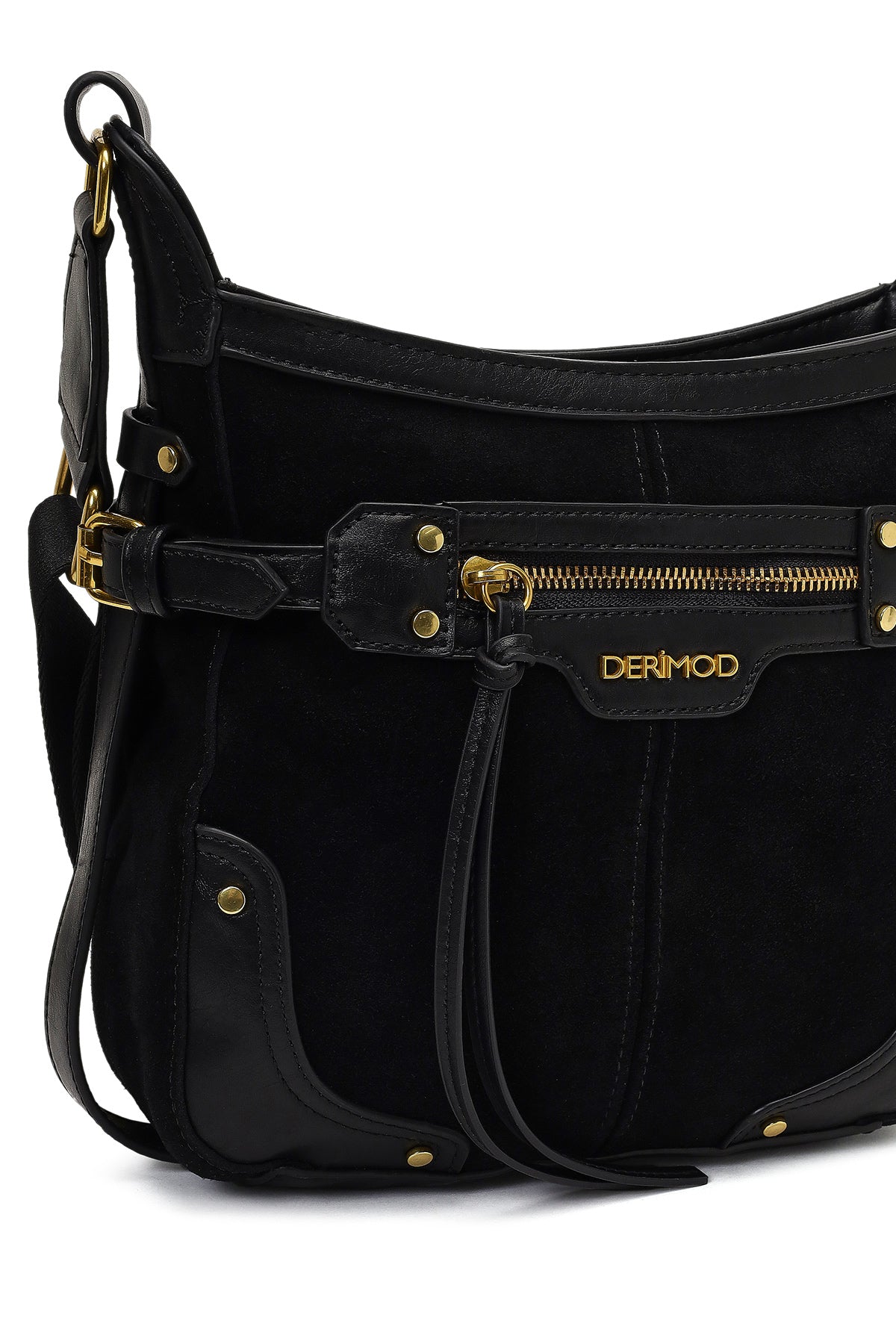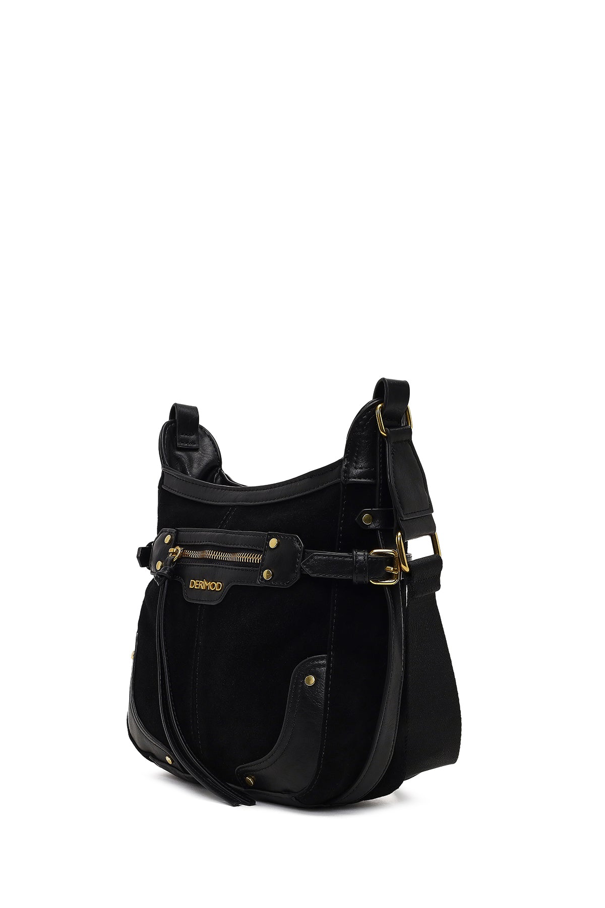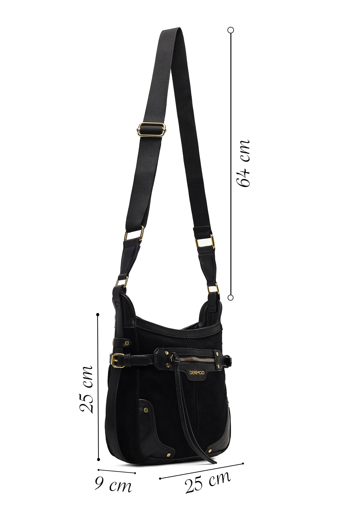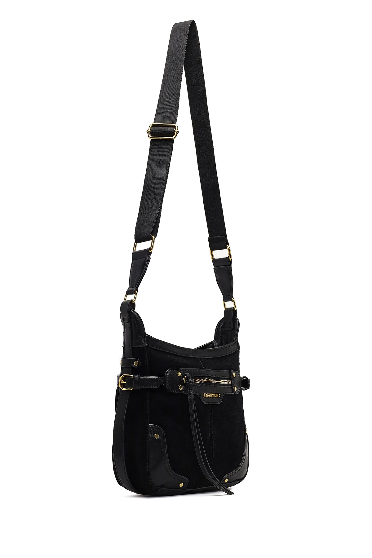 Kadın Siyah Uzun Askılı Süet Deri Çapraz Çanta